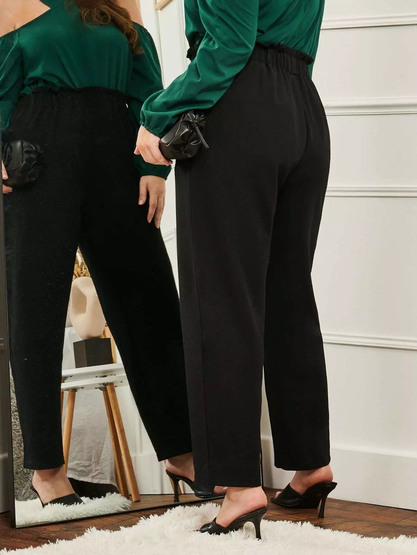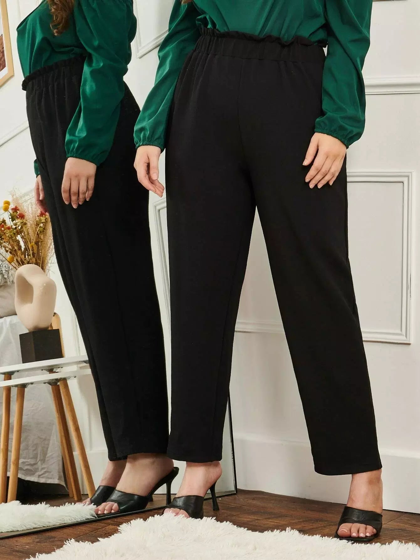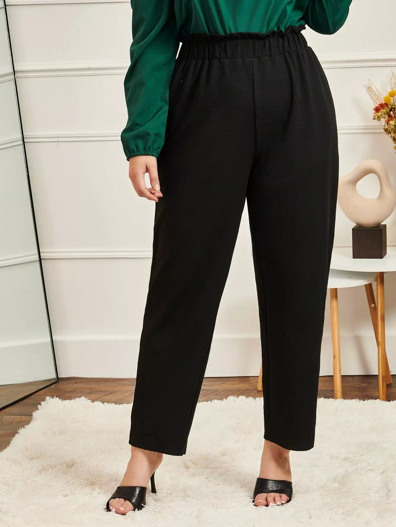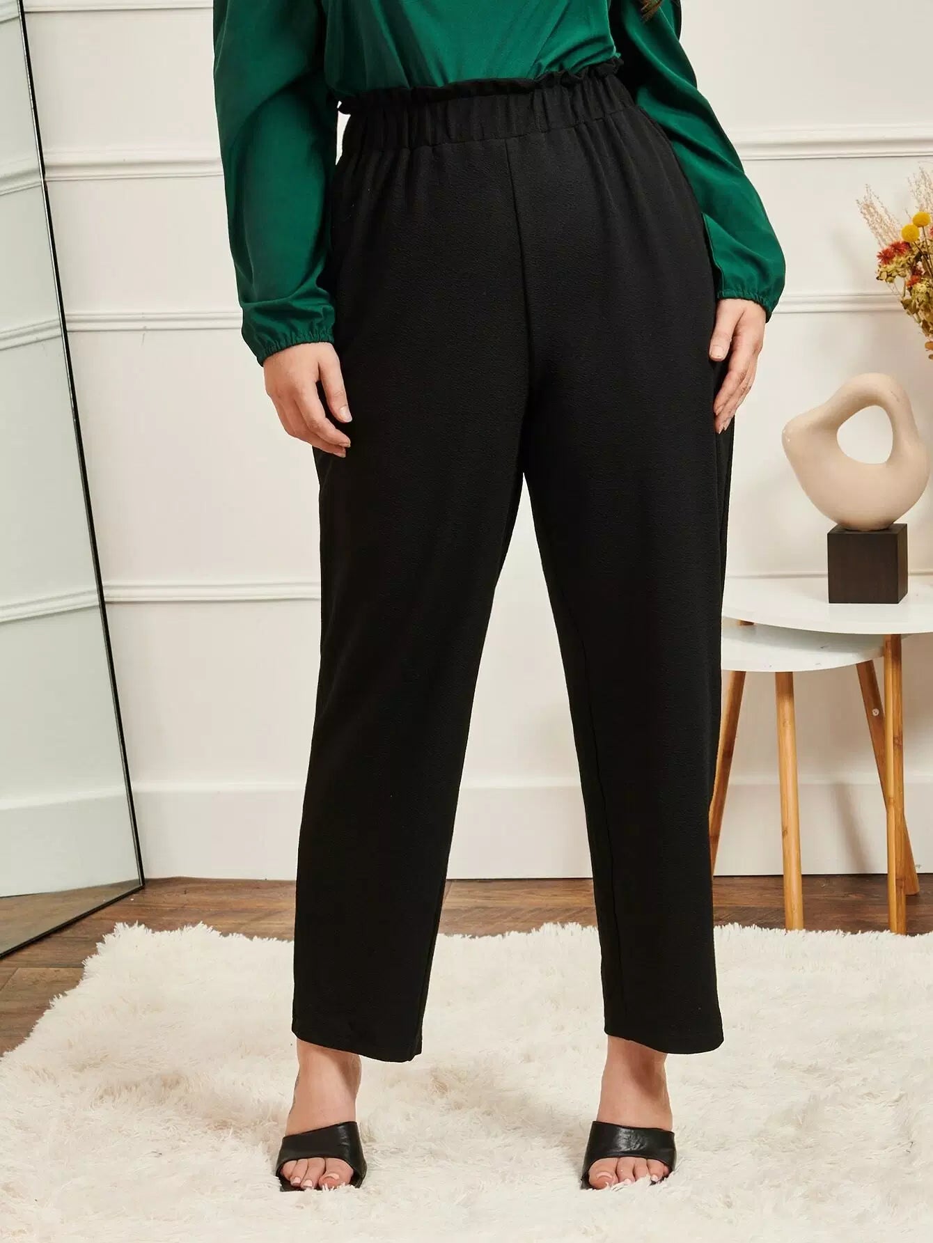 Plus Solid Paper Bag Waist Carrot Pants