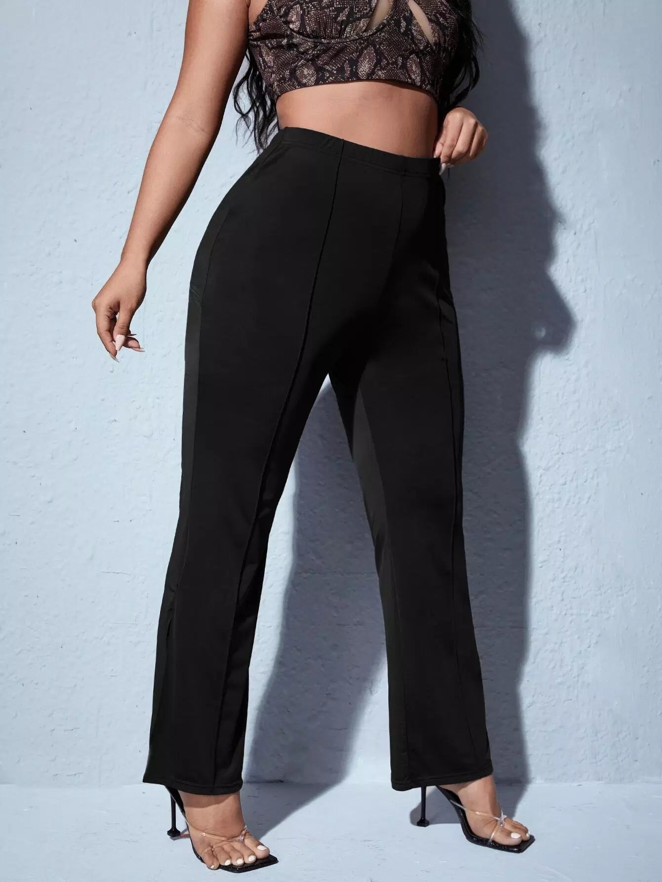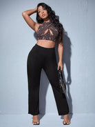 Plus Split Hem Solid Pants