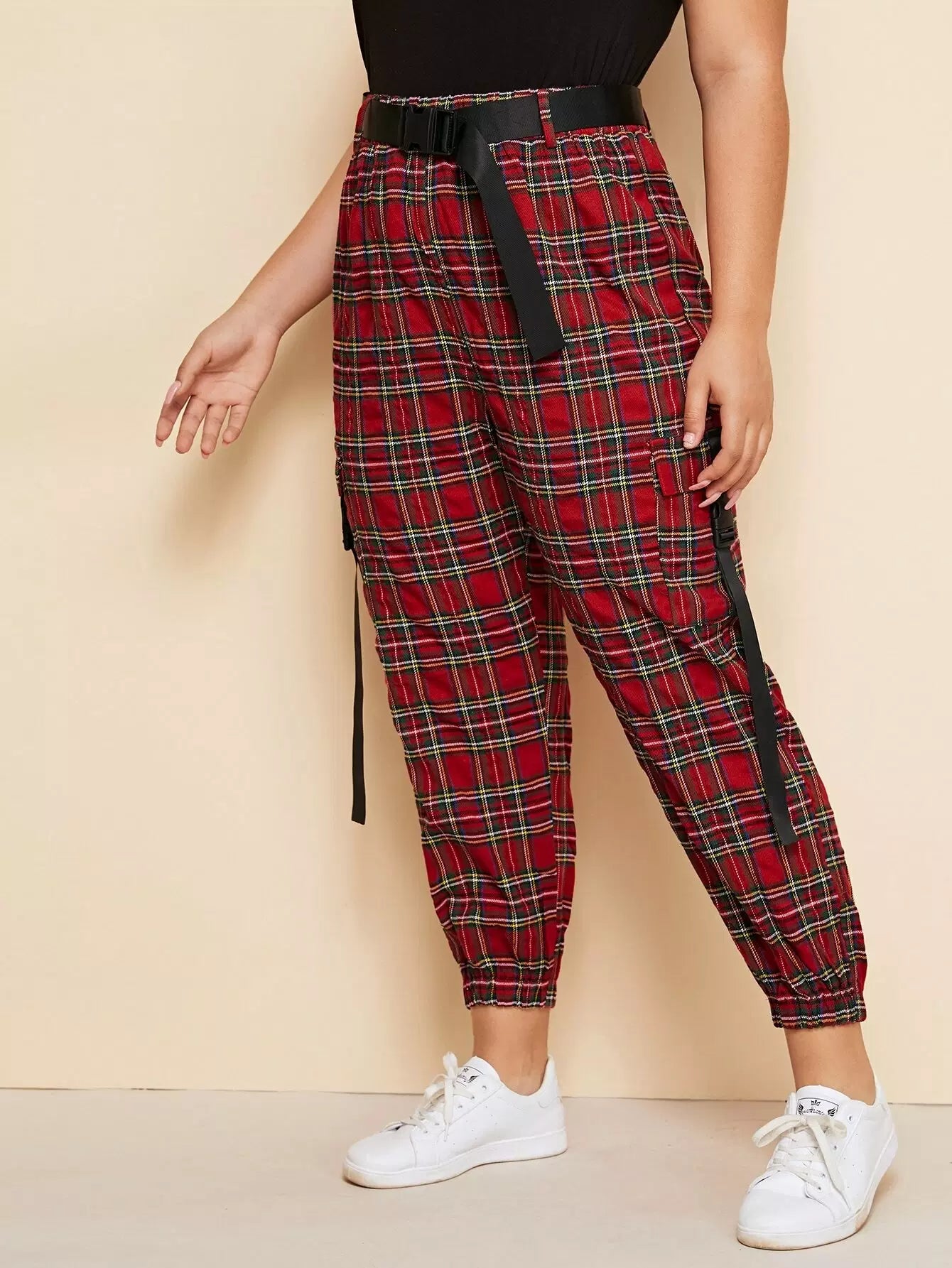 Women - Plus Tartan Belted Buckle Tape Pants