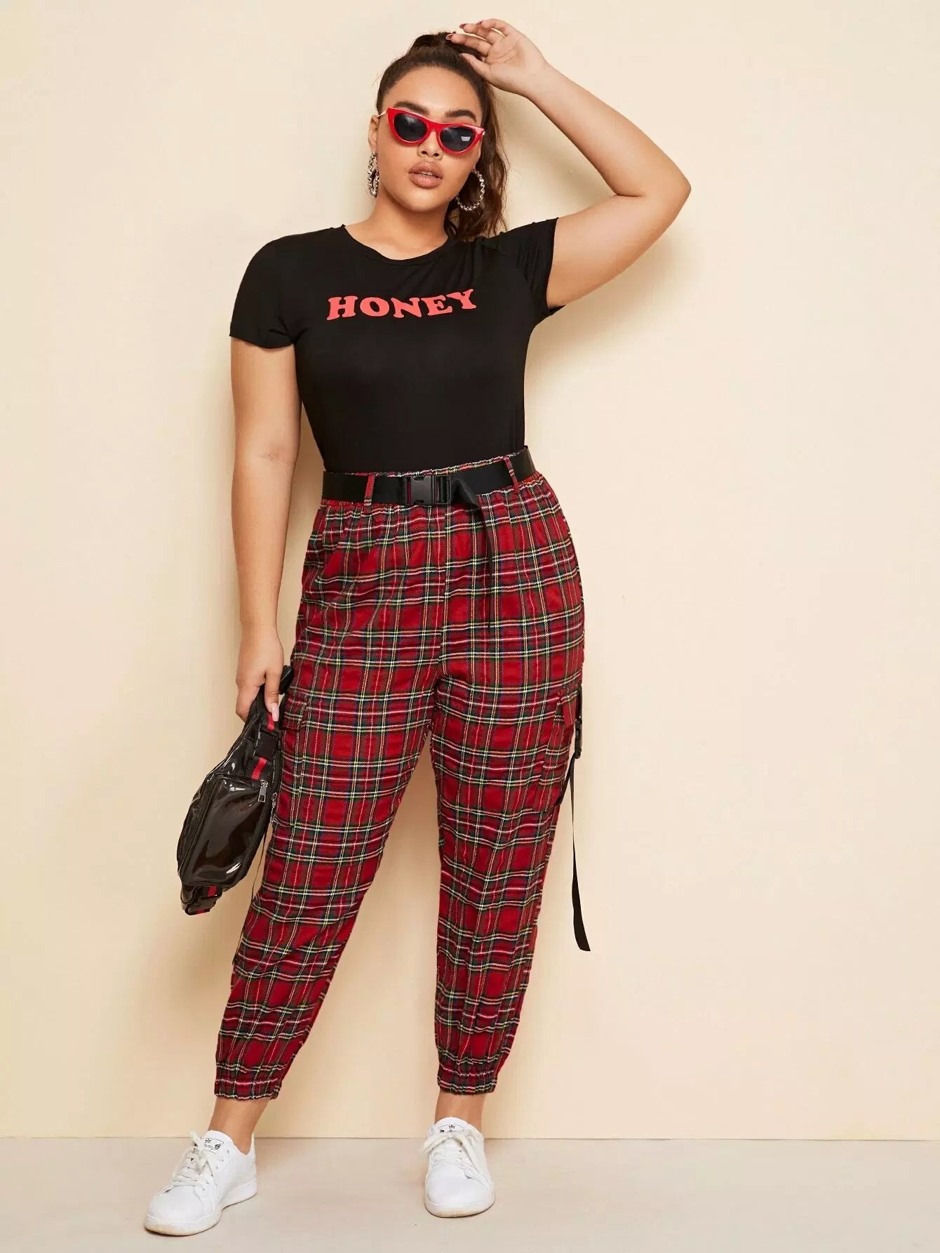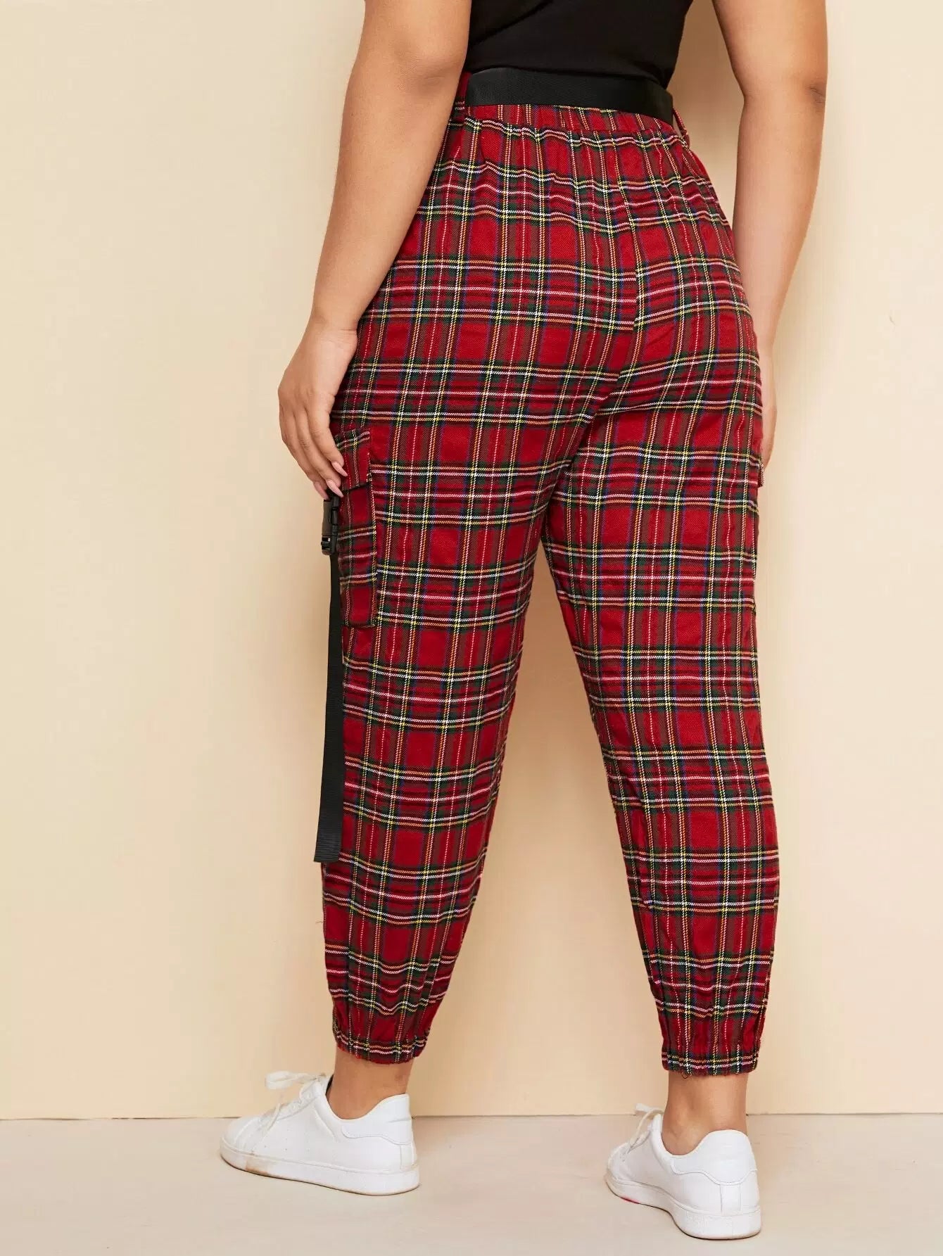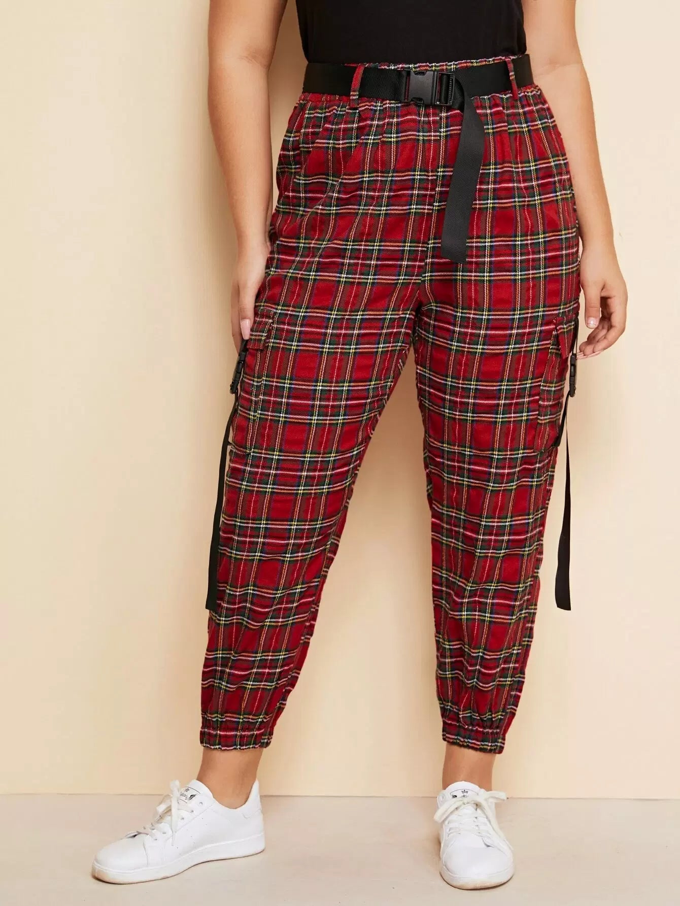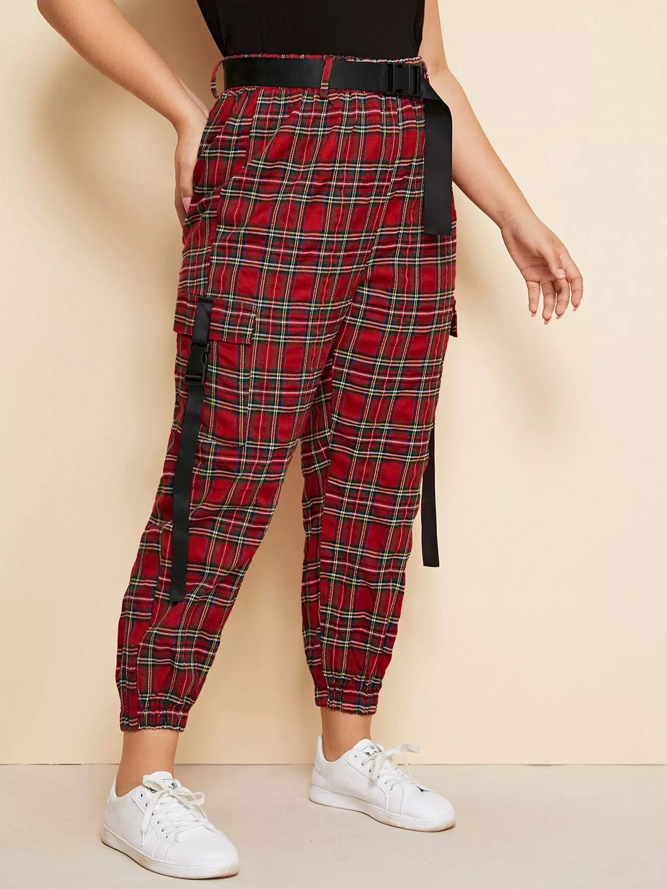 Plus Tartan Buckle Tape Pants Without Belt