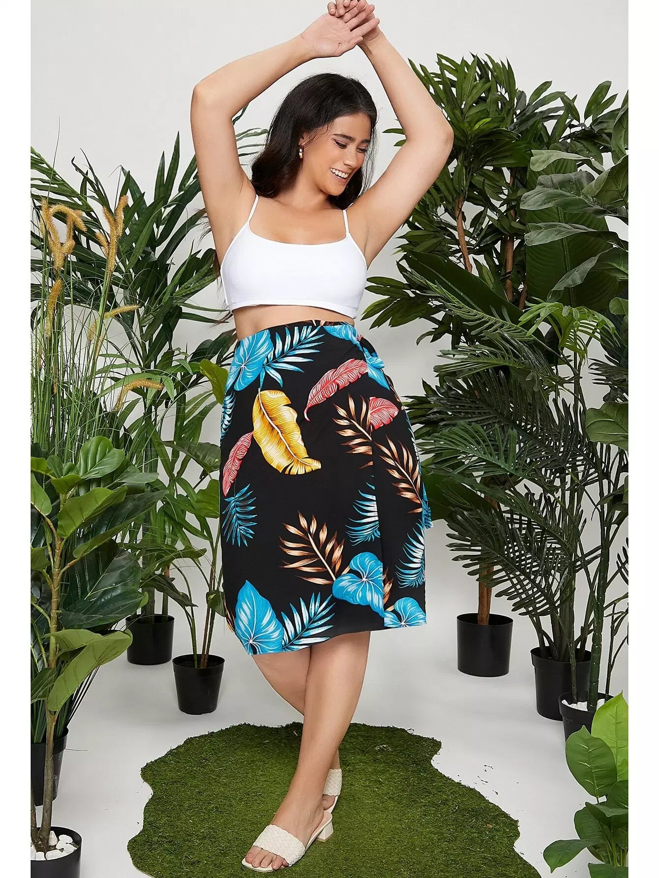 Plus Tropical Print Skirt