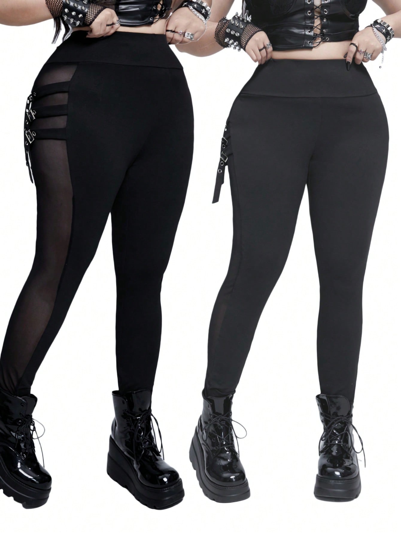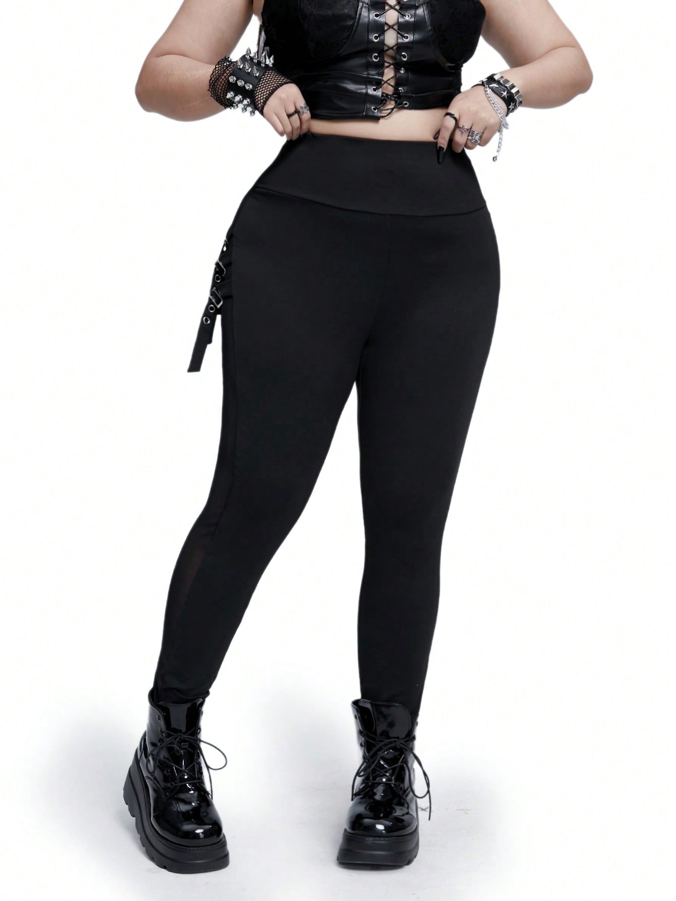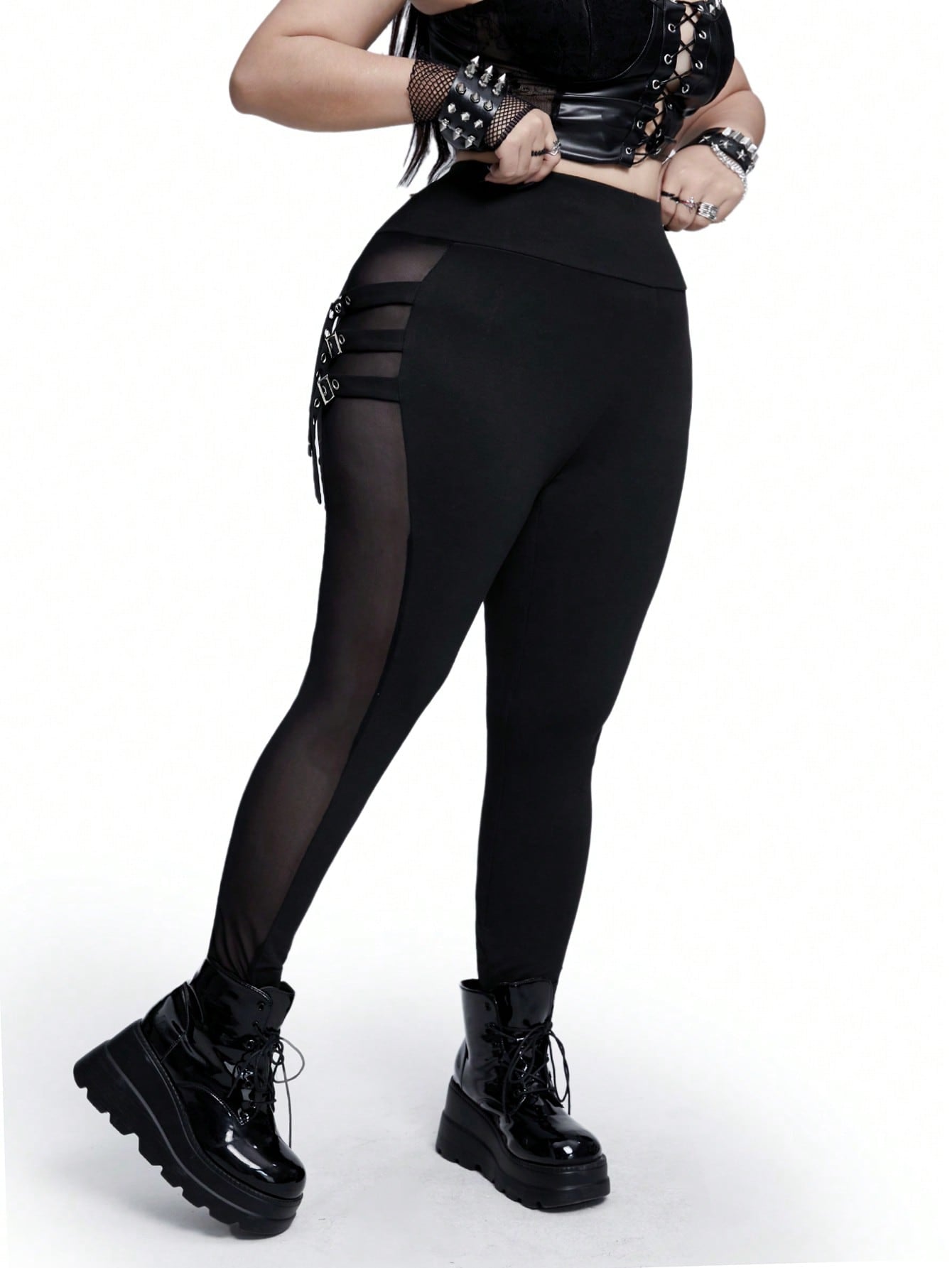 Whyspr Casual Punk Plus Size Punk & Goth Metal Ring Sheer Leggings