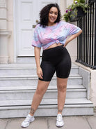 Plus Contrast Mesh Panel Rhinestone Biker Shorts
