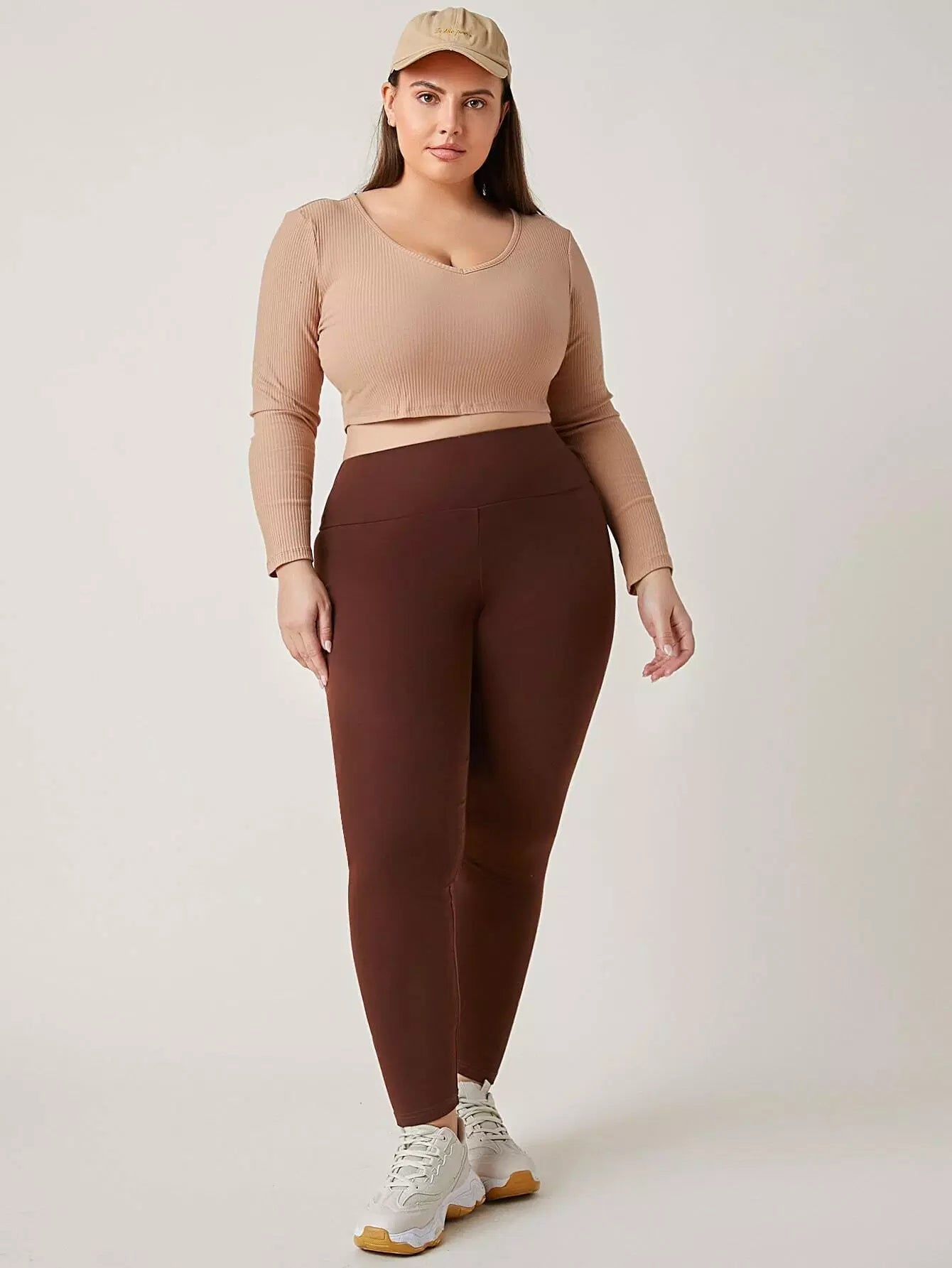 Women - Plus Cotton Wide Waistband Crop Leggings