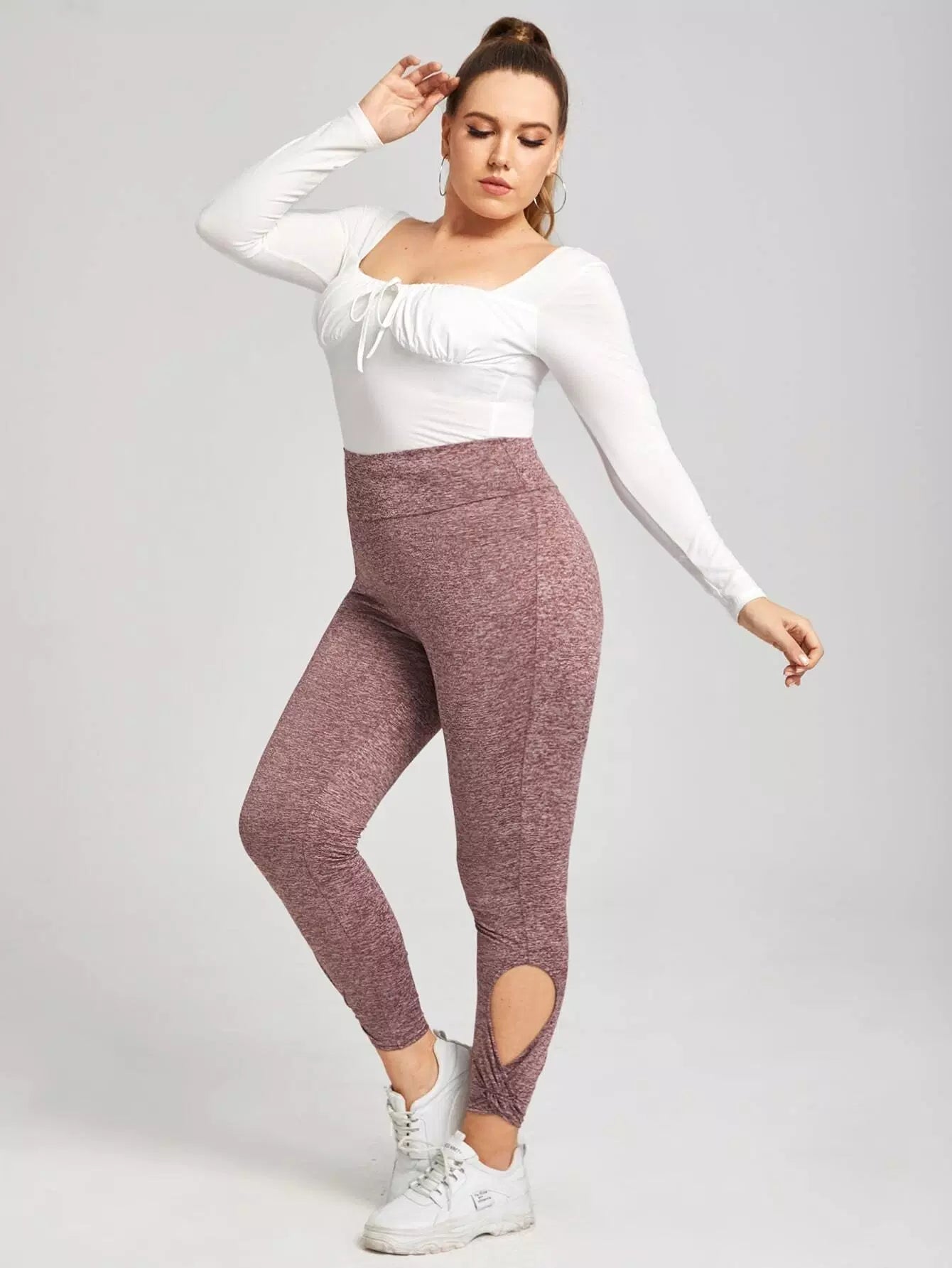 Women - Plus Cut Out Back Wide Band Waist Leggings
