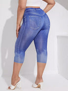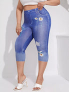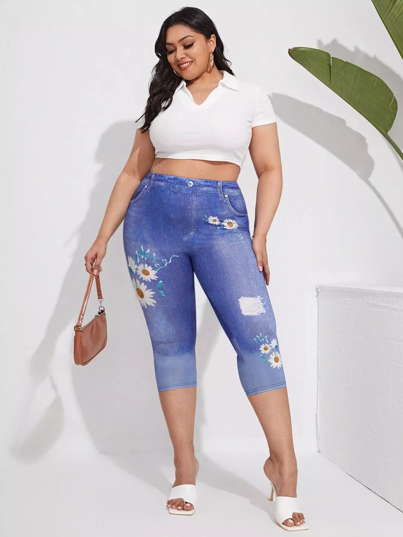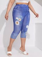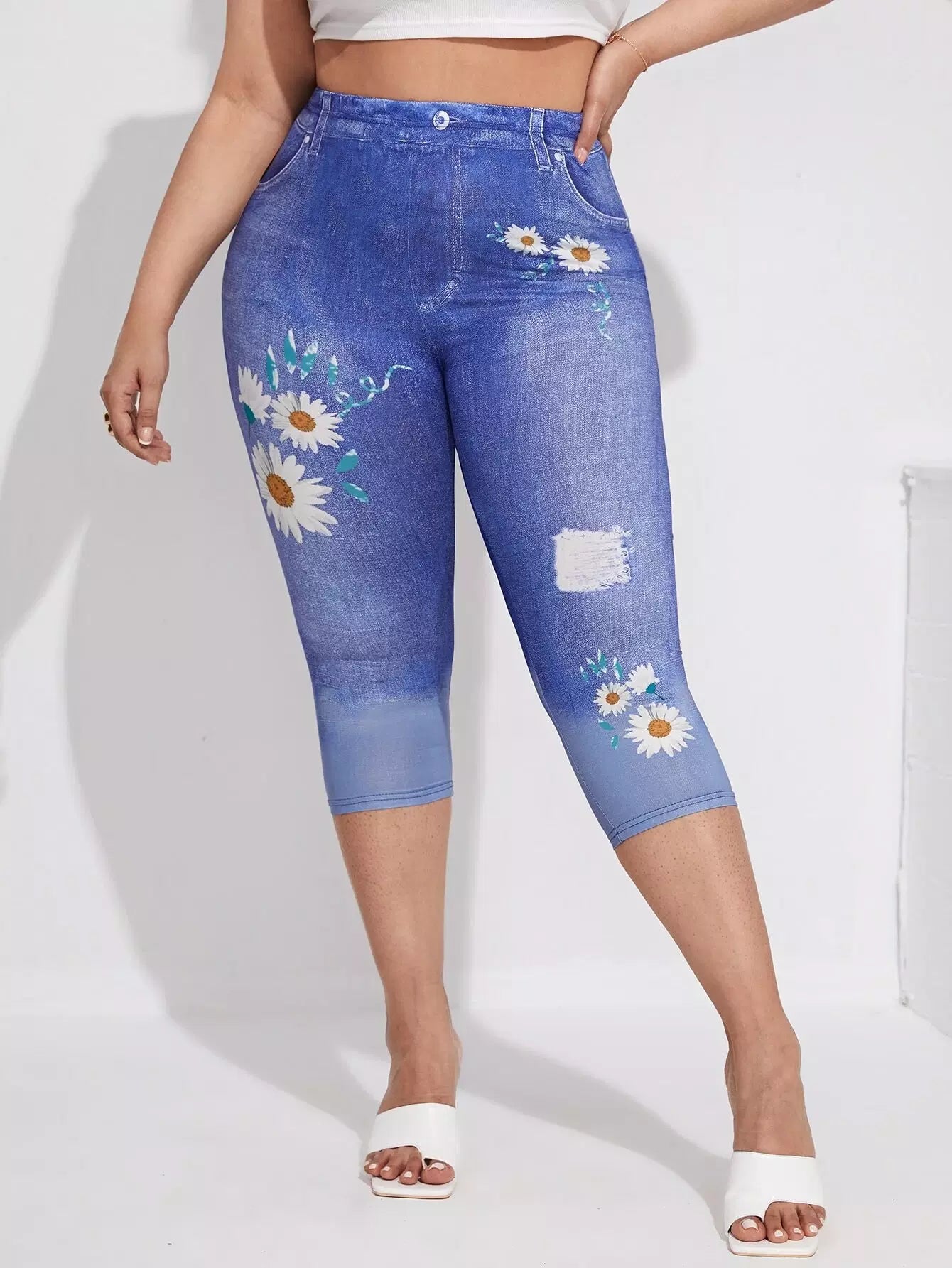 Plus Daisy Floral Imitation Denim Capris Leggings