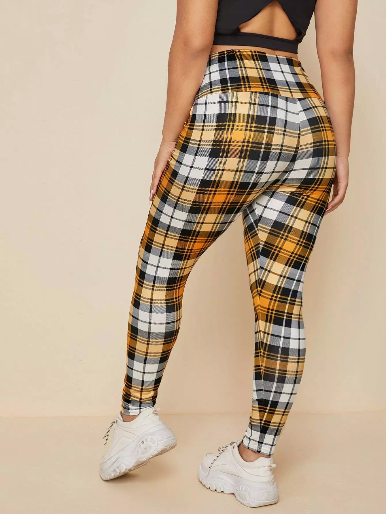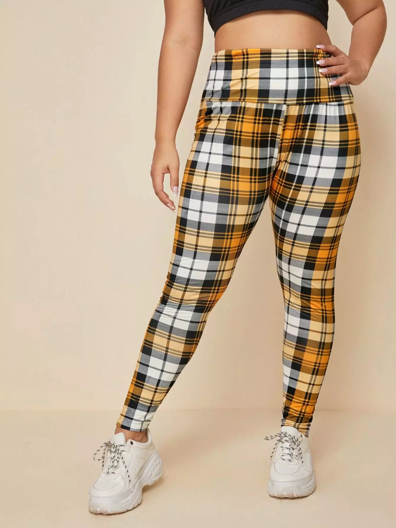 Plus Wide Band Waist Plaid Leggings