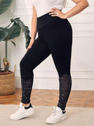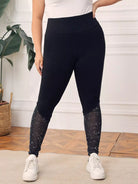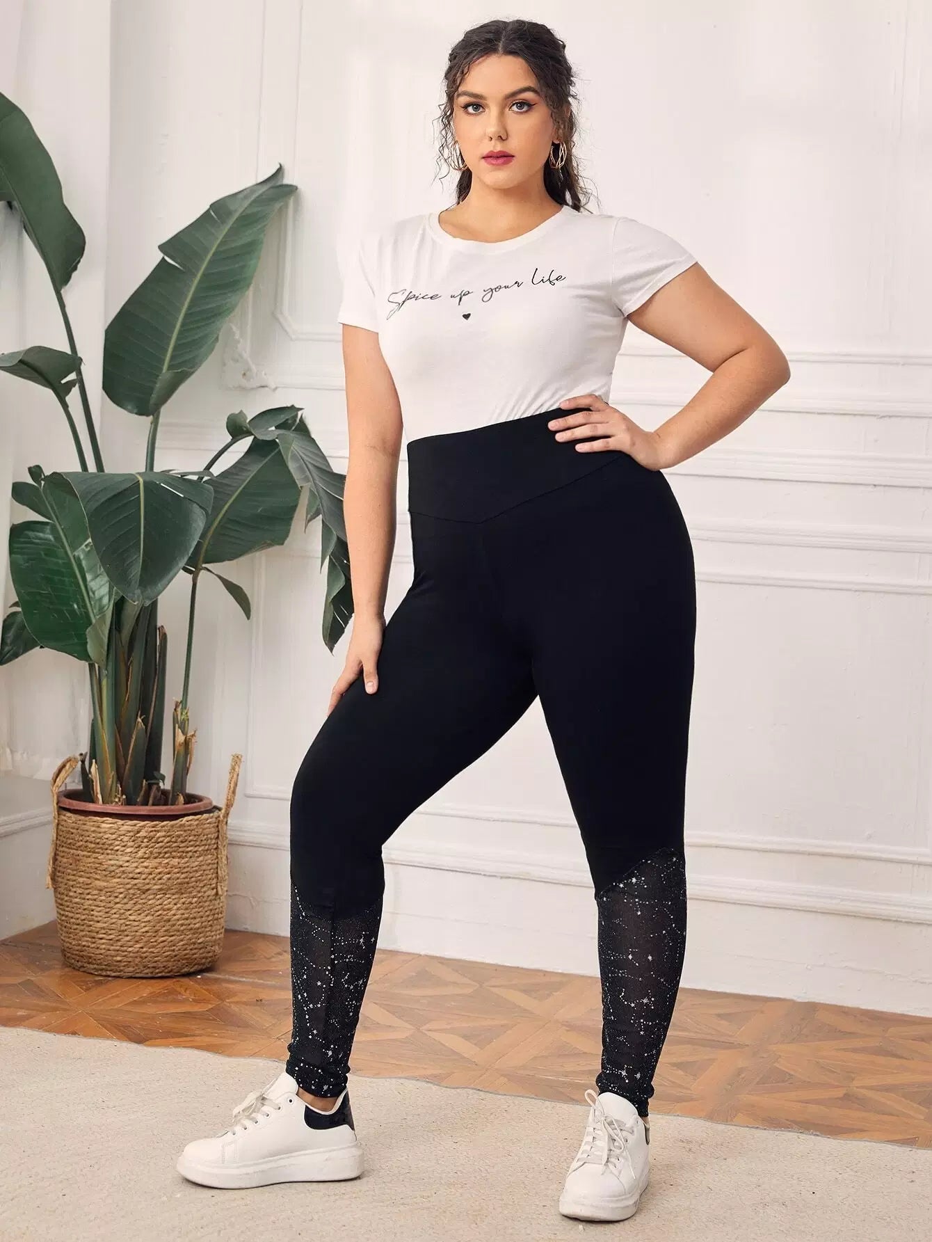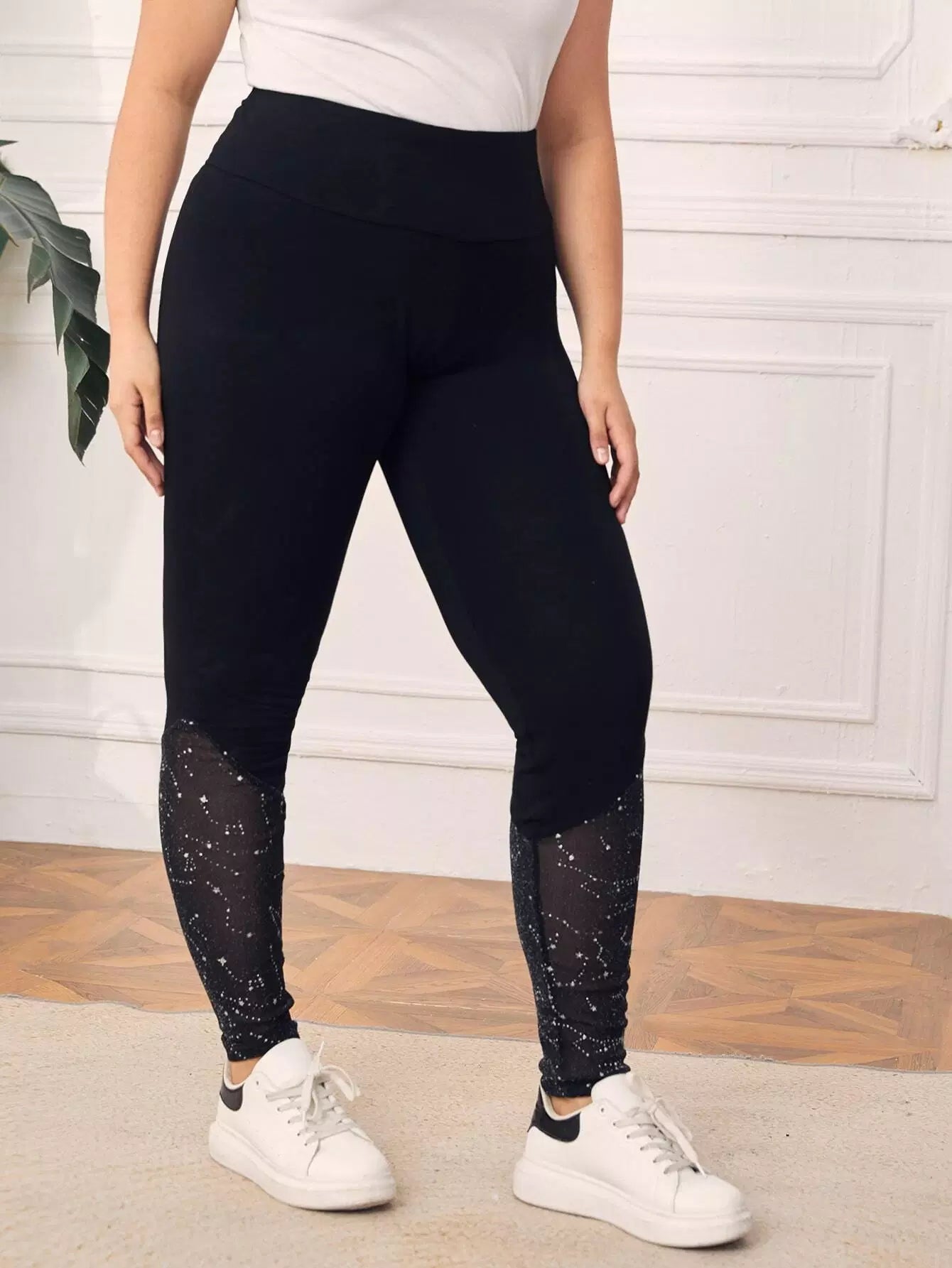 Plus Wide Waistband Glitter Sheer Mesh Insert Leggings