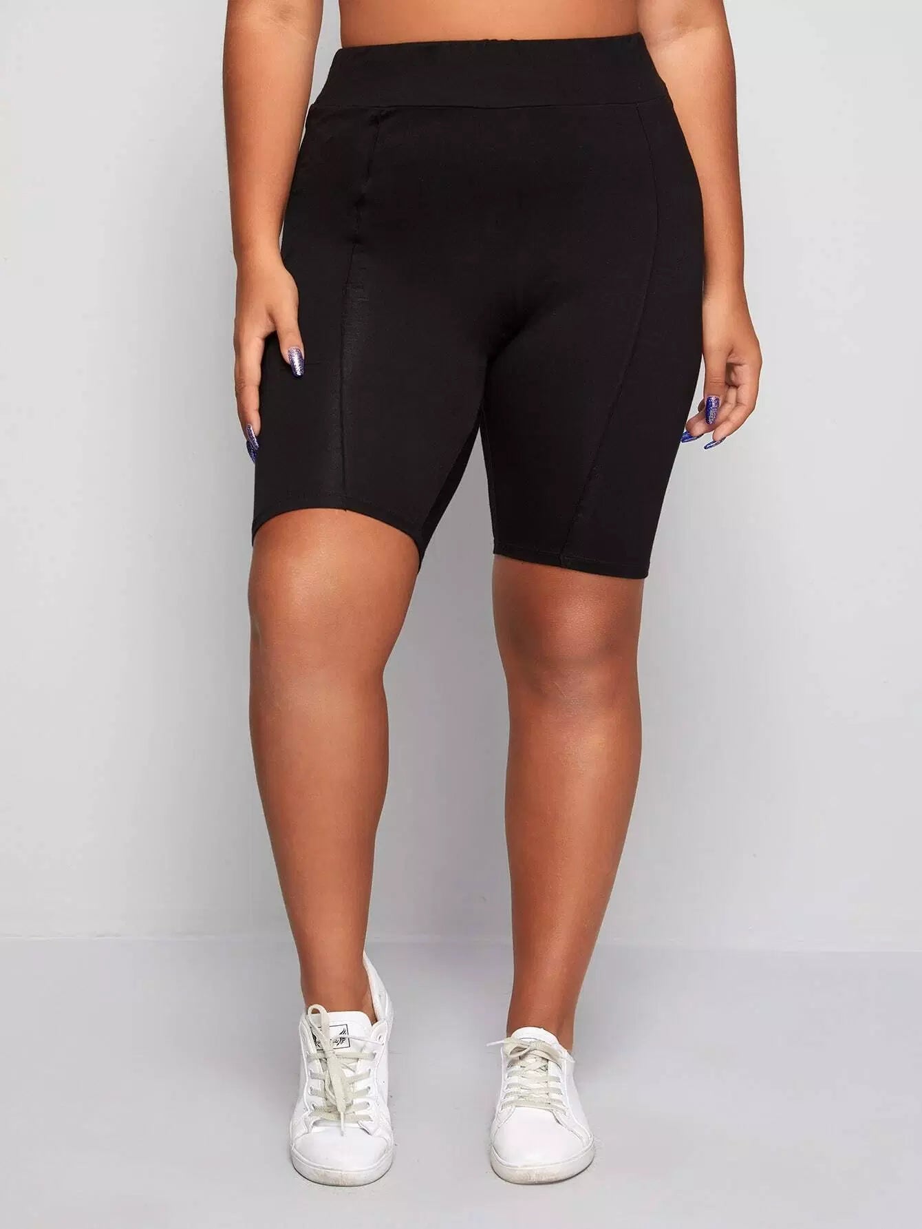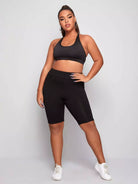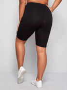 Plus Wide Waistband Solid Biker Shorts