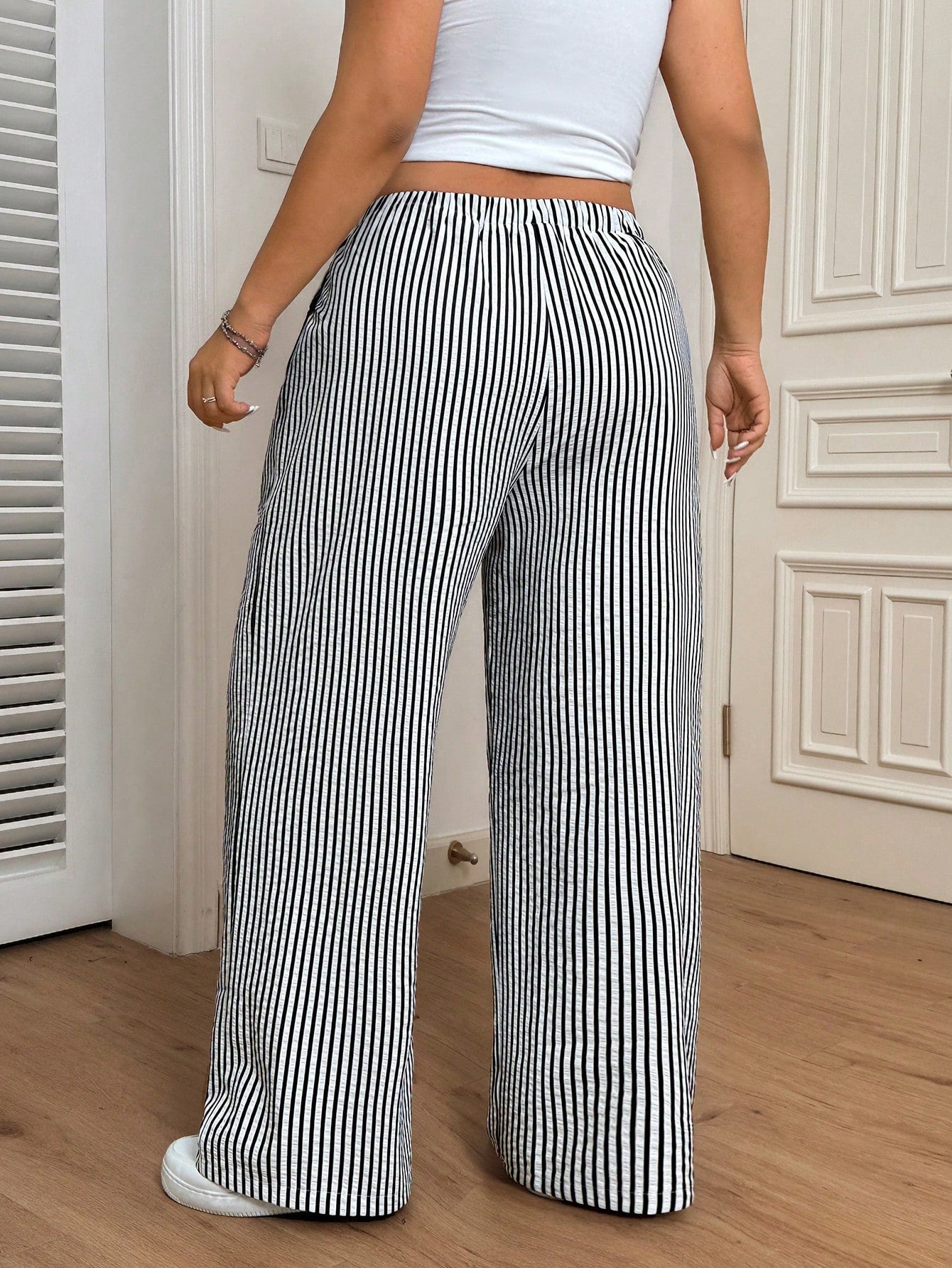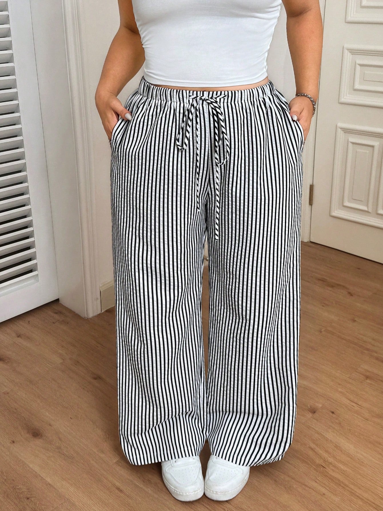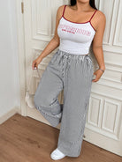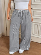 CovetEZ Women Plus Size Stripe Elastic Waist Drawstring Pants