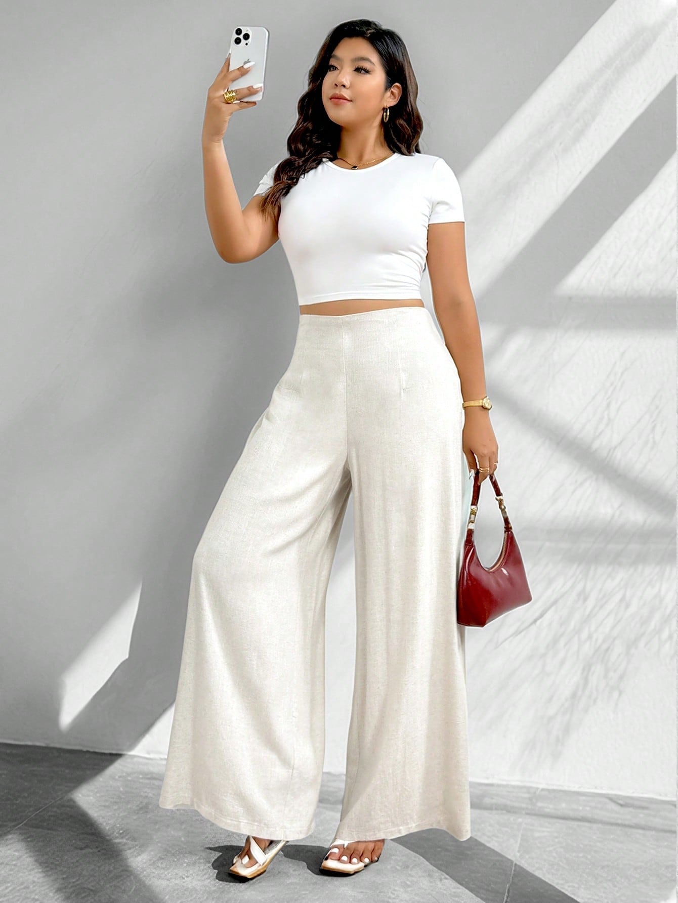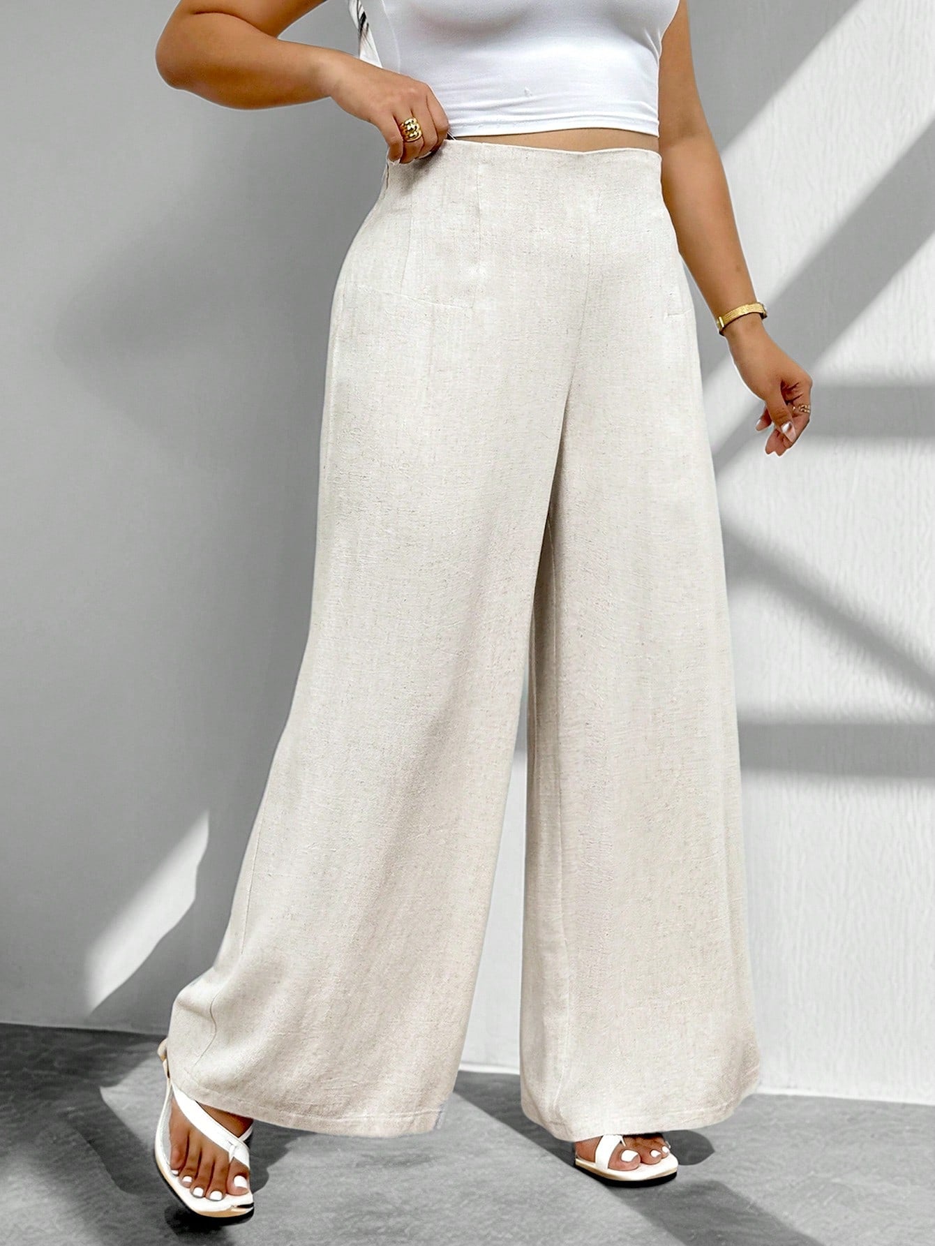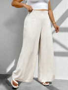 Firerie Plus Size Women Casual Comfortable Linen Straight Leg High Waist Pants, Apricot French Romantic