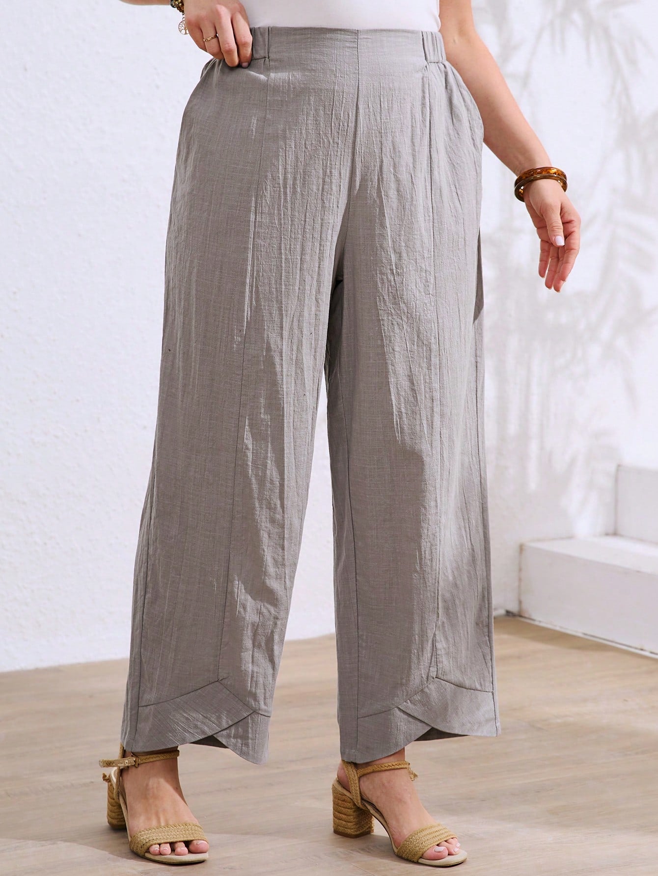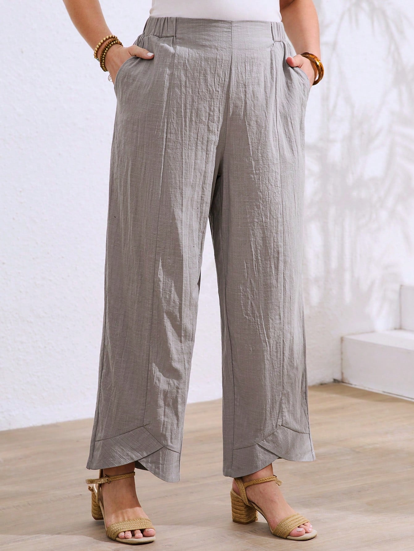 LUNE Plus Size Women Pants With Textured Fabric, Linen-Like Feel, Comfortable And Skin-Friendly, Asymmetrical