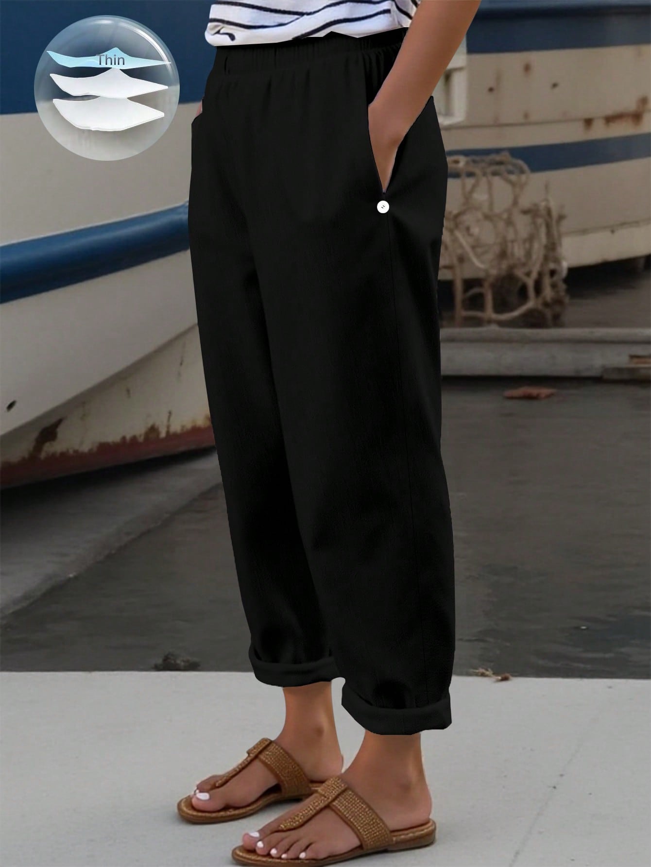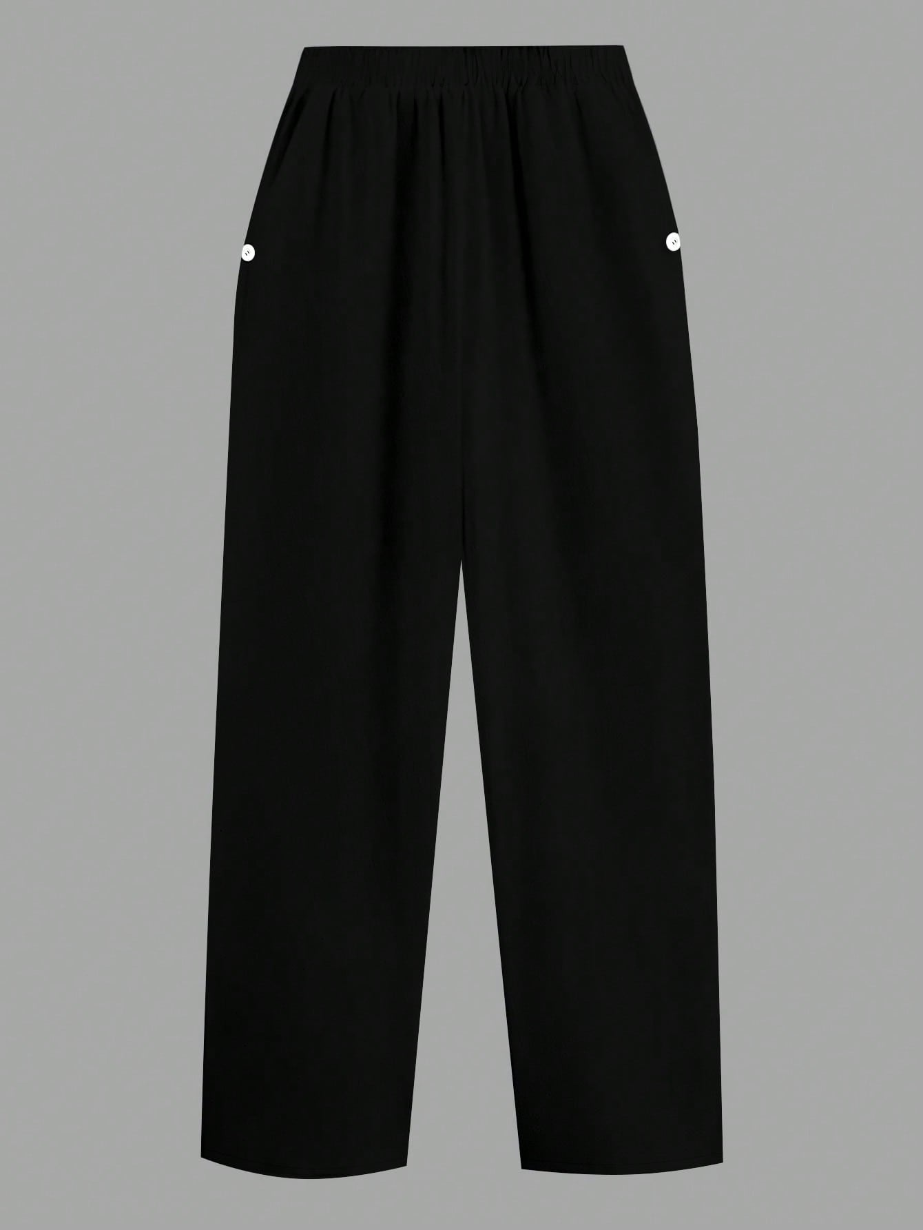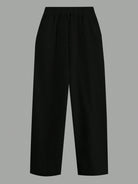 PETITE Plus Size Women's Elegant French Style Shirred Regular Fit White Pants With Pockets