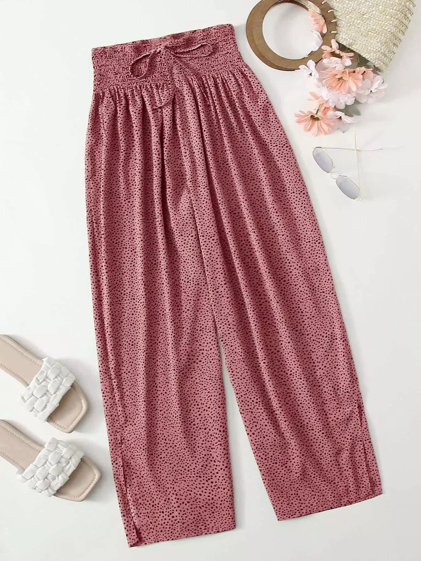 Plus All Over Print Knot Front Shirred Pants