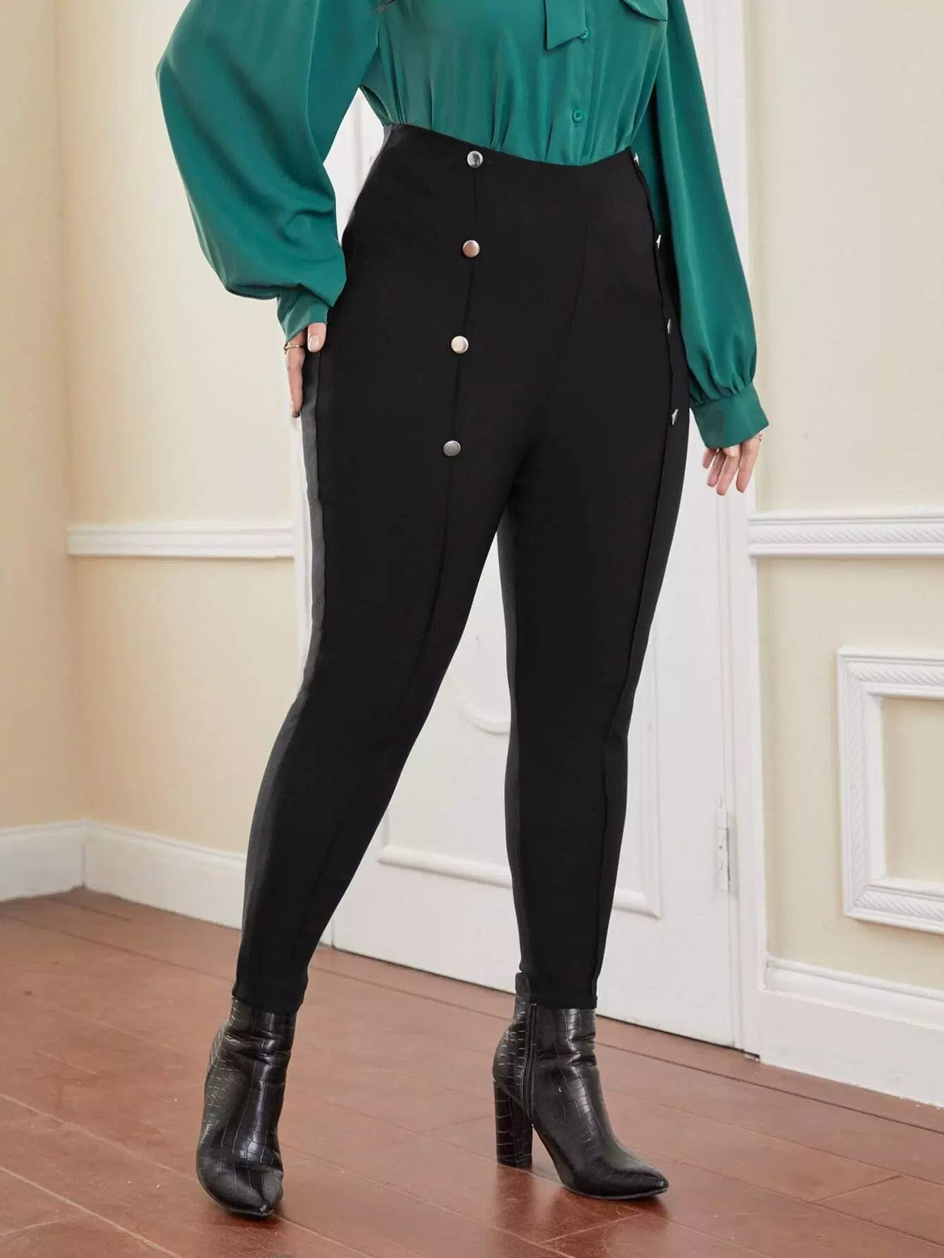 Plus Double Button Skinny Pants