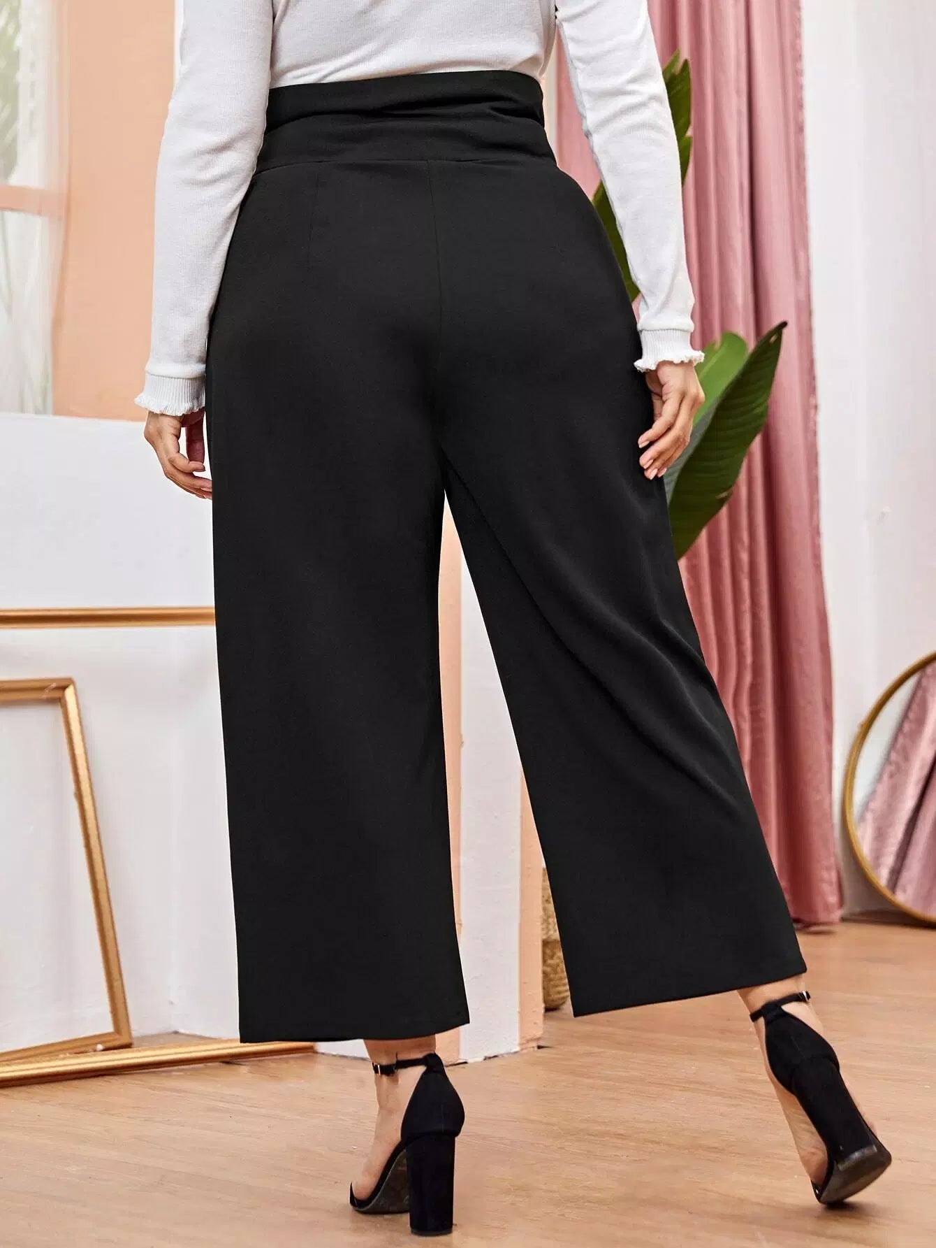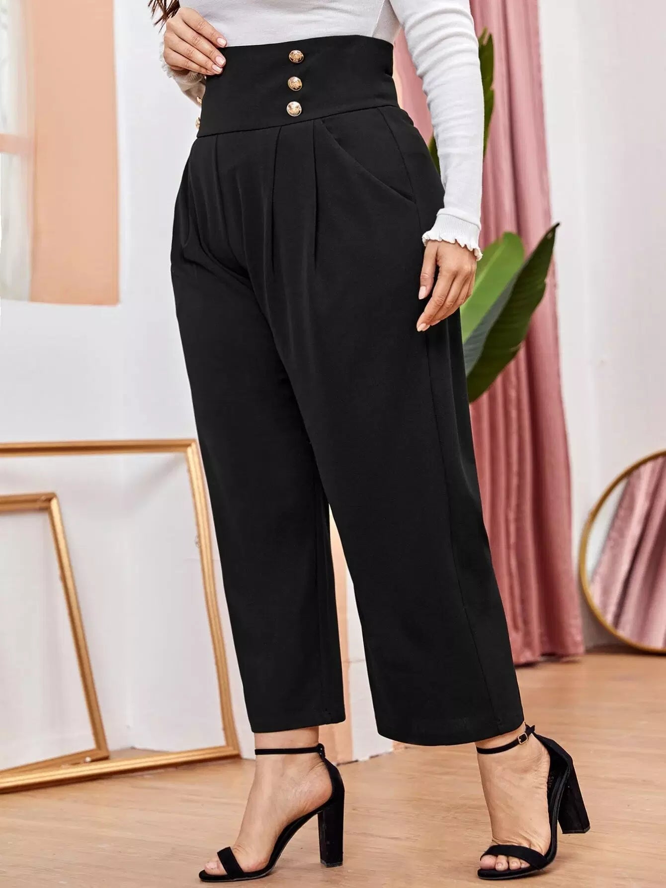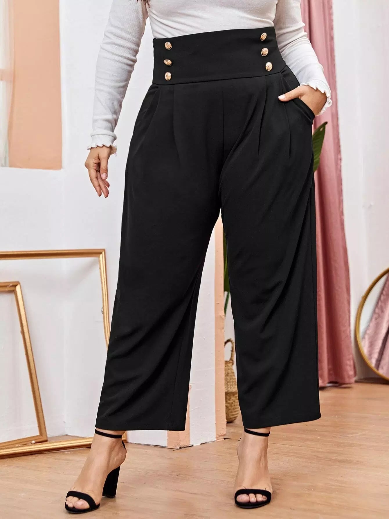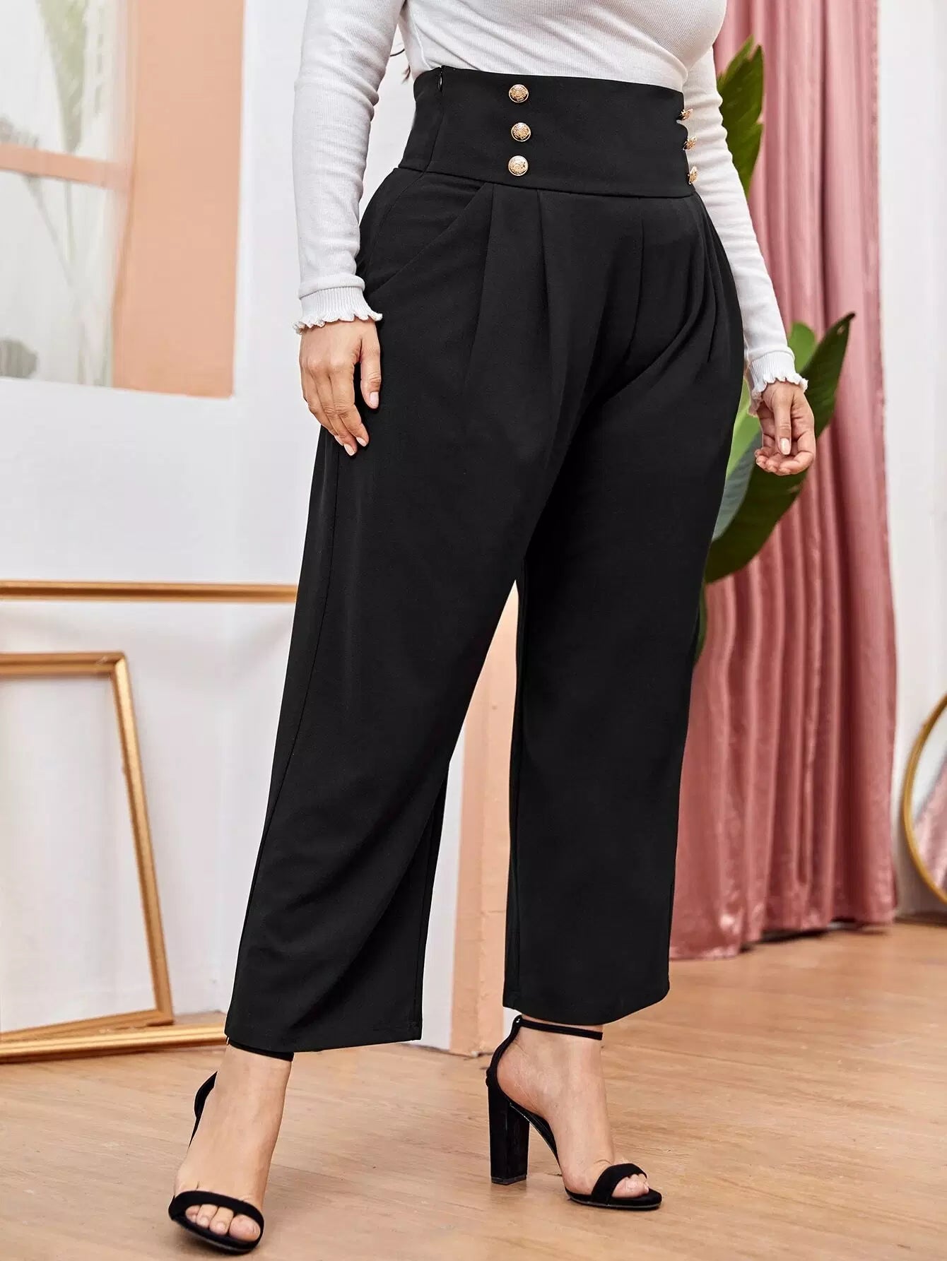 Plus Double Button Wide Pants