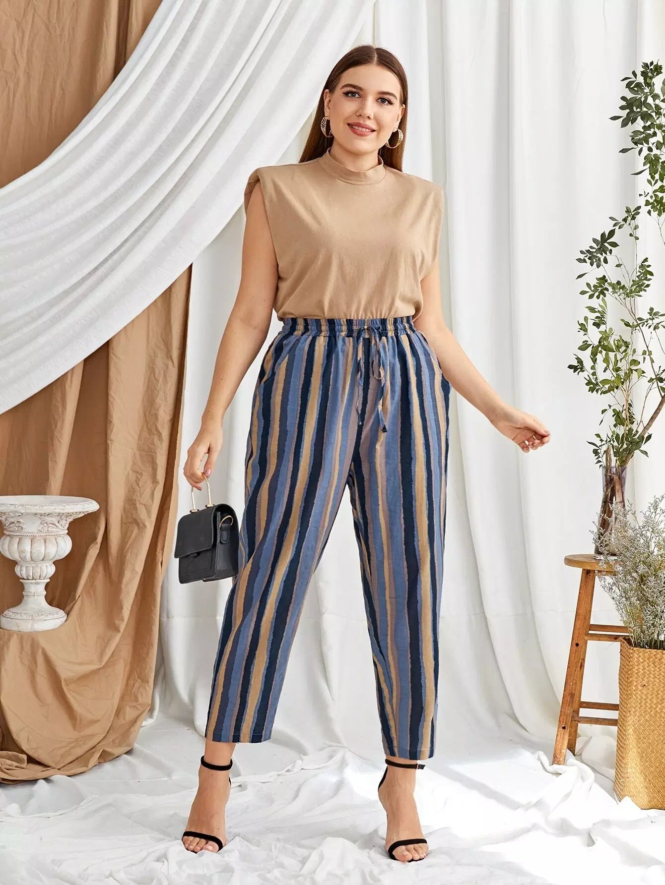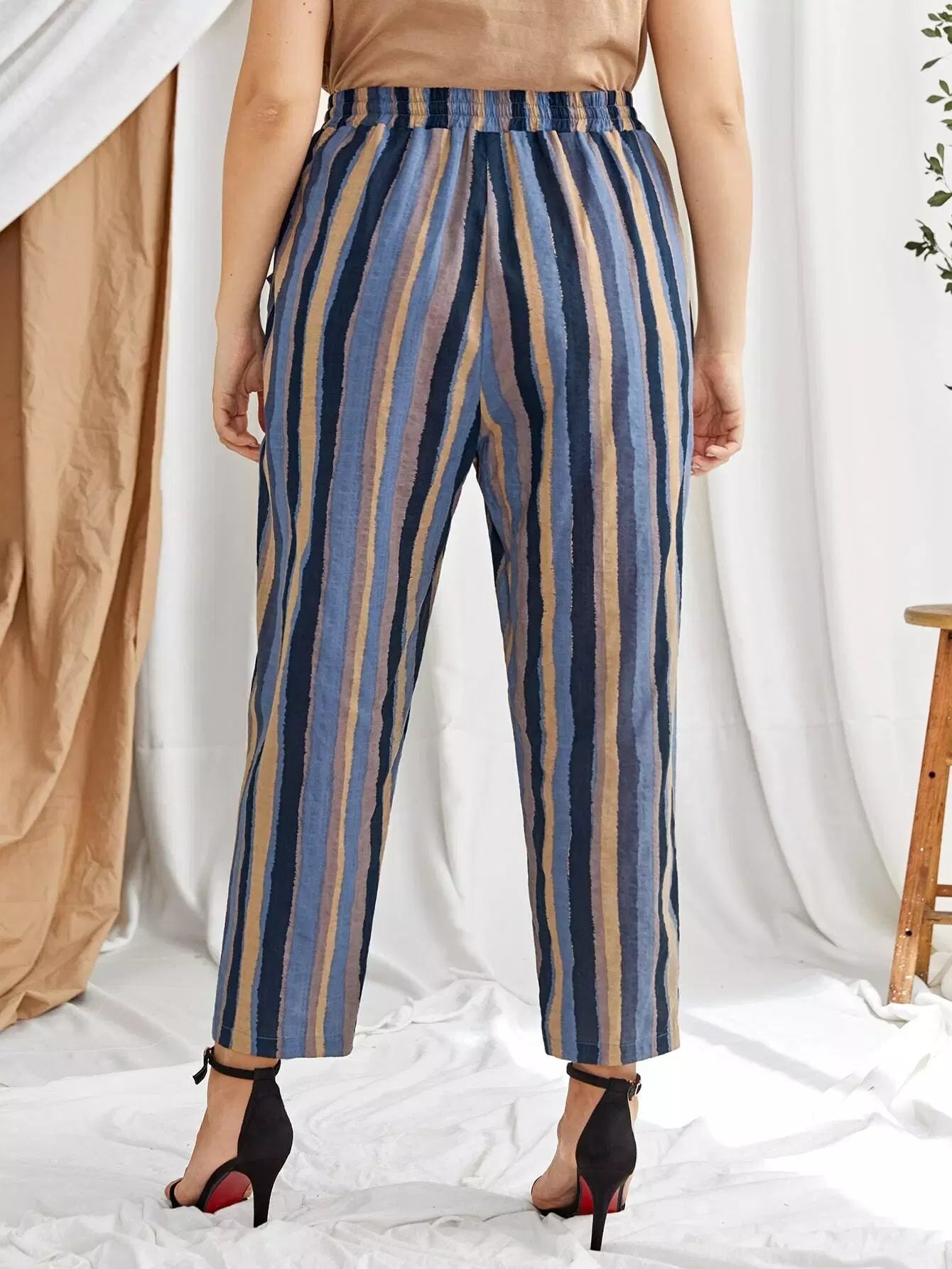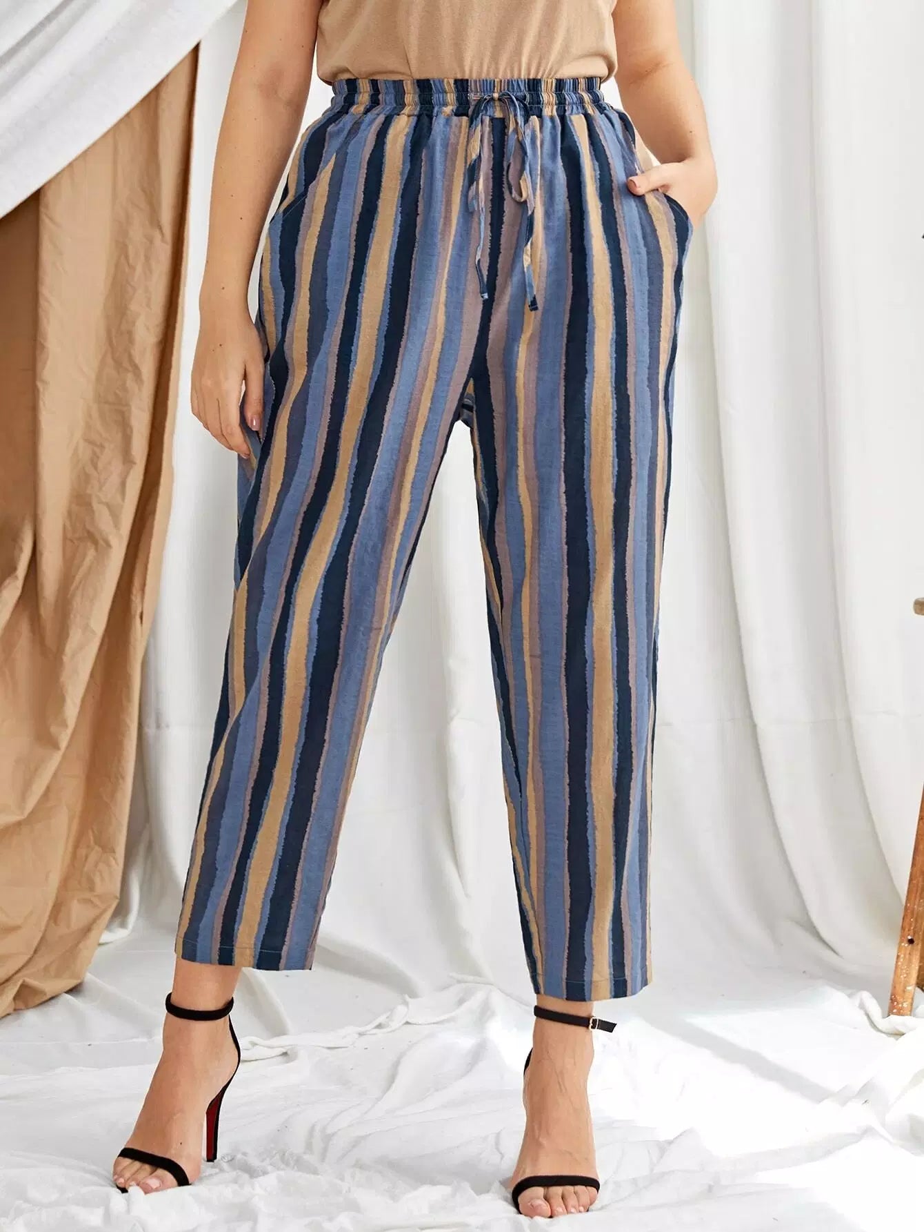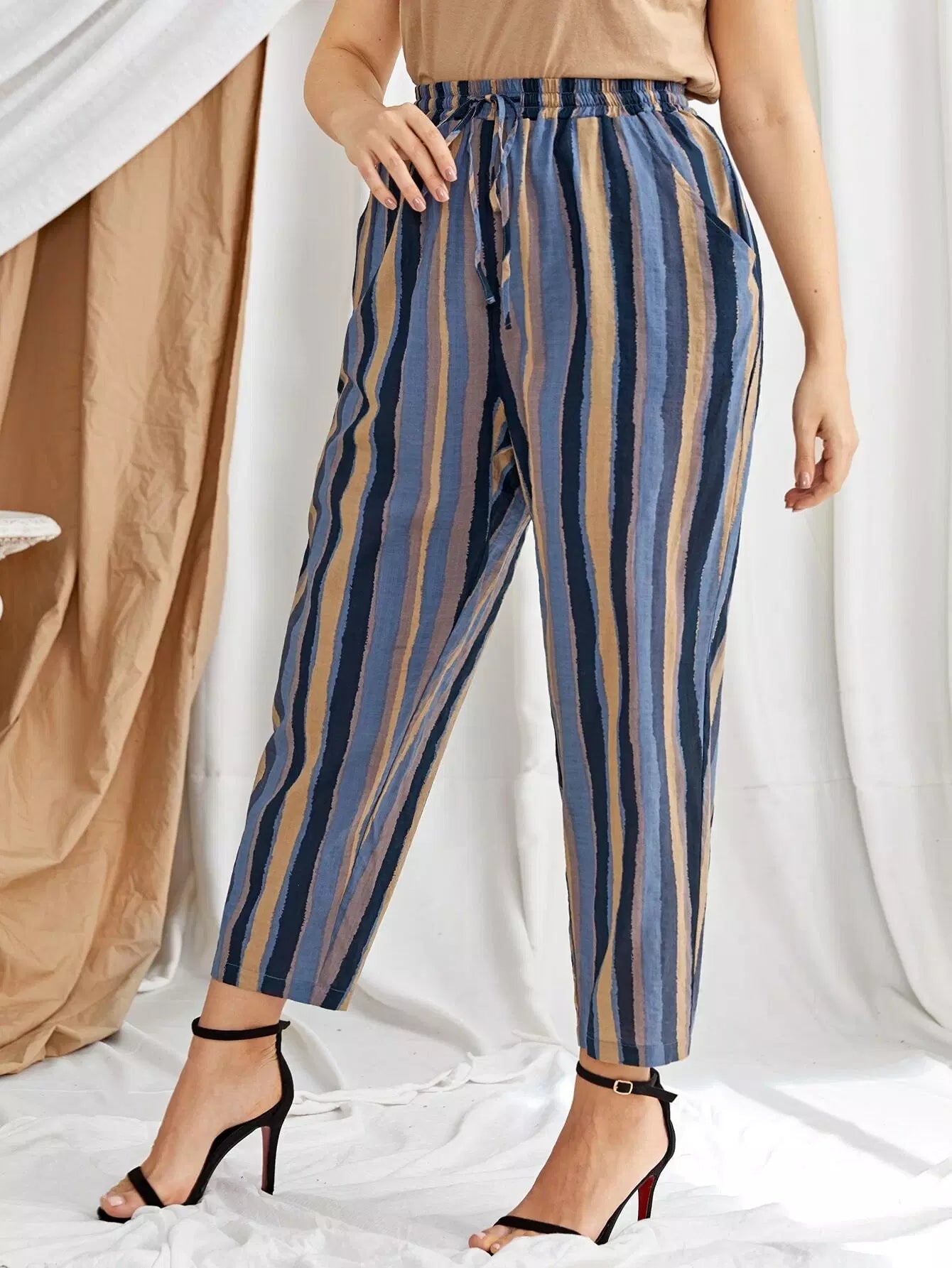 Plus Drawstring Waist Striped Pants