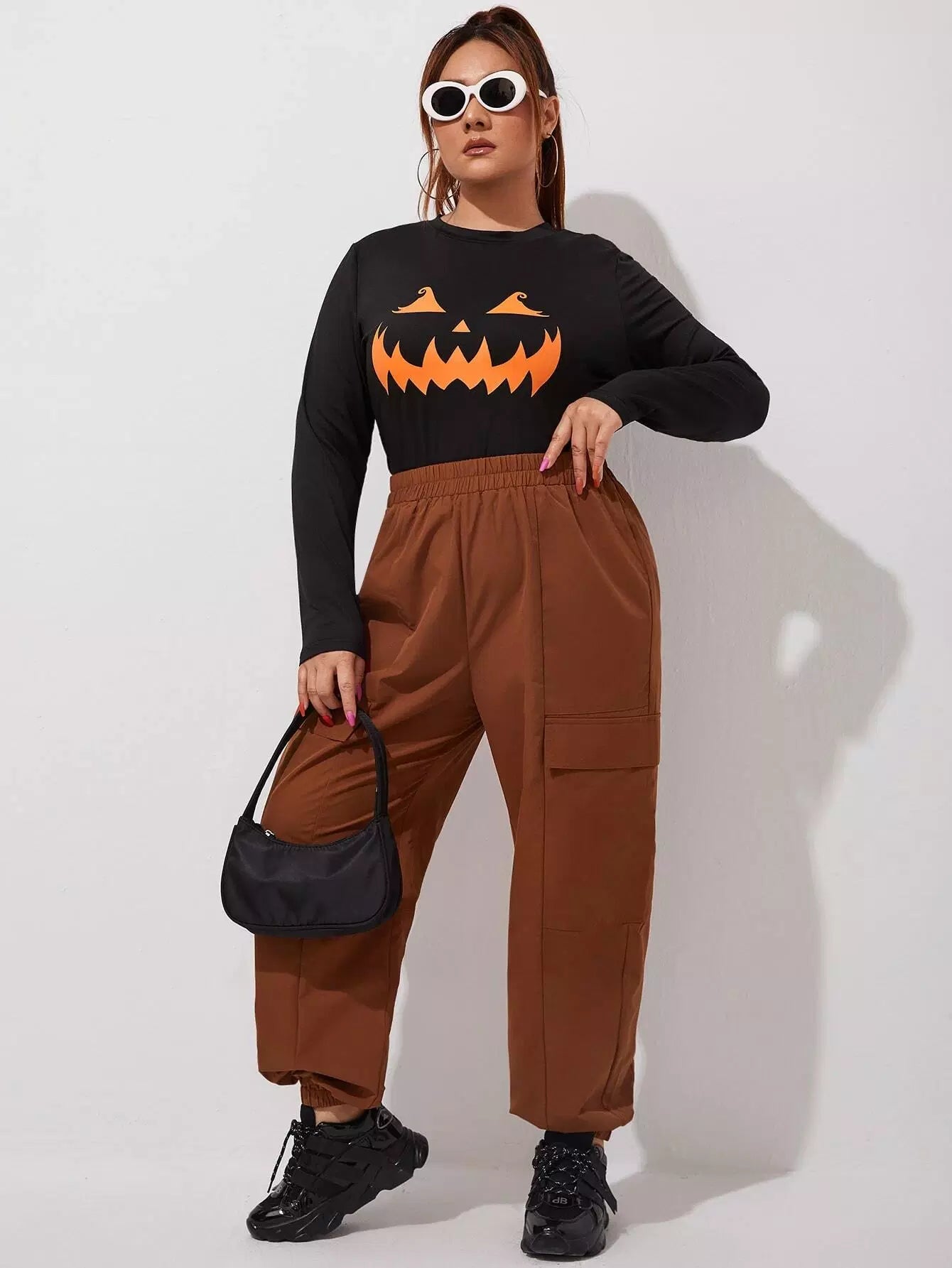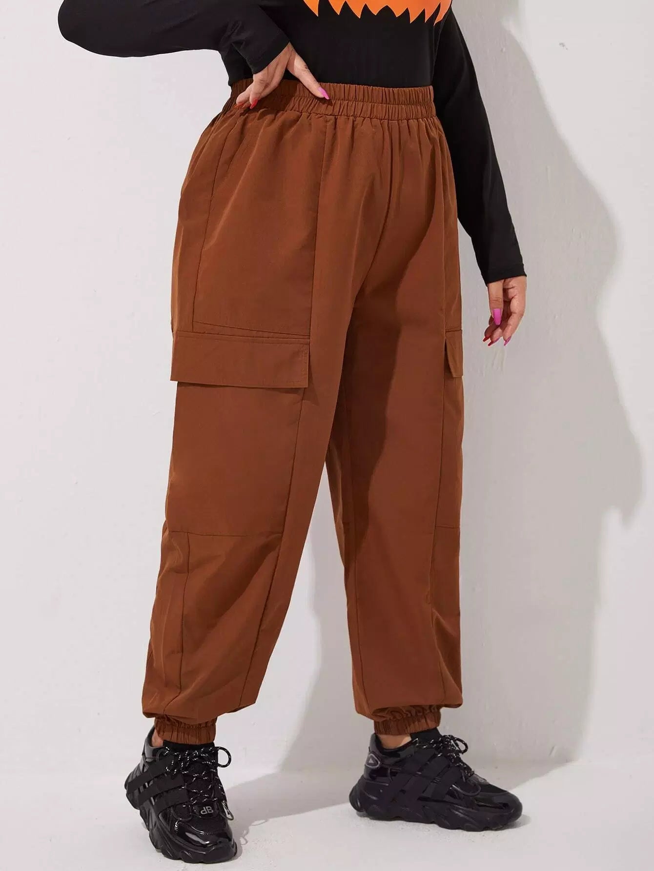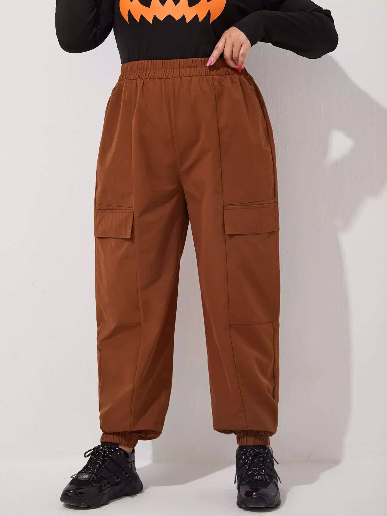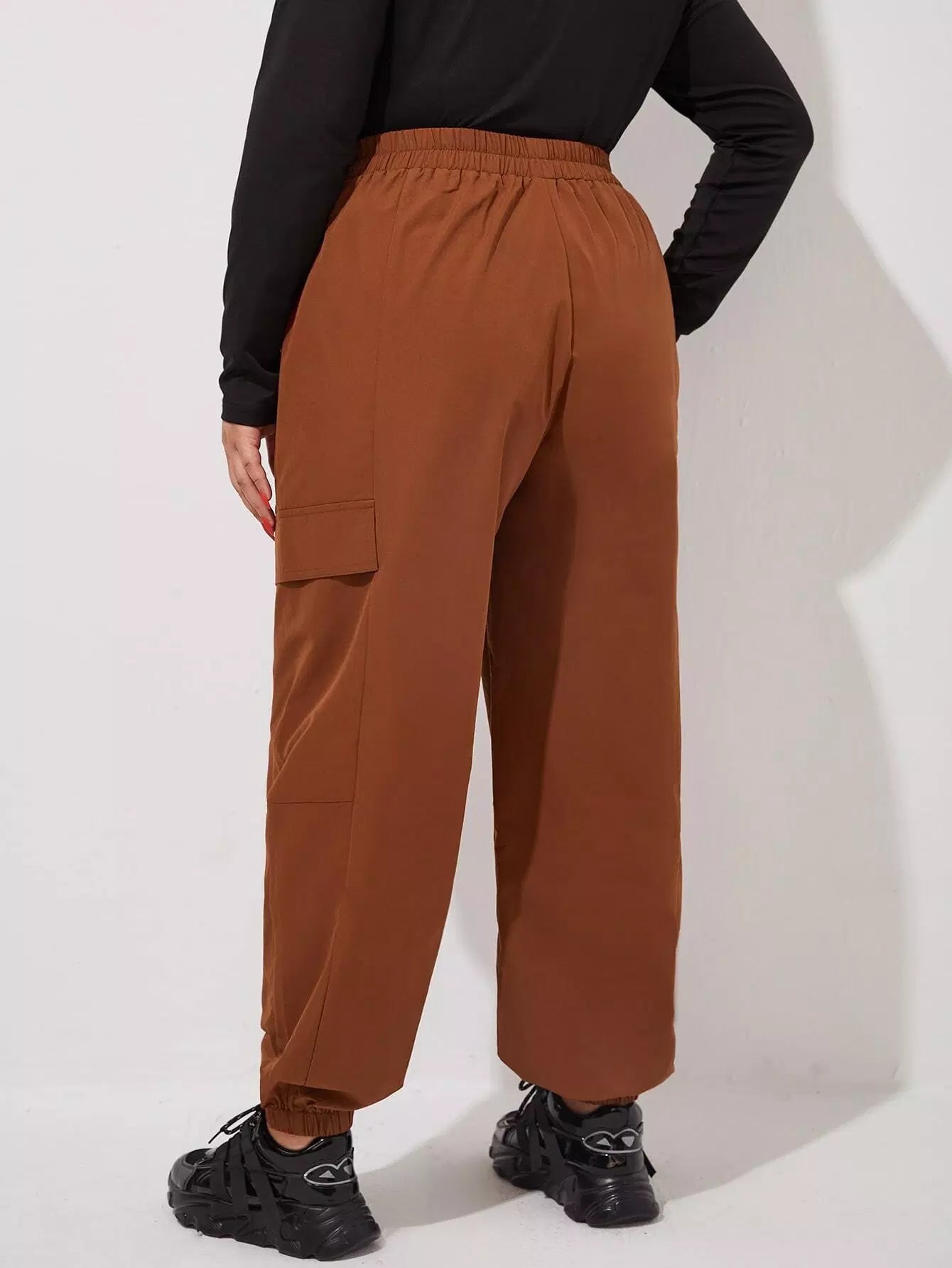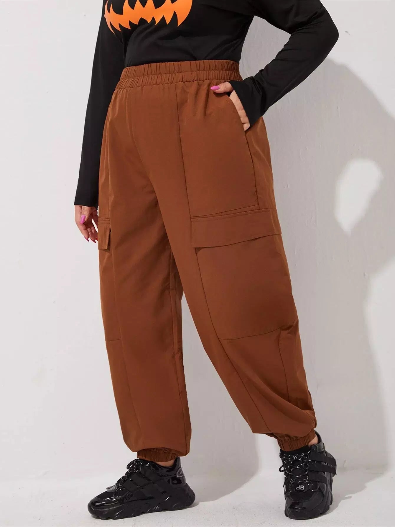 Plus Elastic Waist Slant Pocket Cargo Pants