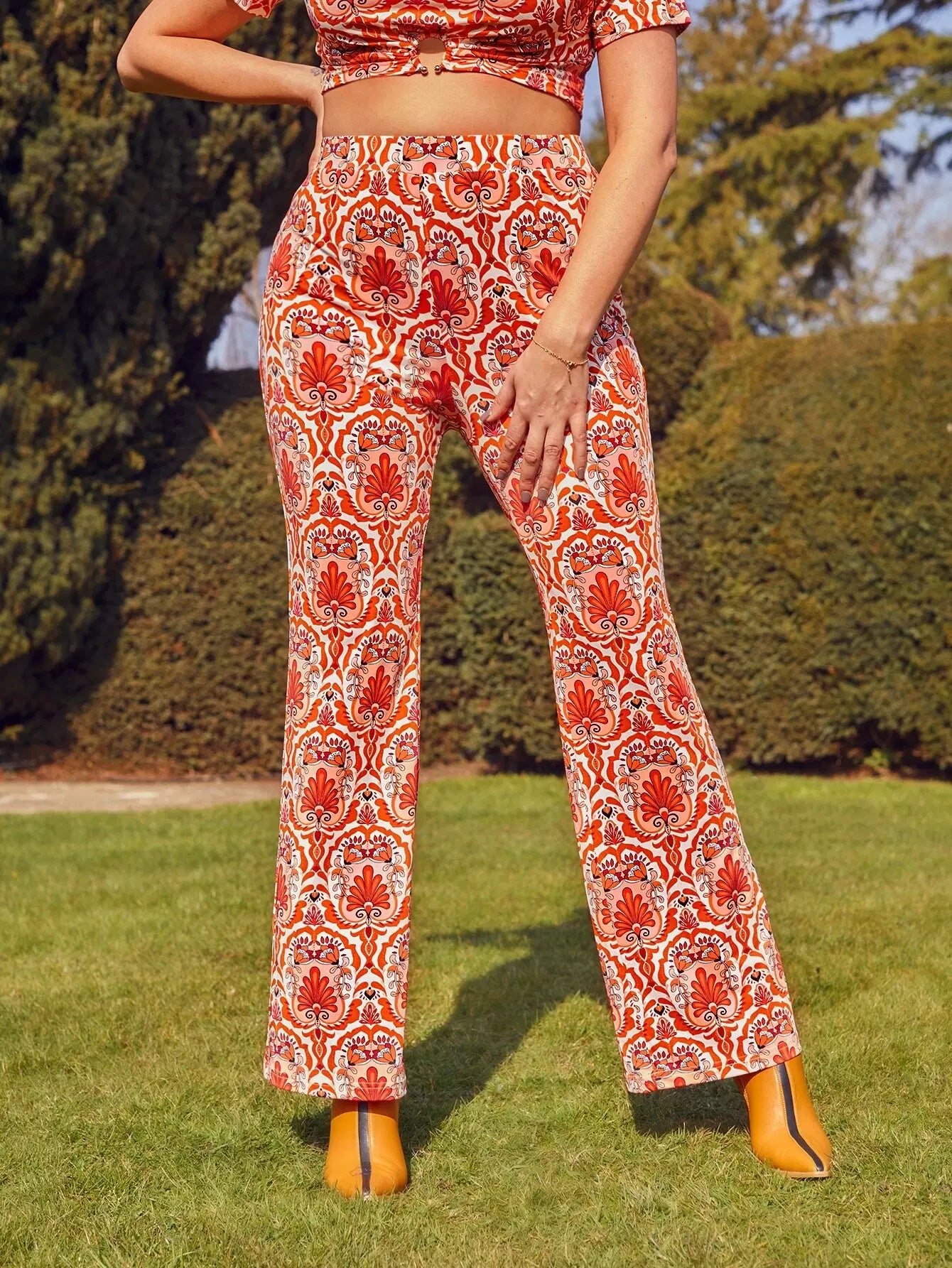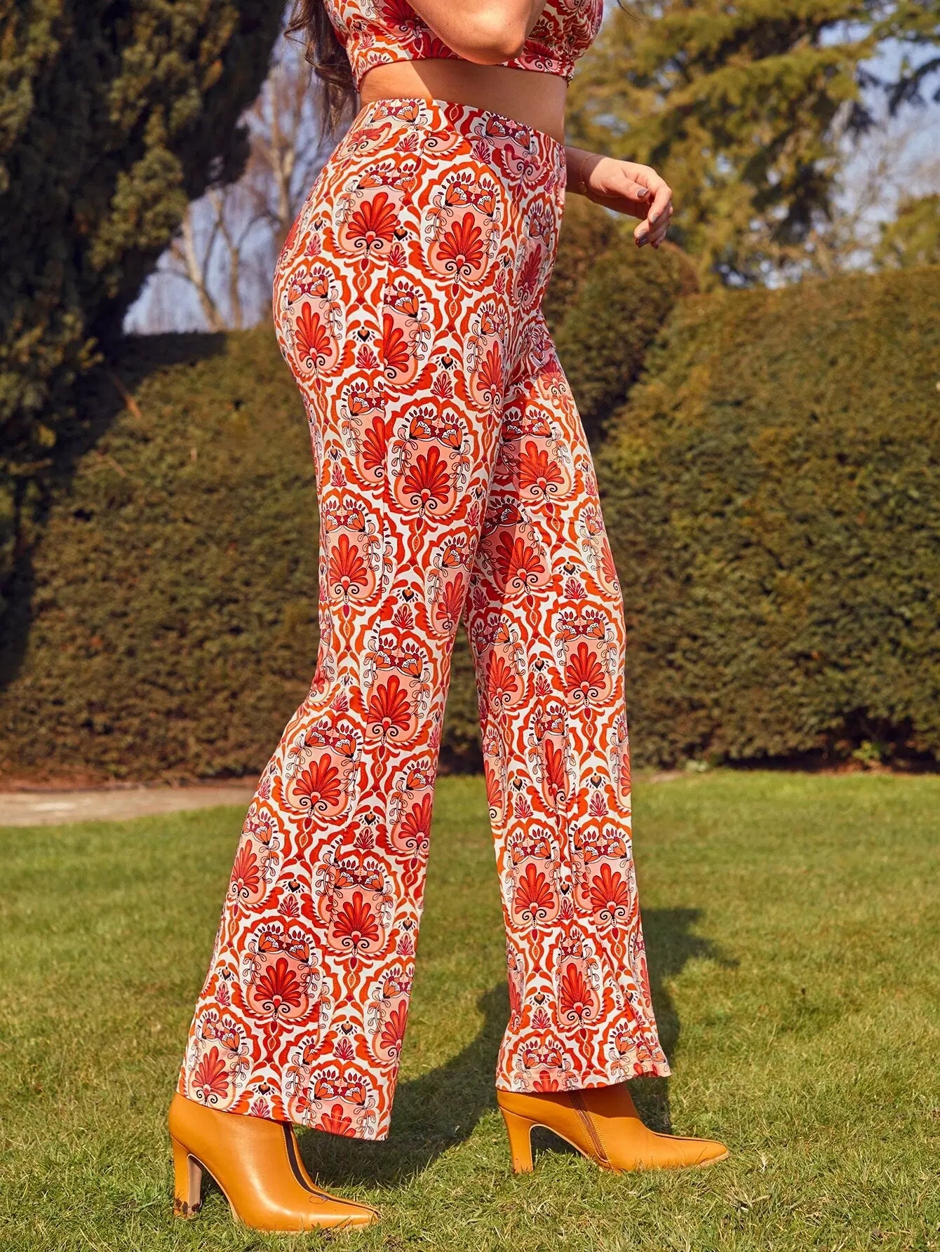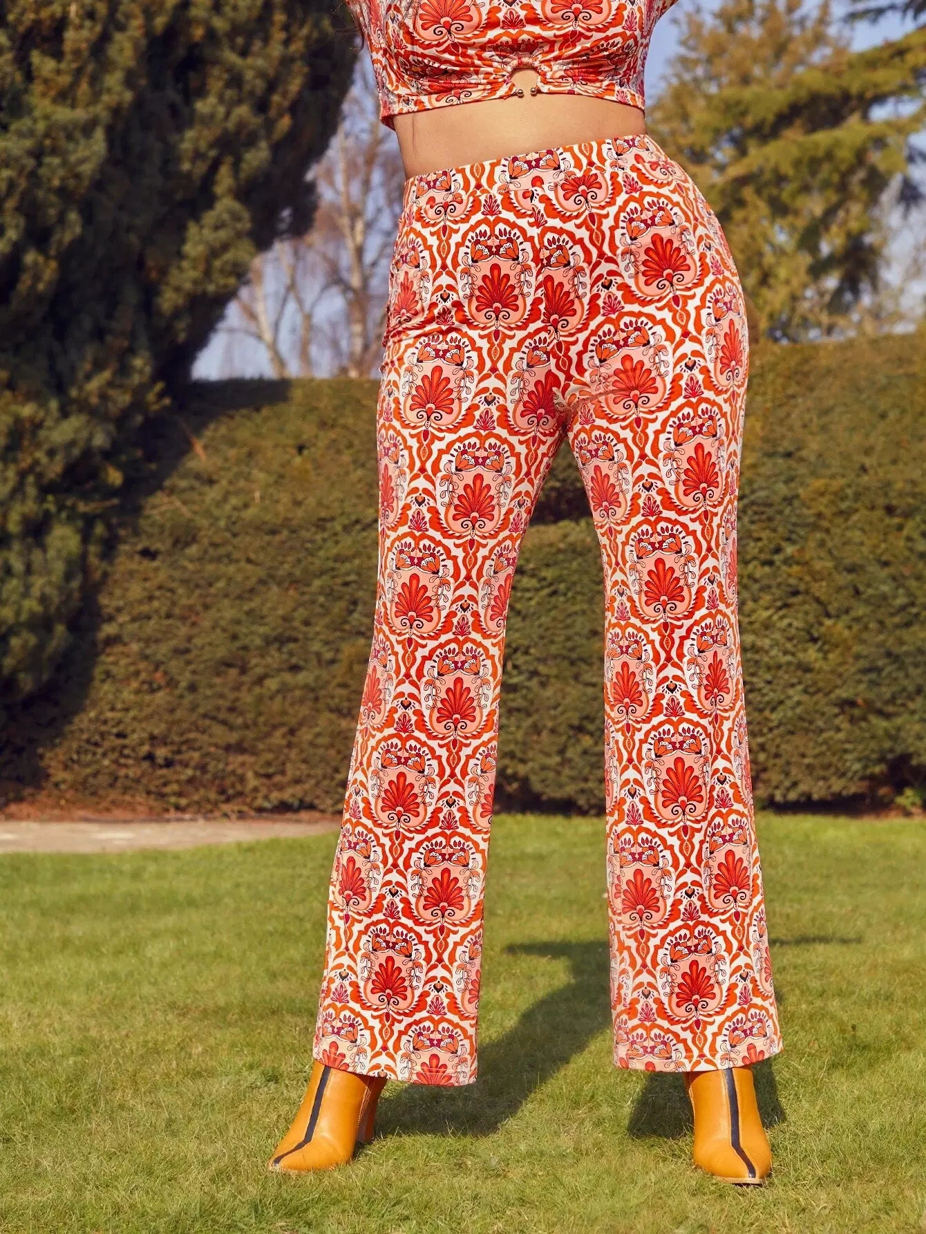 Plus Floral High Waist Pants