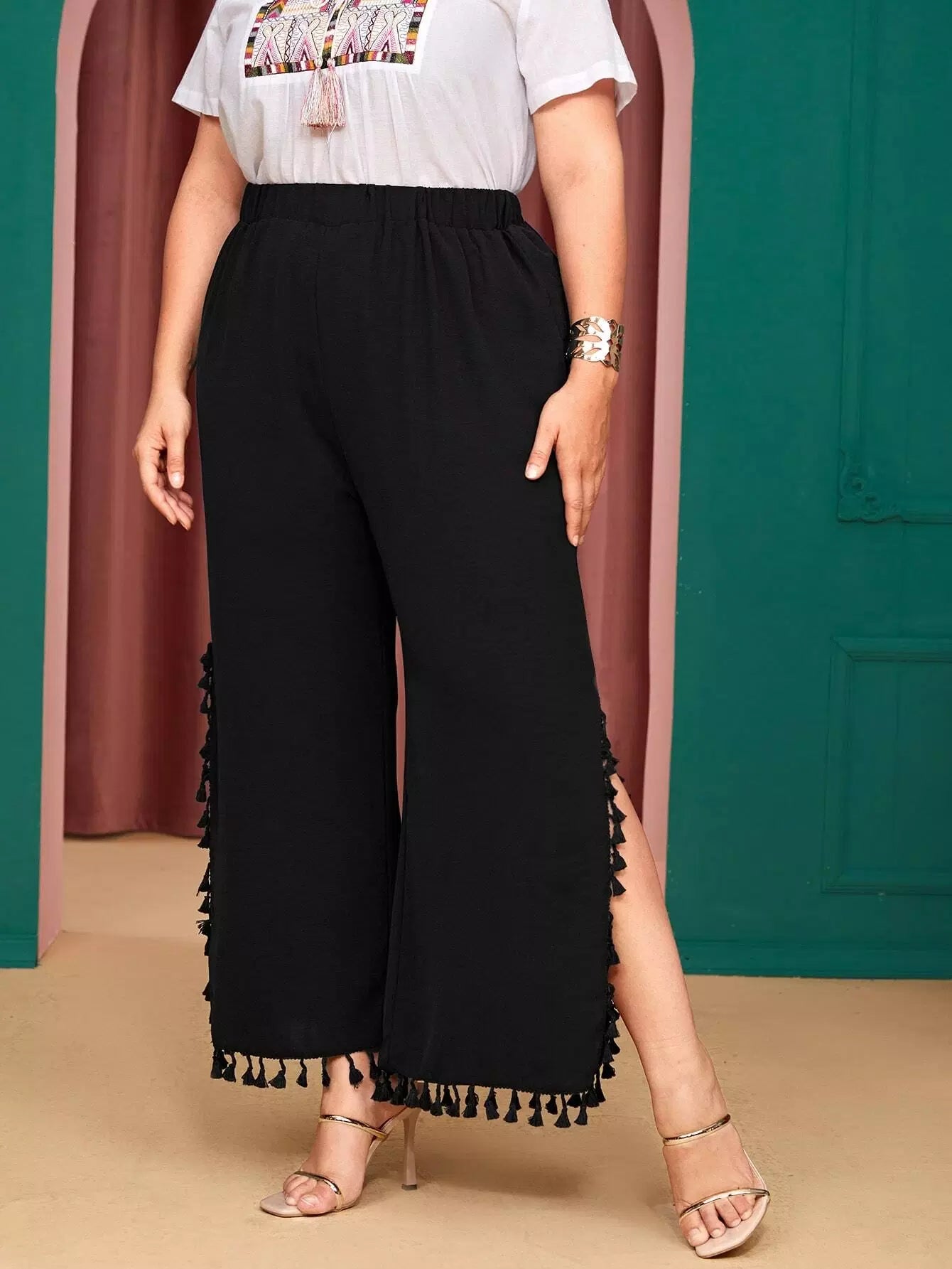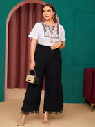 Plus Fringe Split Wide Leg Pants
