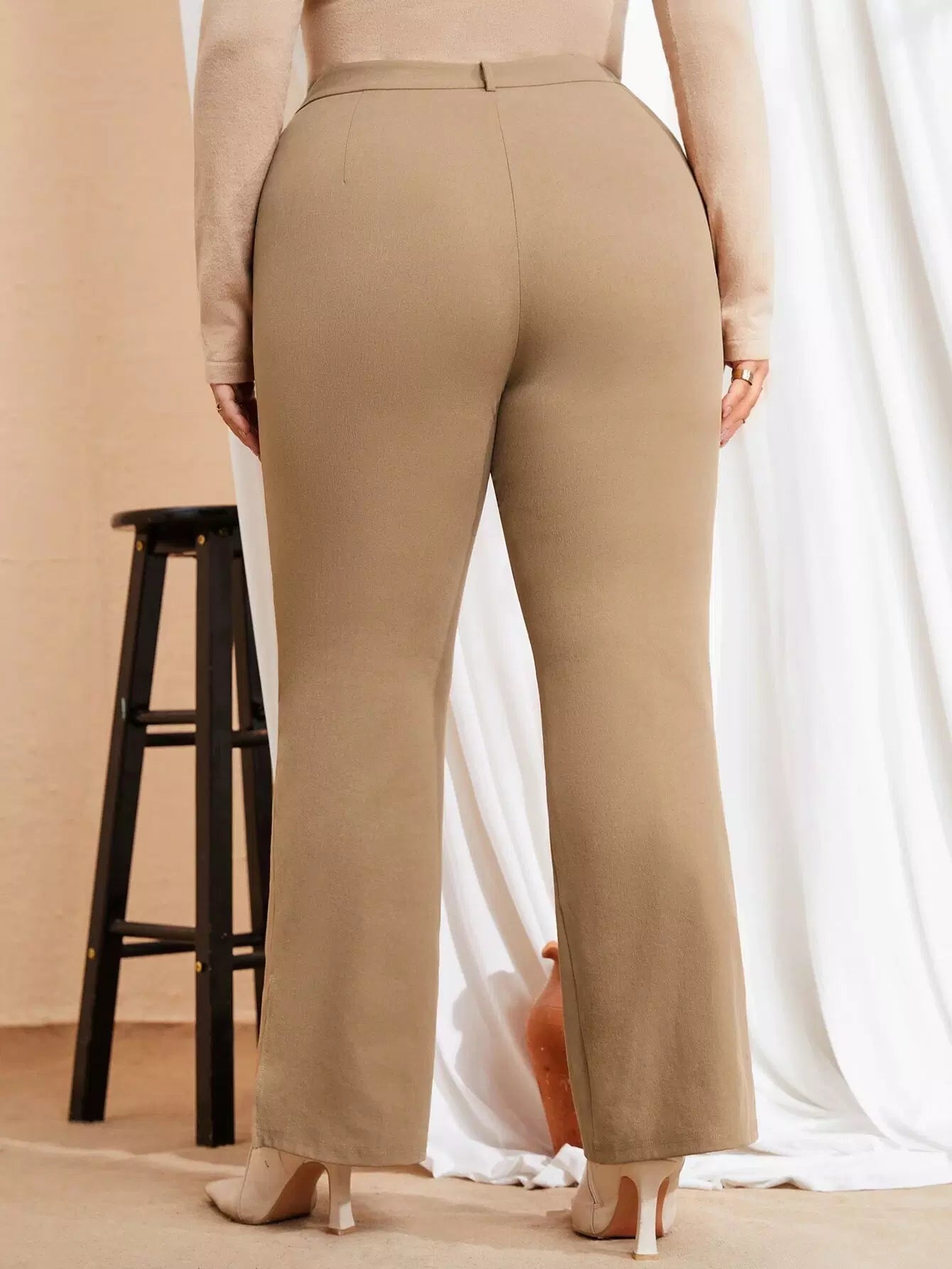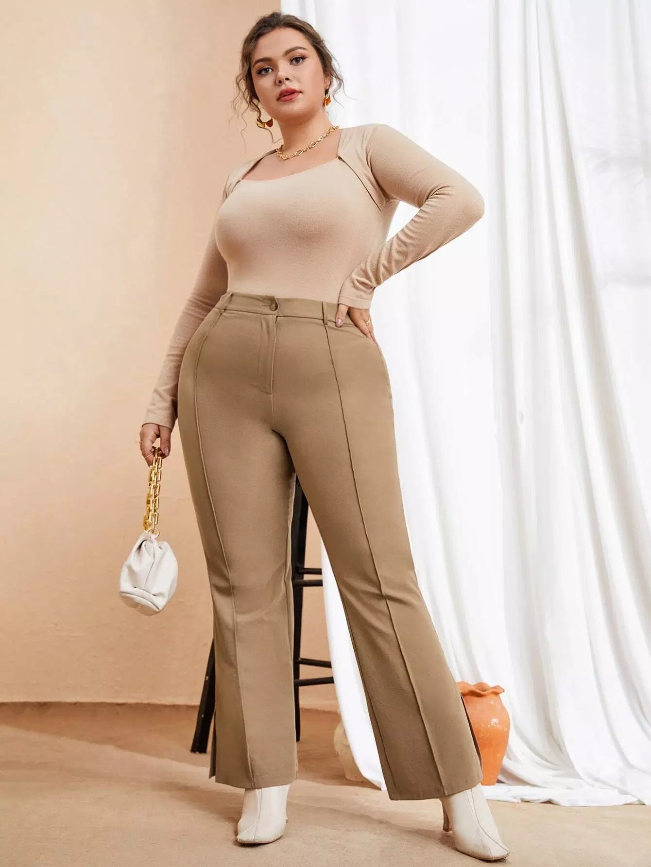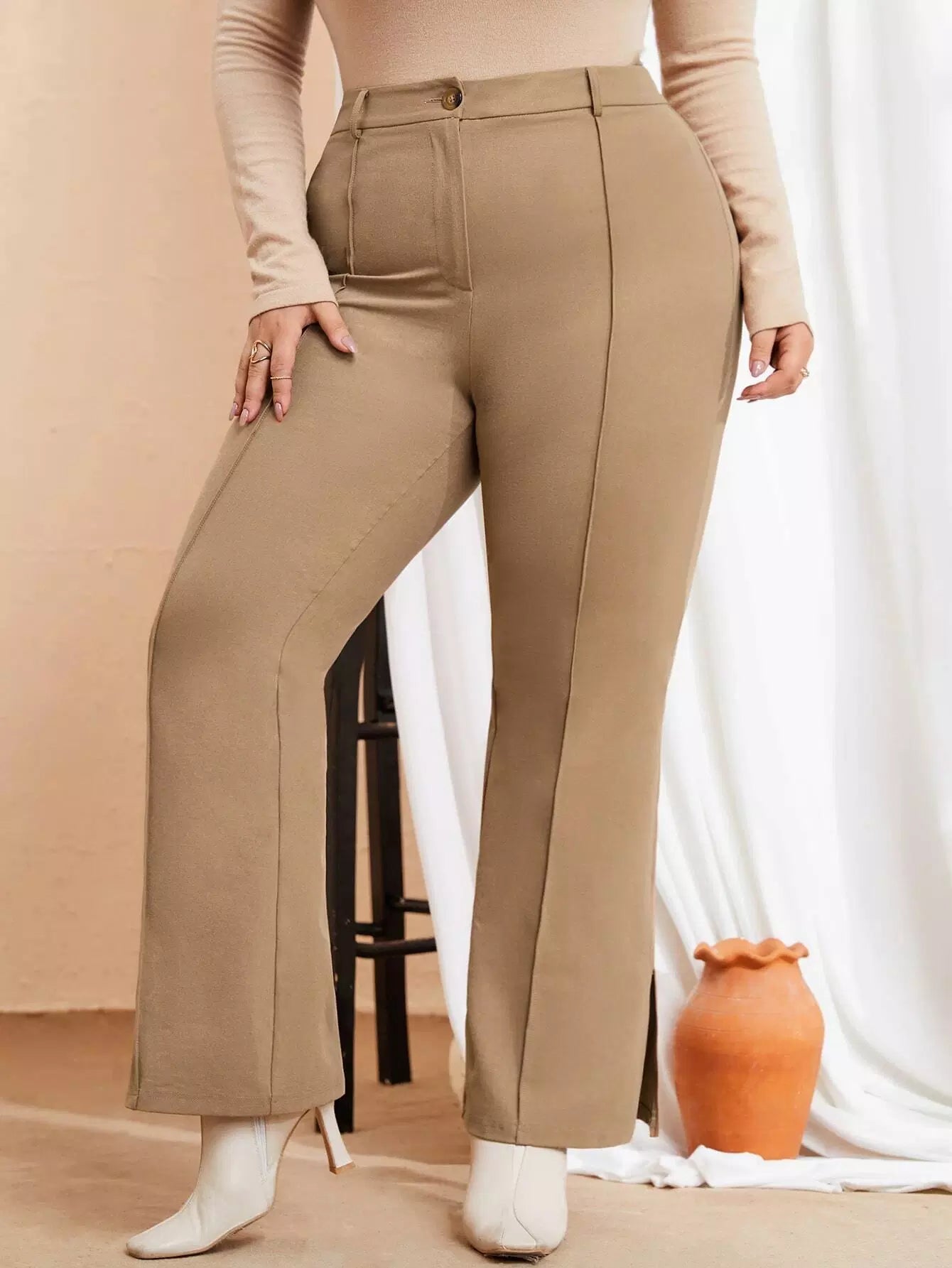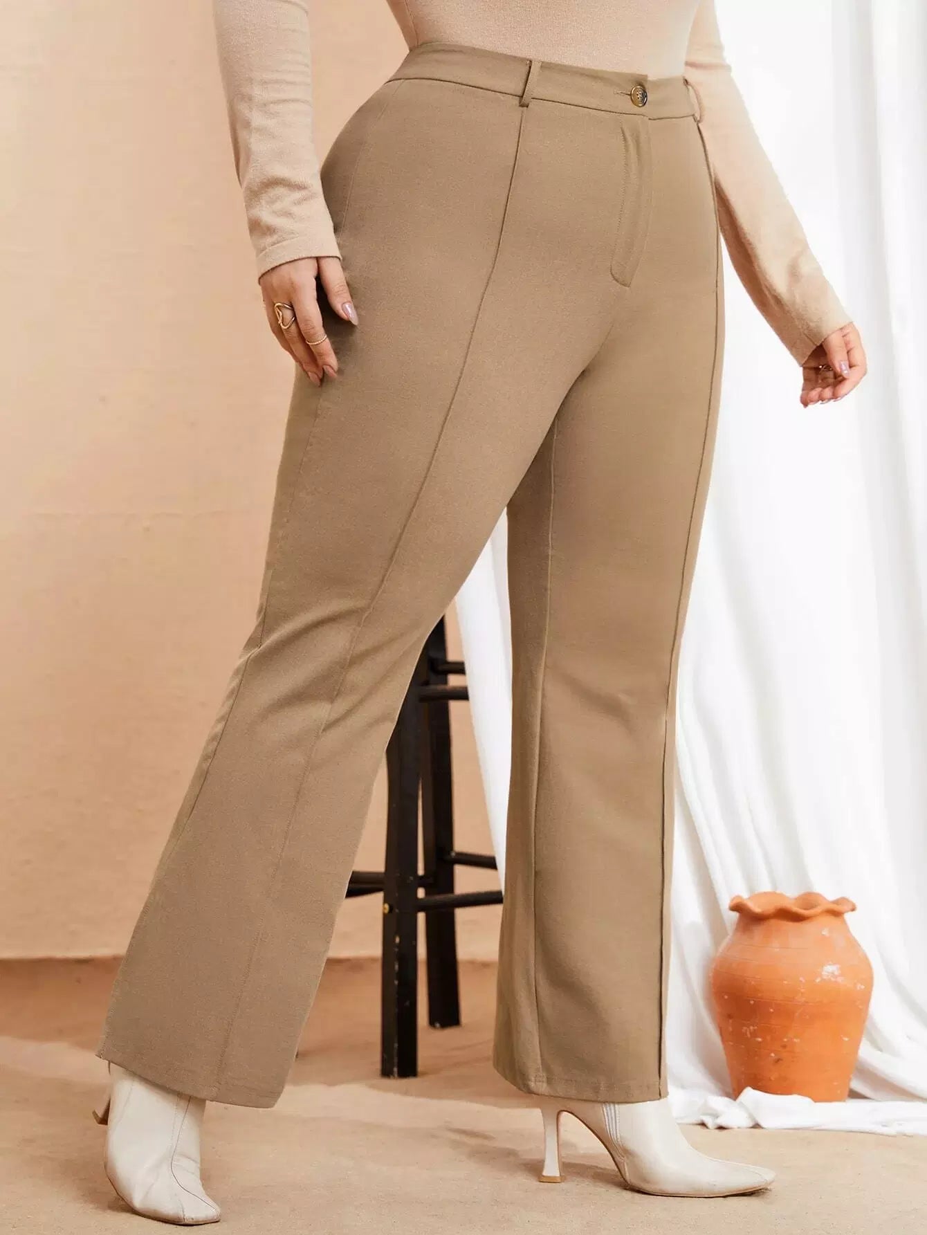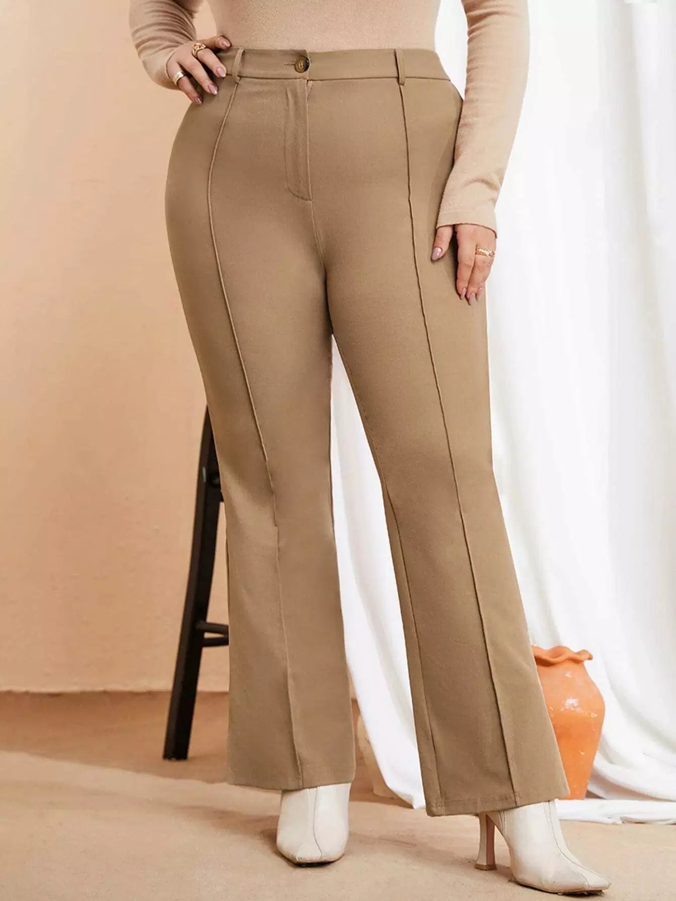 Plus High Waist Seam Detail Flare Leg Pants