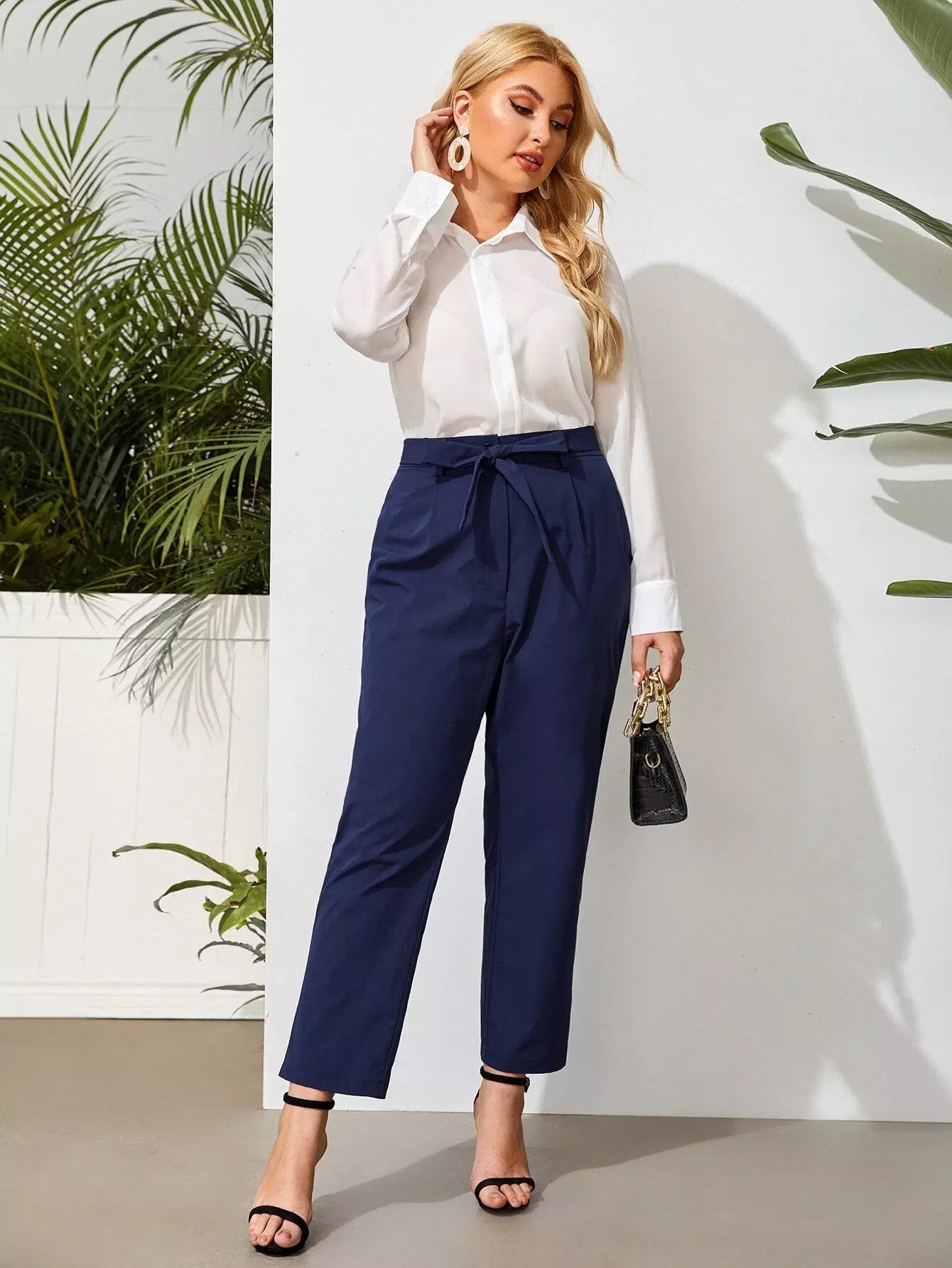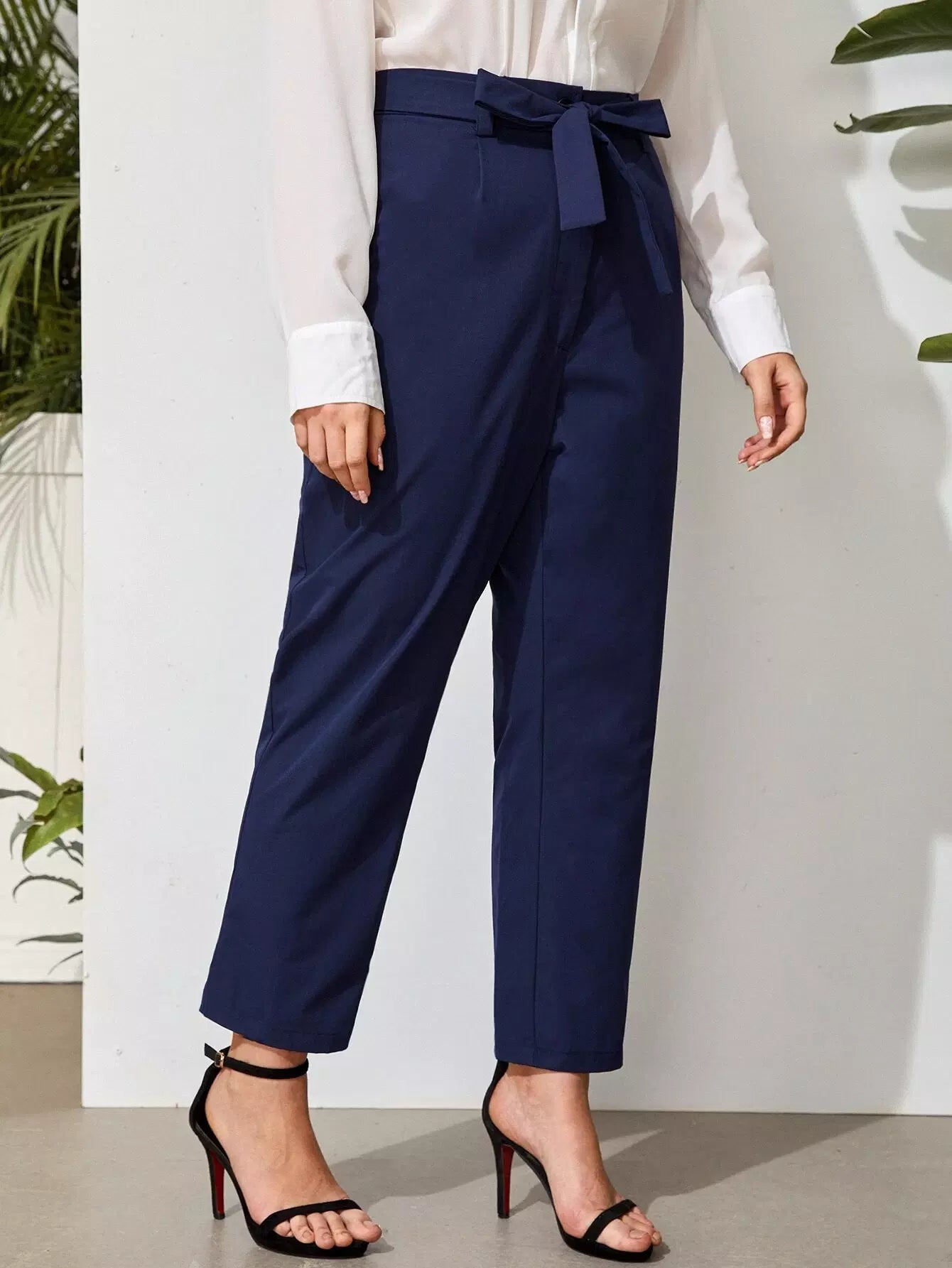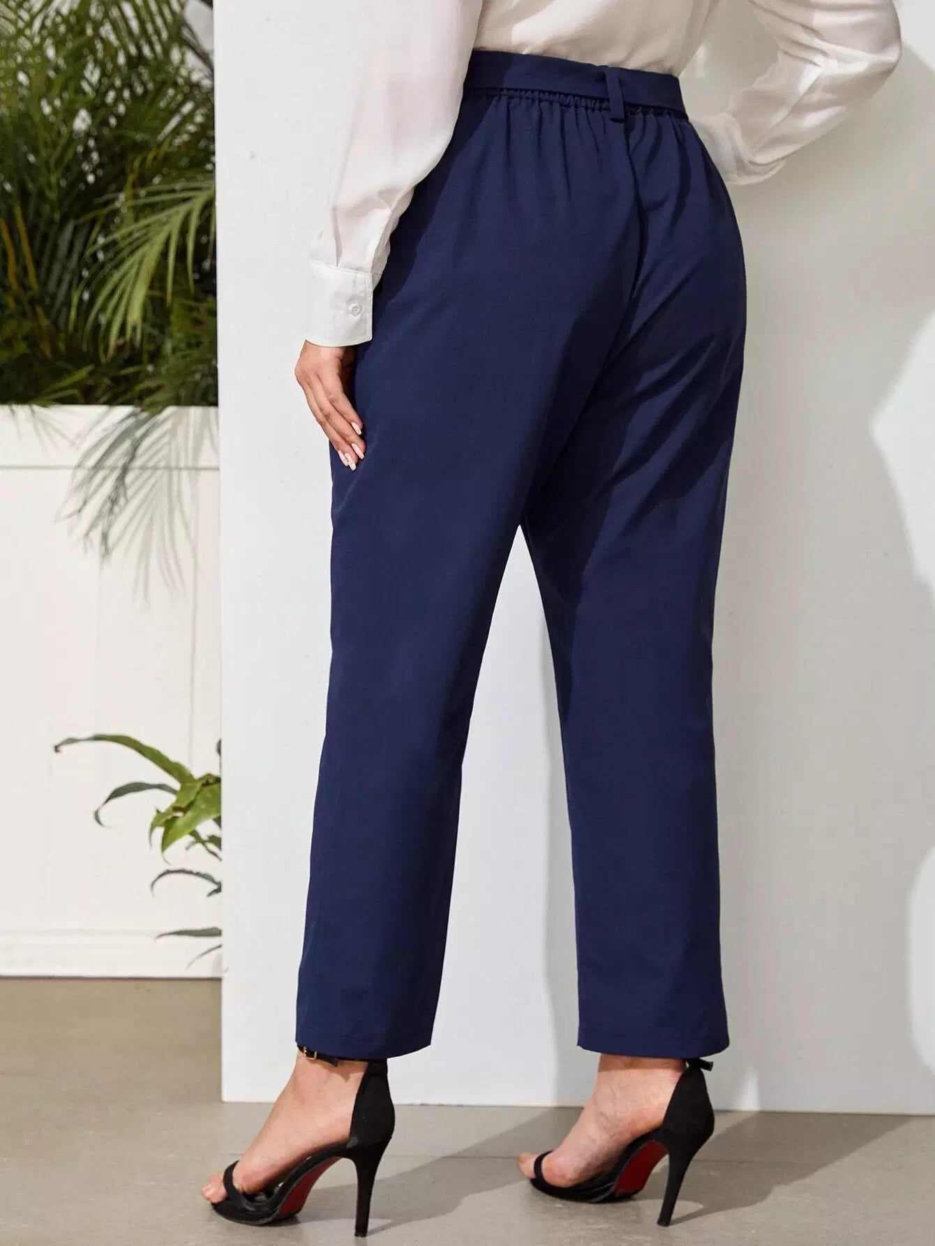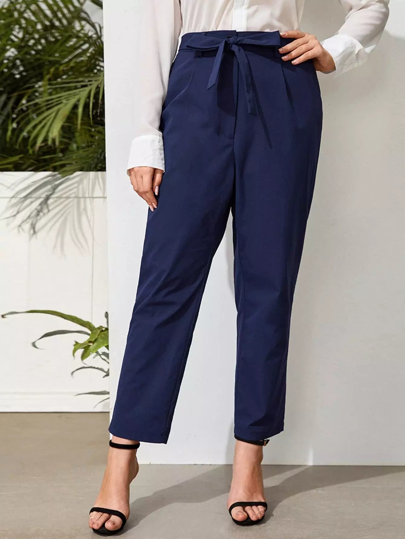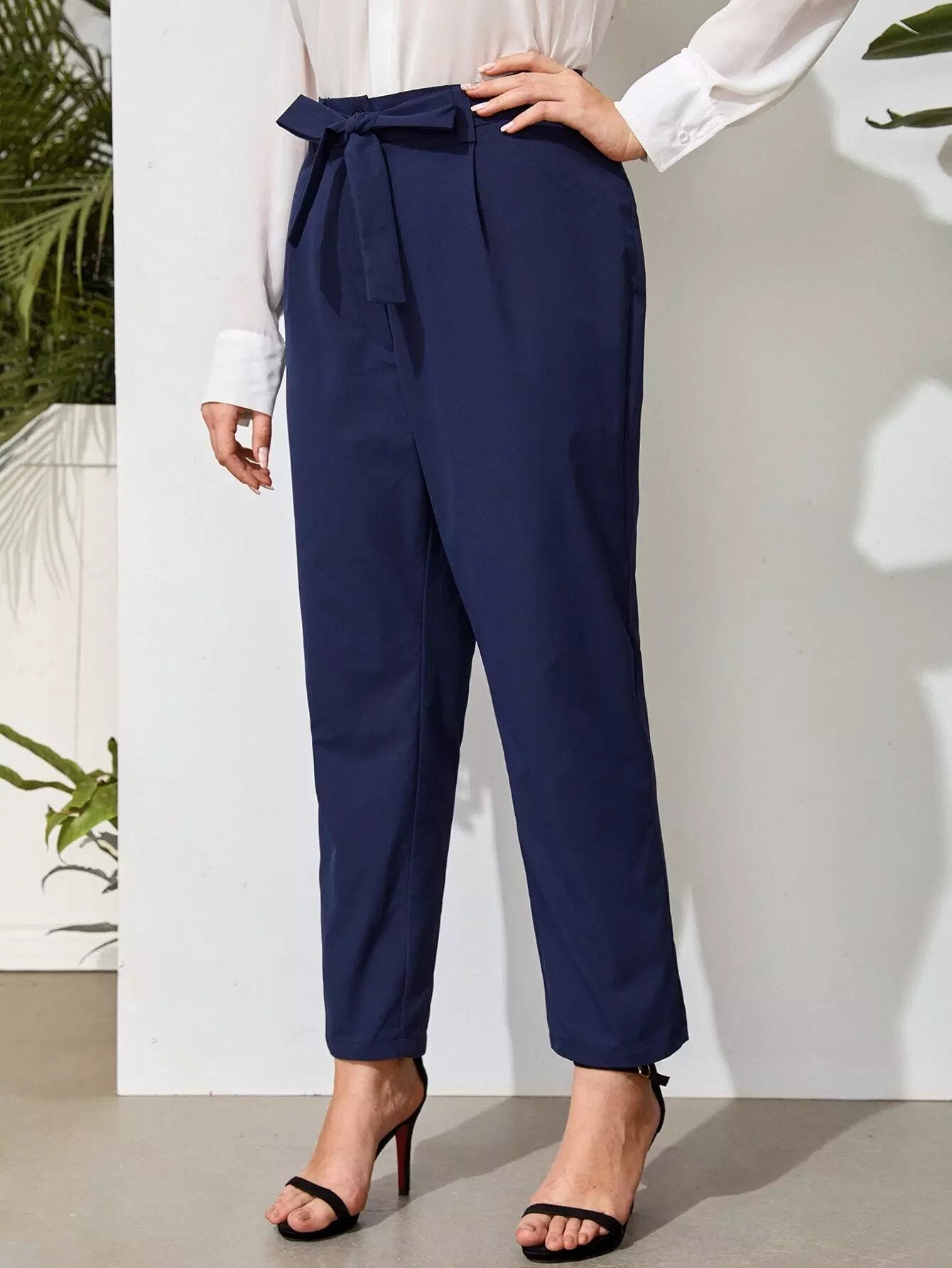 Plus Solid Tapered Pants Without Belt