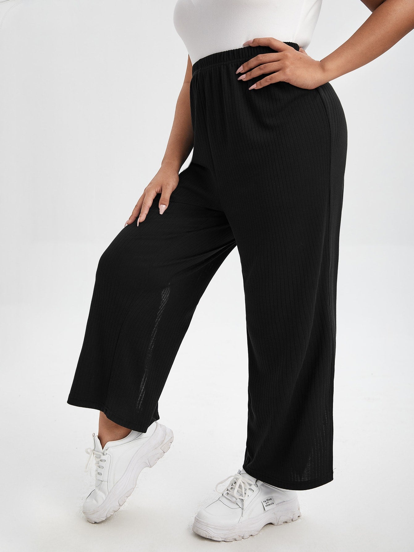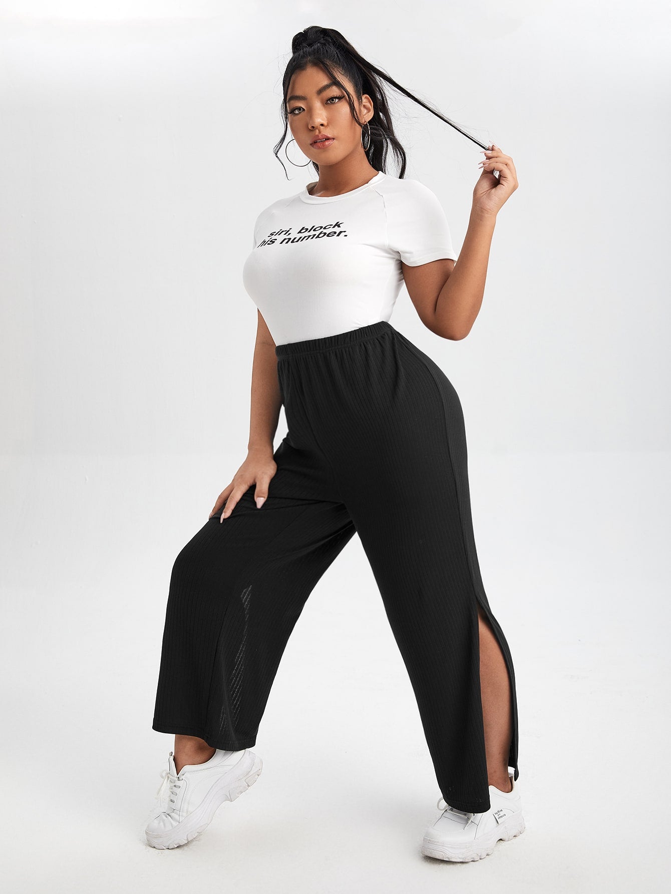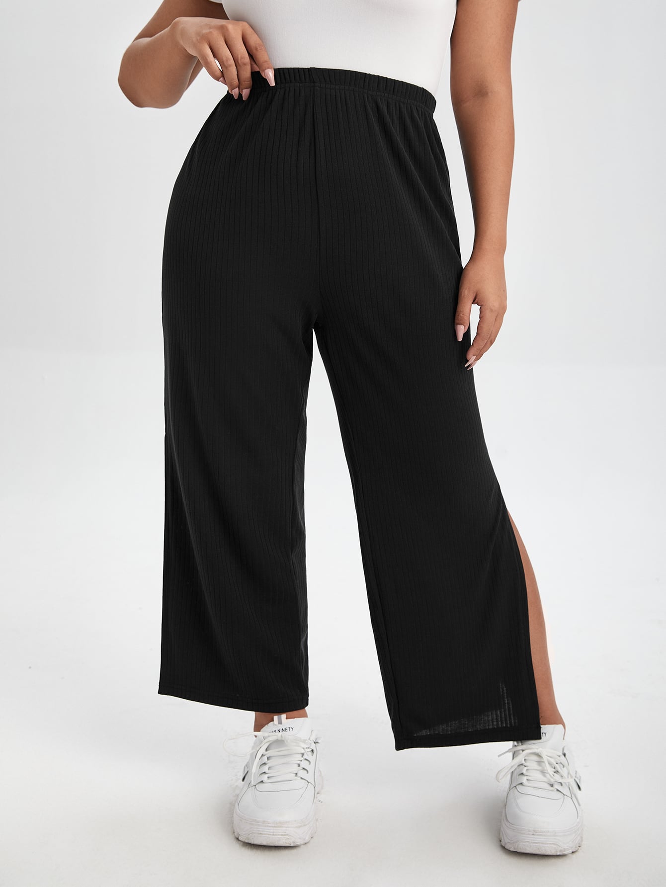 Plus Split Hem Wide Leg Pants