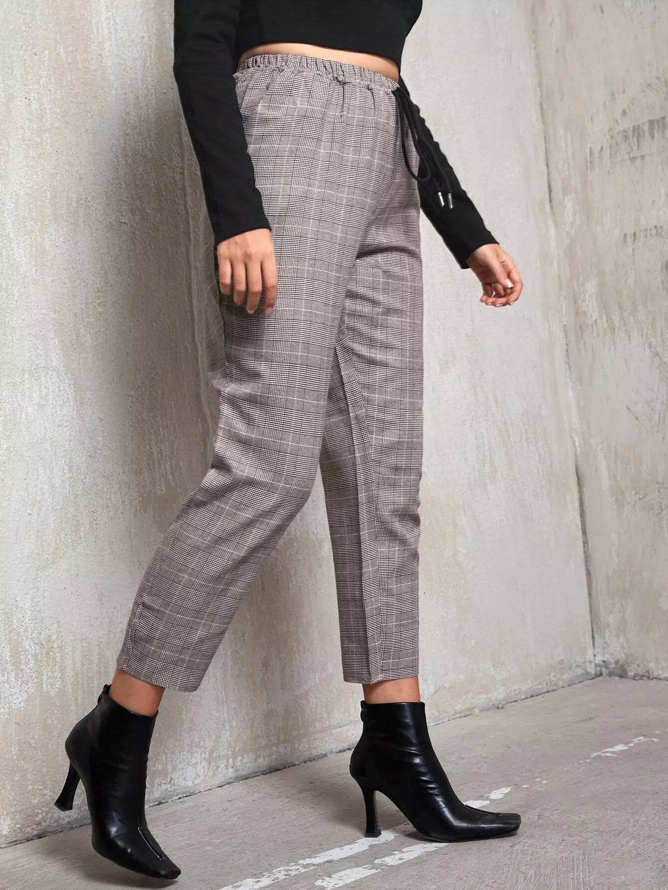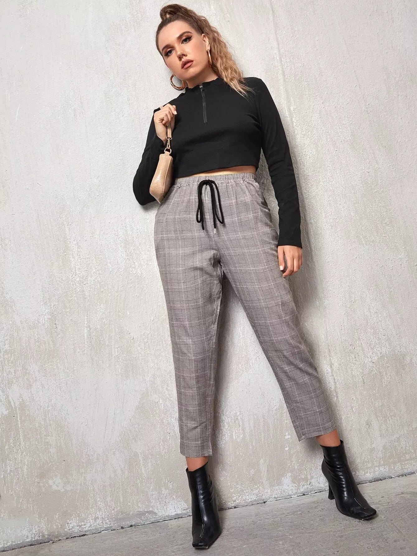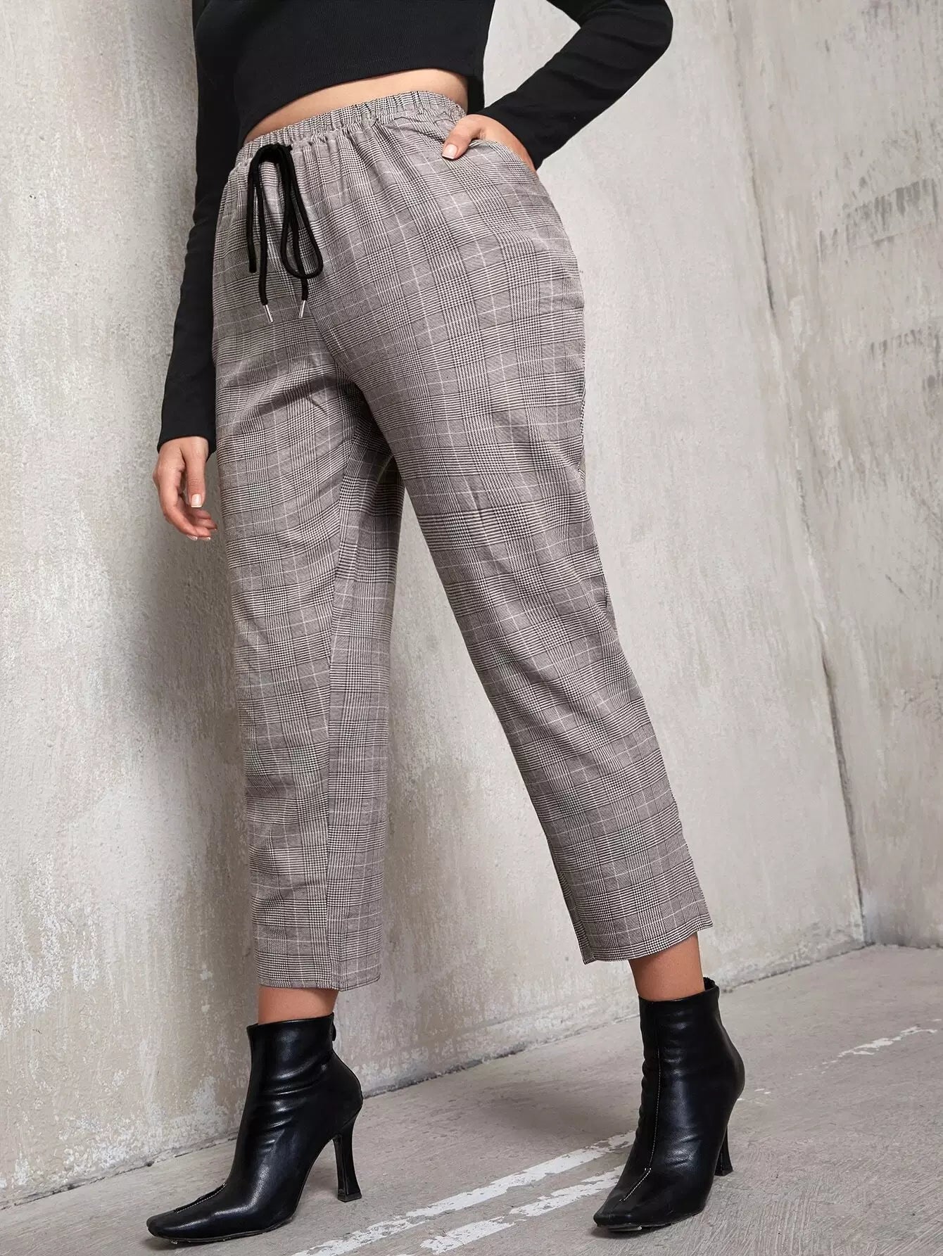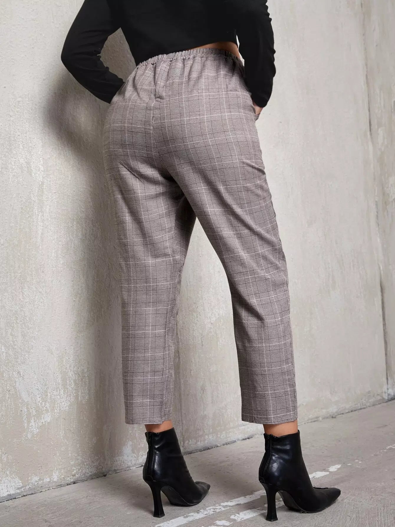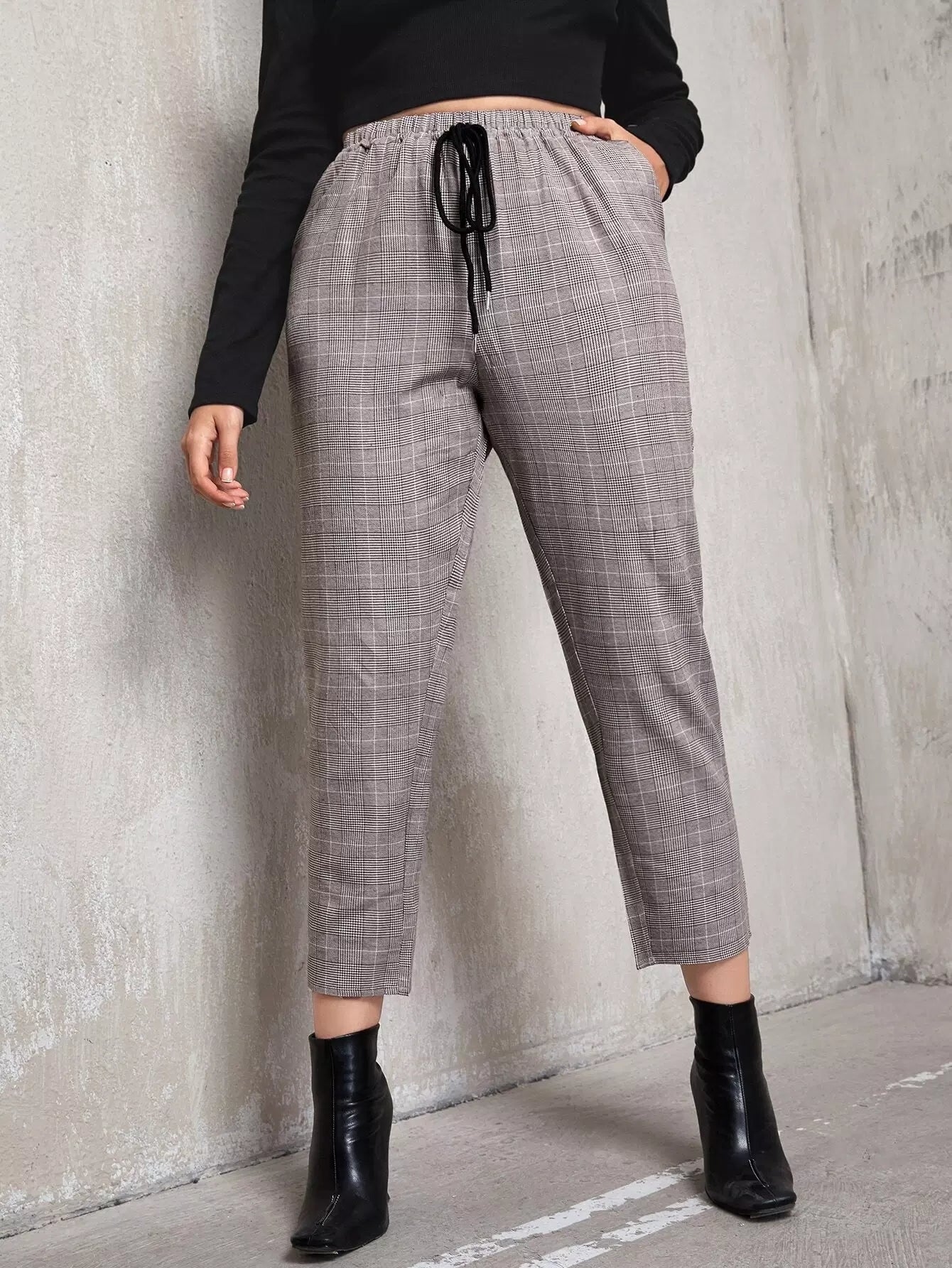 Plus Tie Front Plaid Tapered Pants