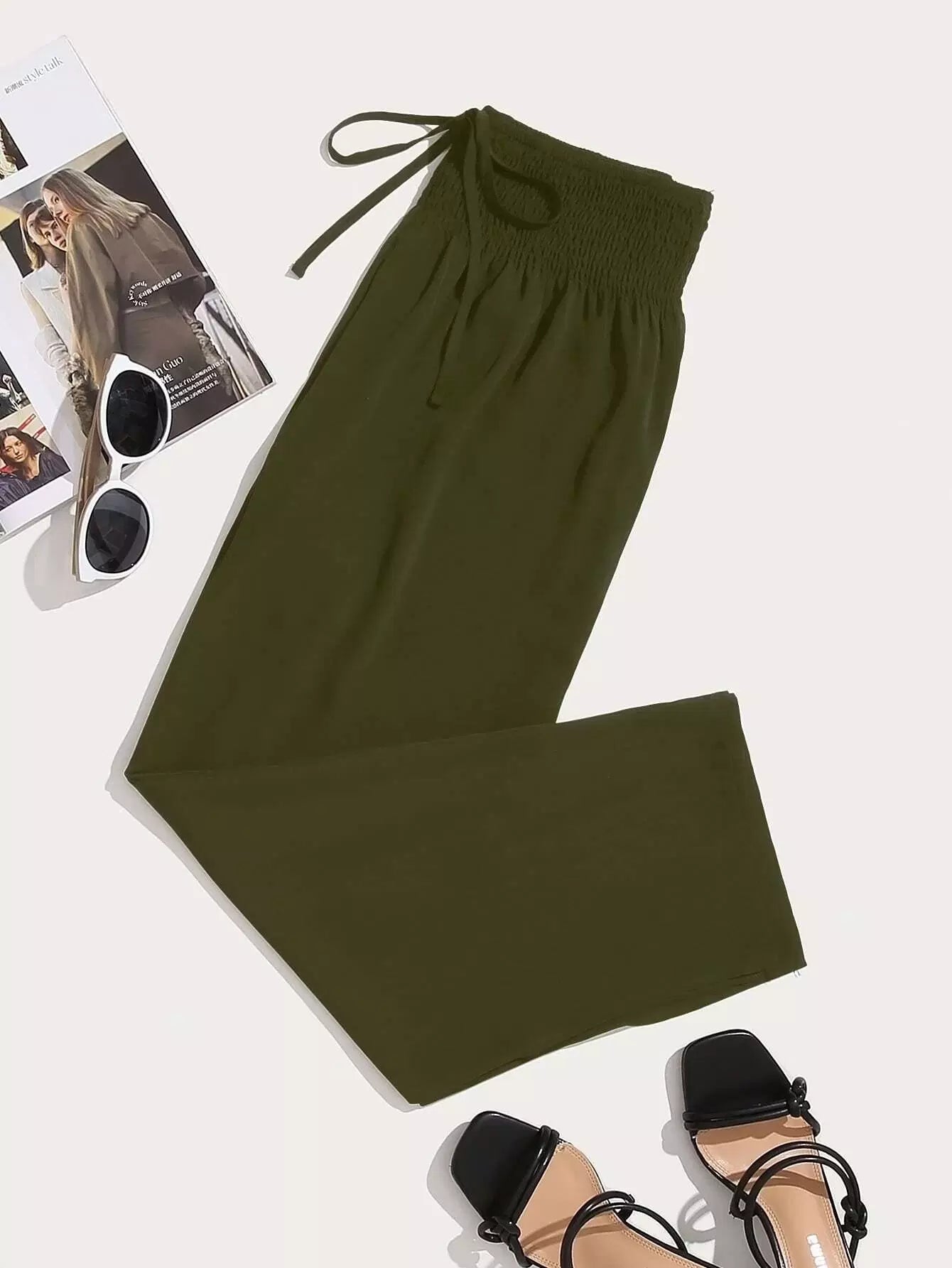 Plus Tie Front Shirred Waist Pants