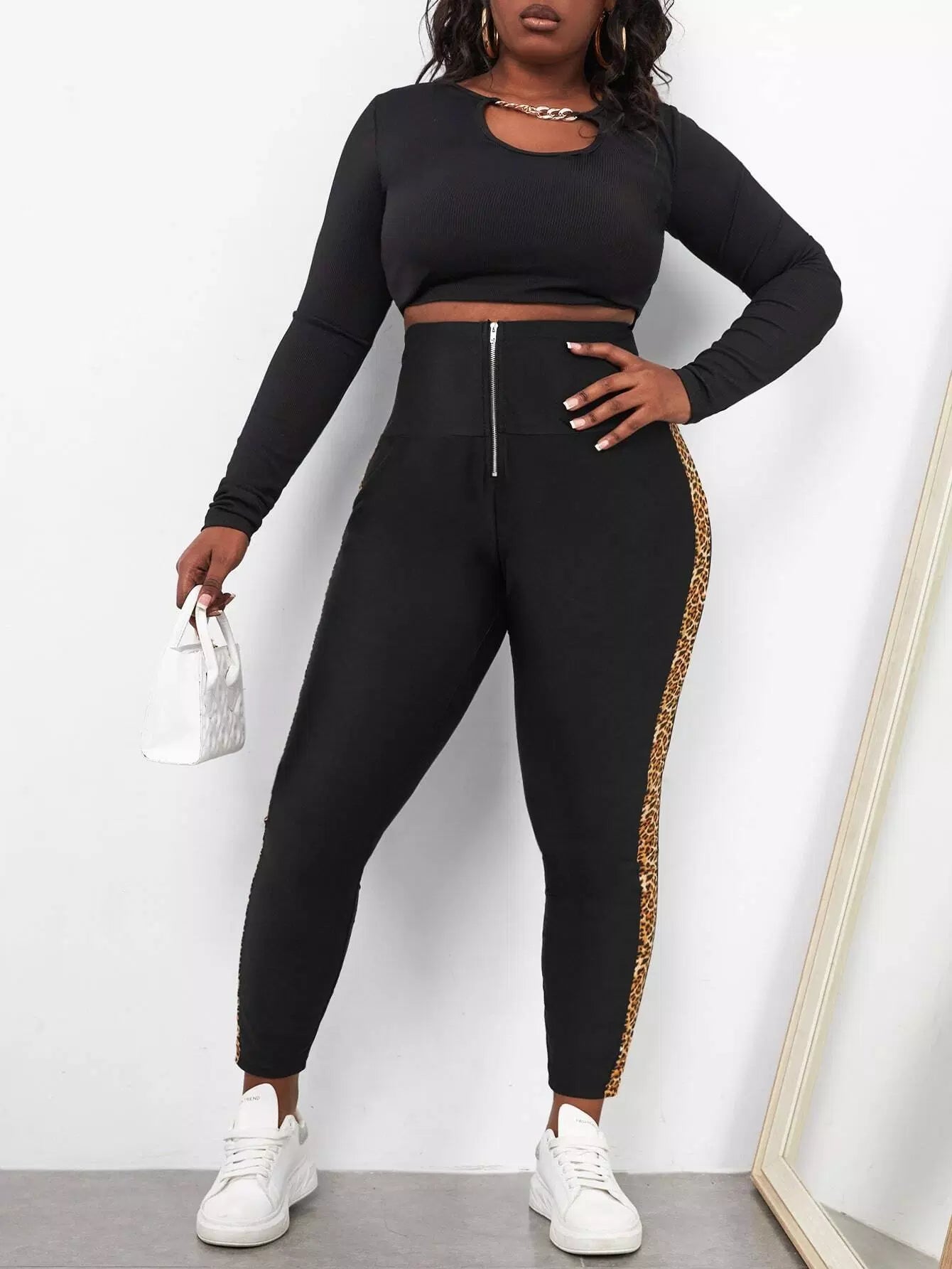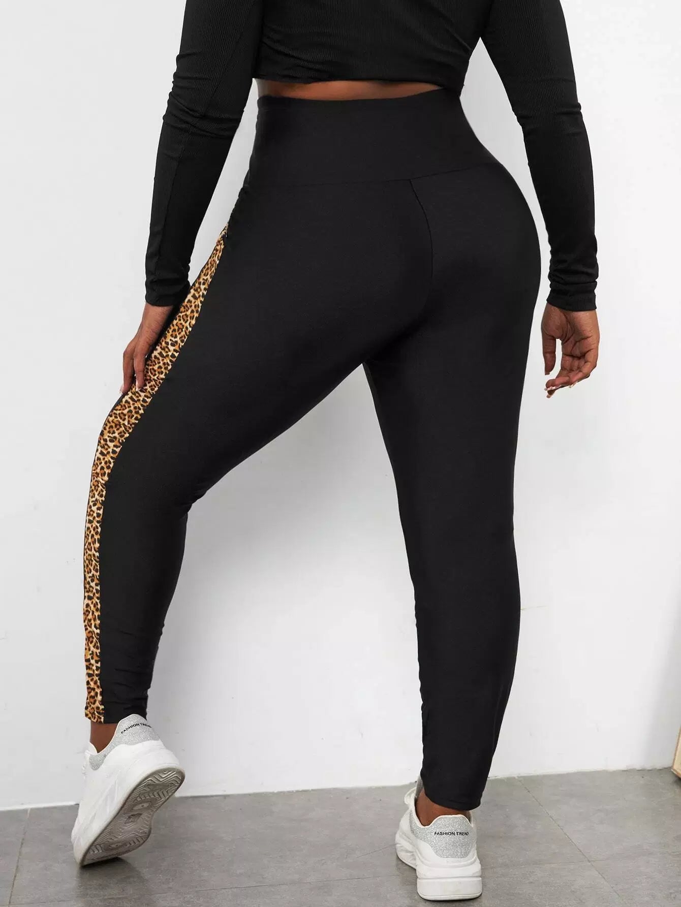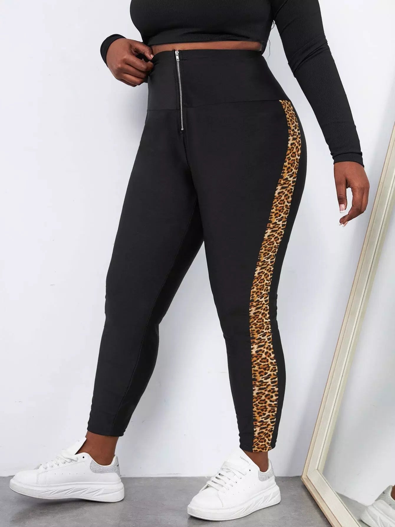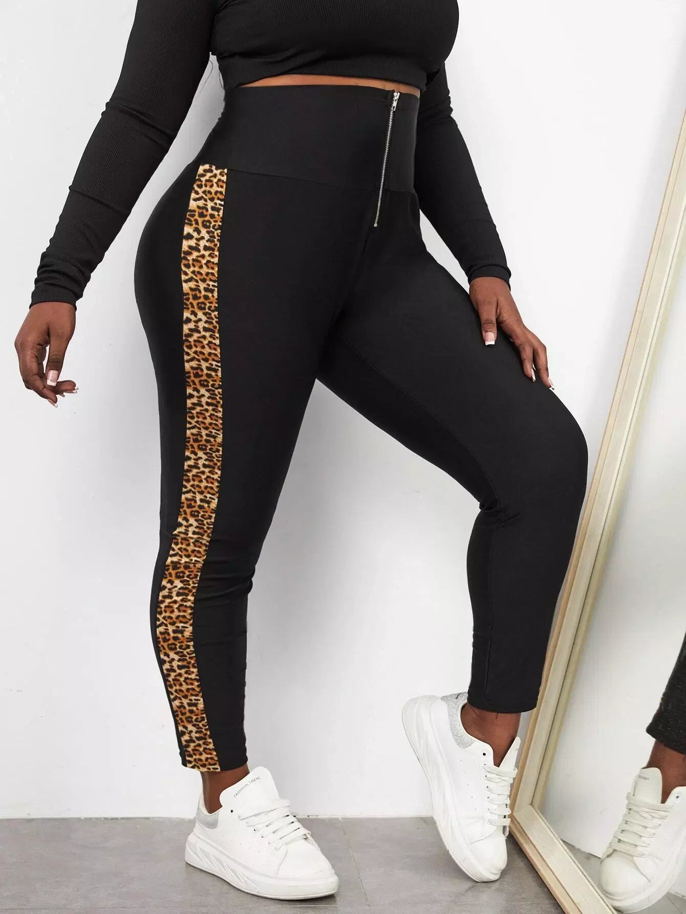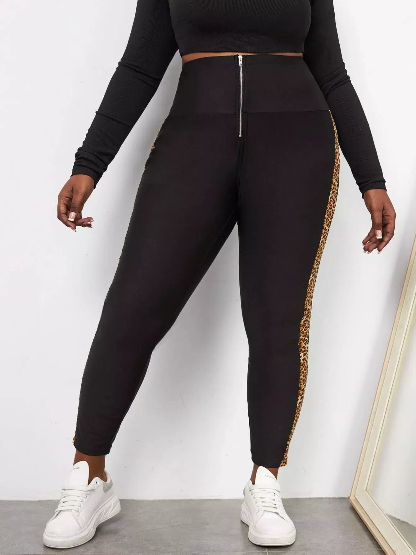 Plus Zip Fly Contrast Leopard Side Seam Skinny Pants