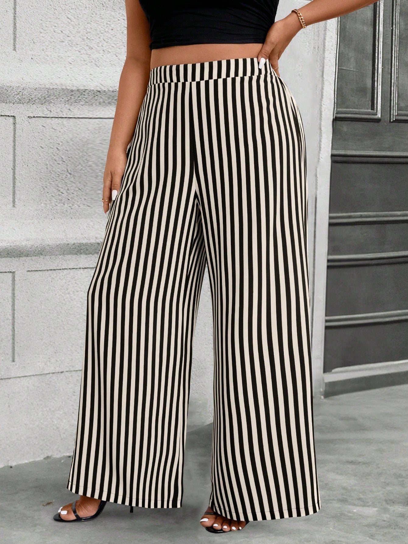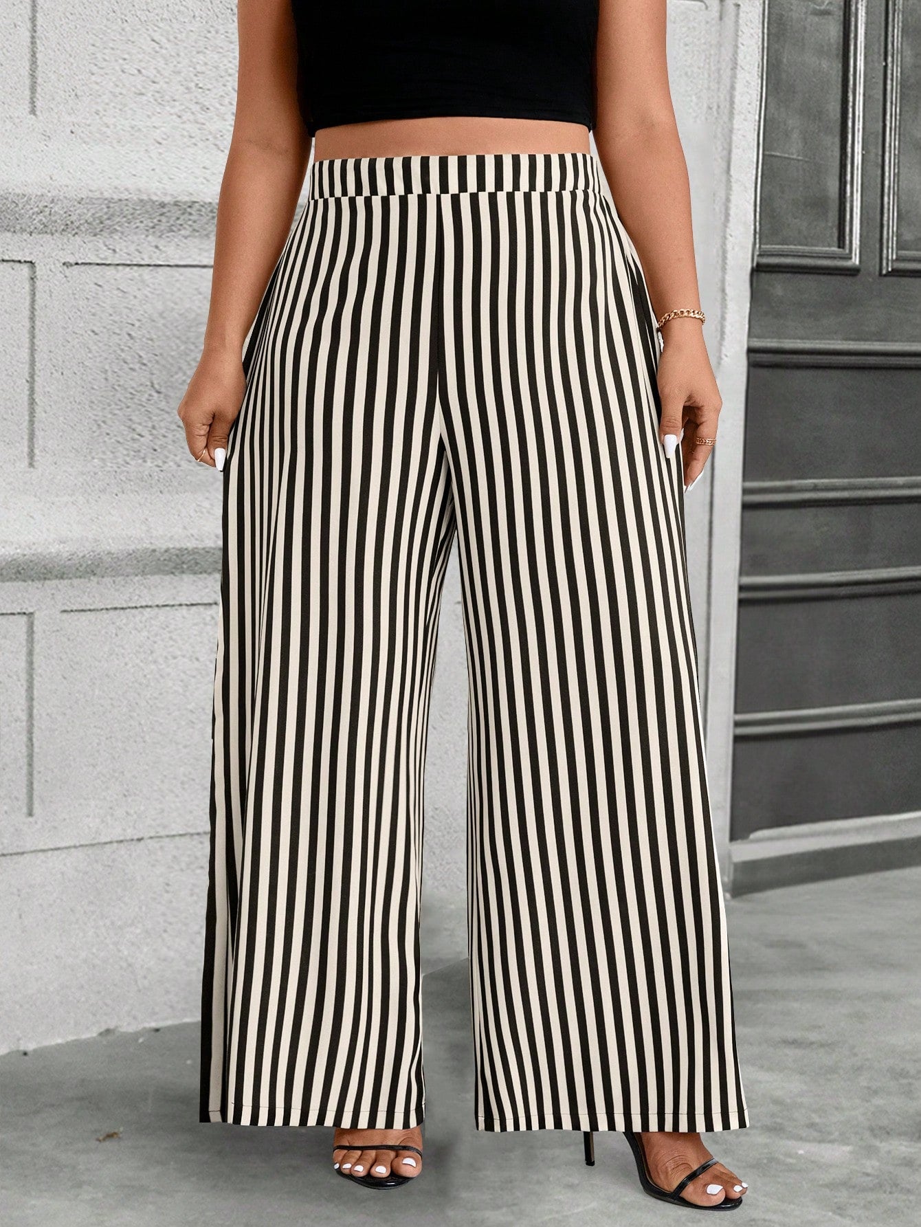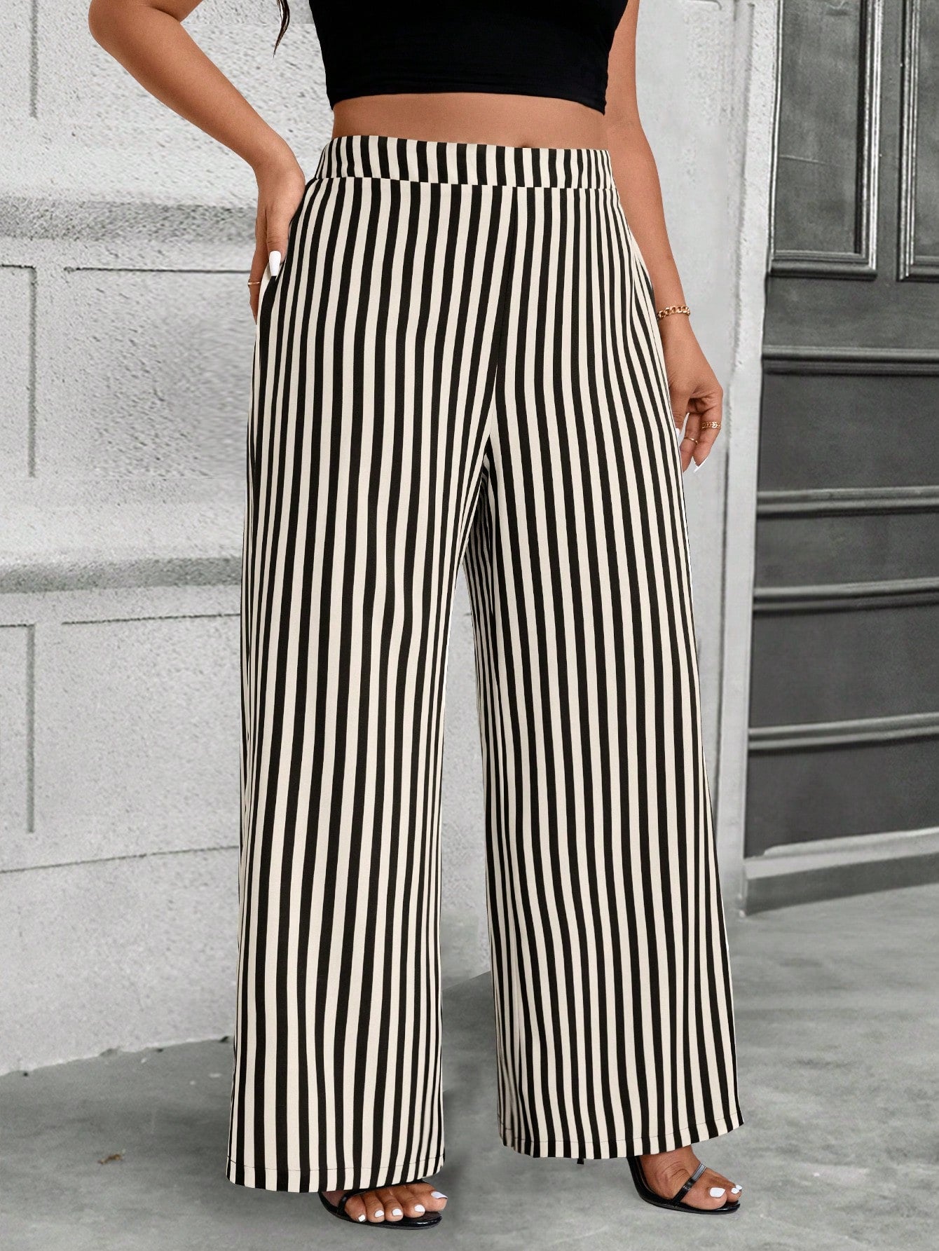 SHEIN Tall Plus Size Women Striped Beach Vacation Casual Pants