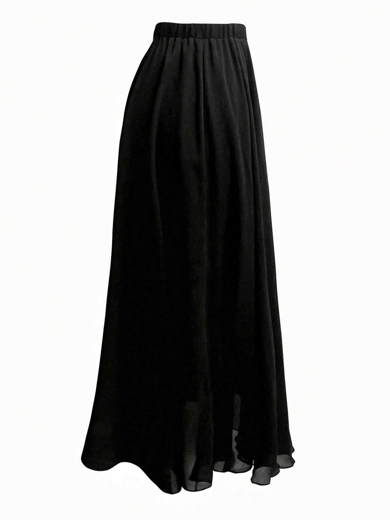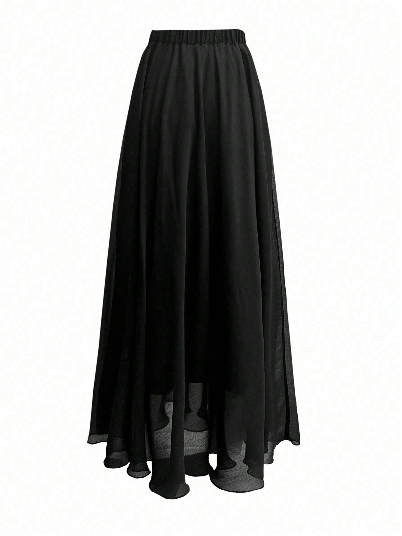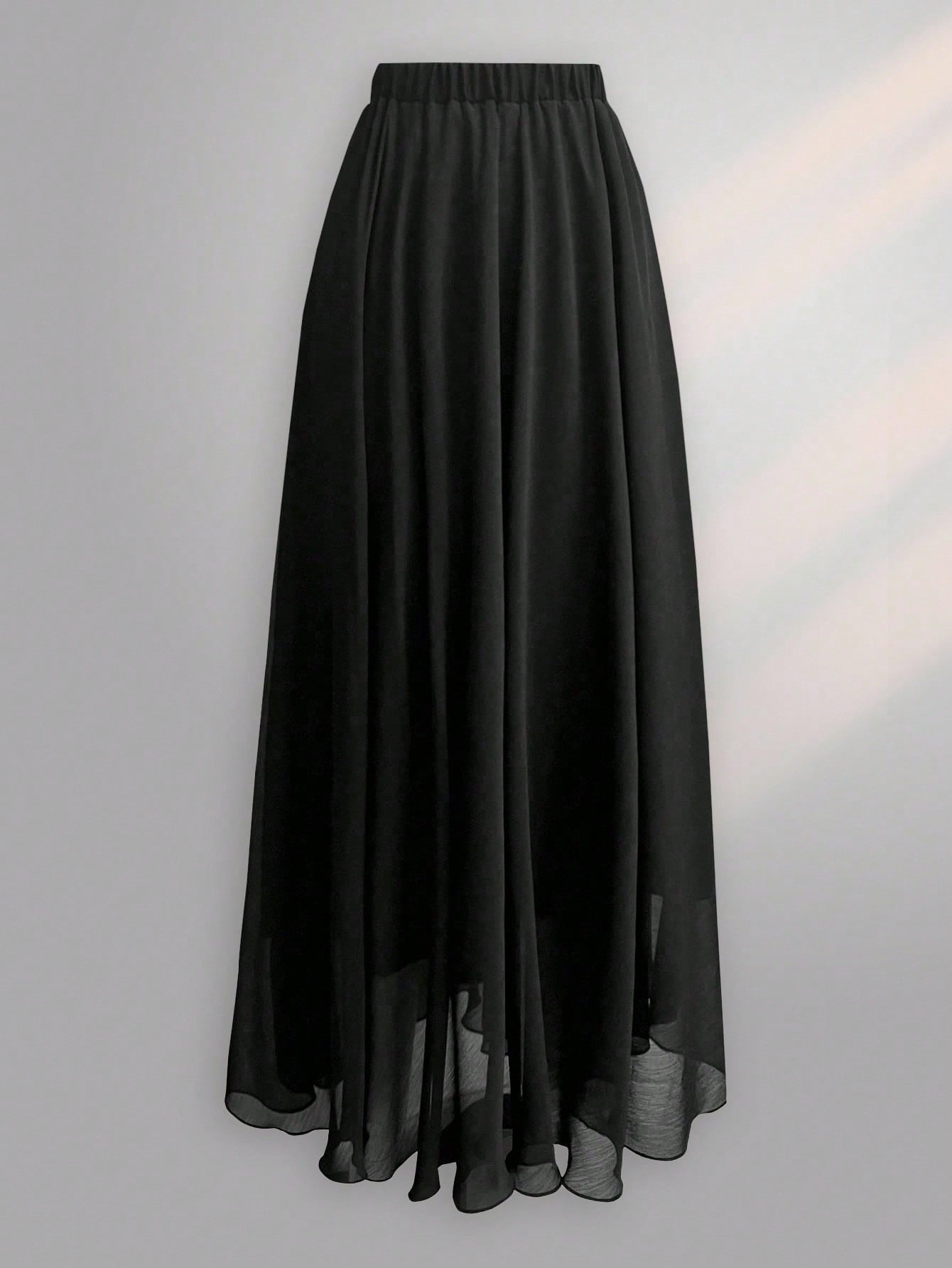 Franclia Plus Size Summer Fashion Solid Elastic Waist Chiffon Skirt