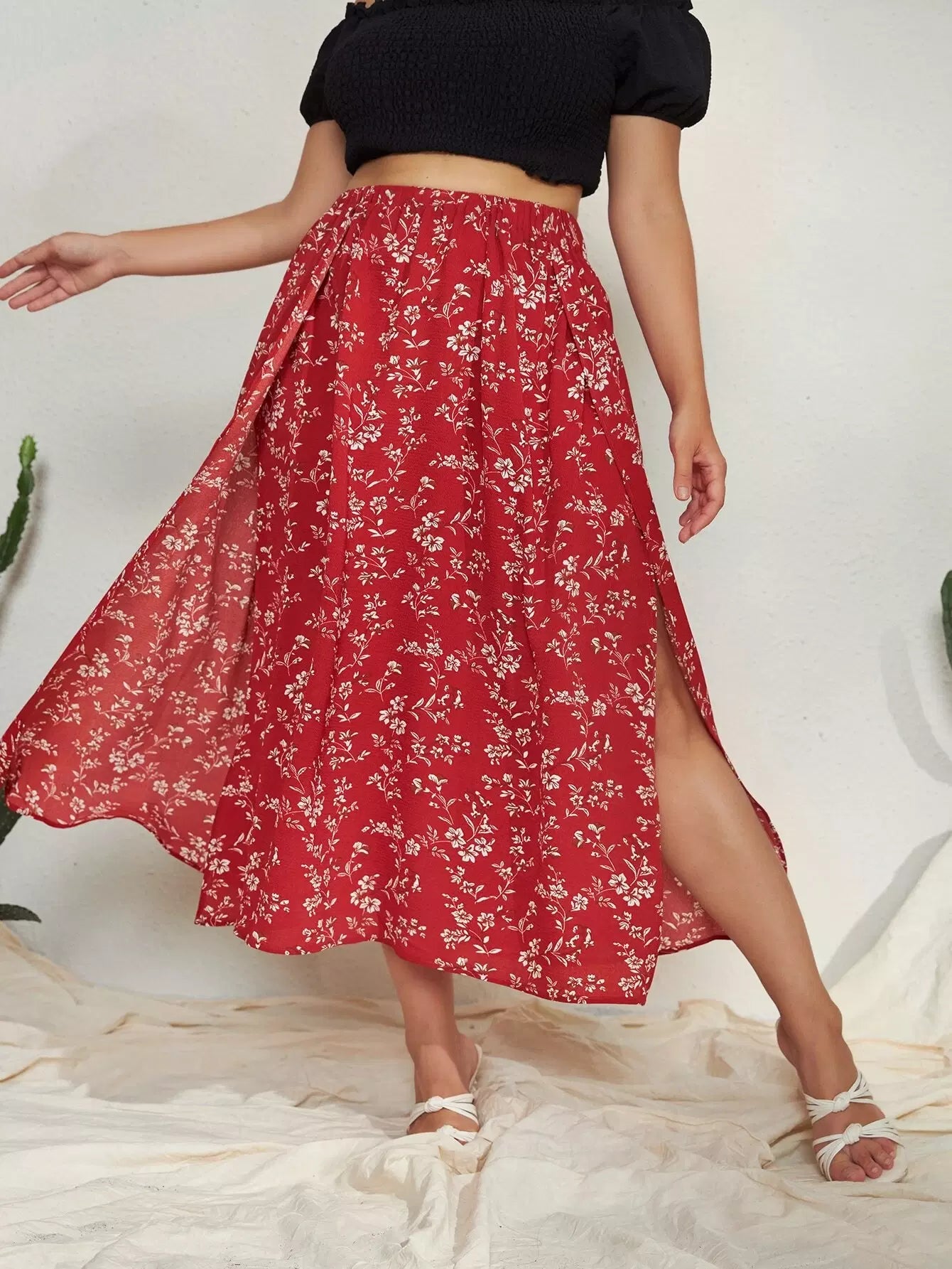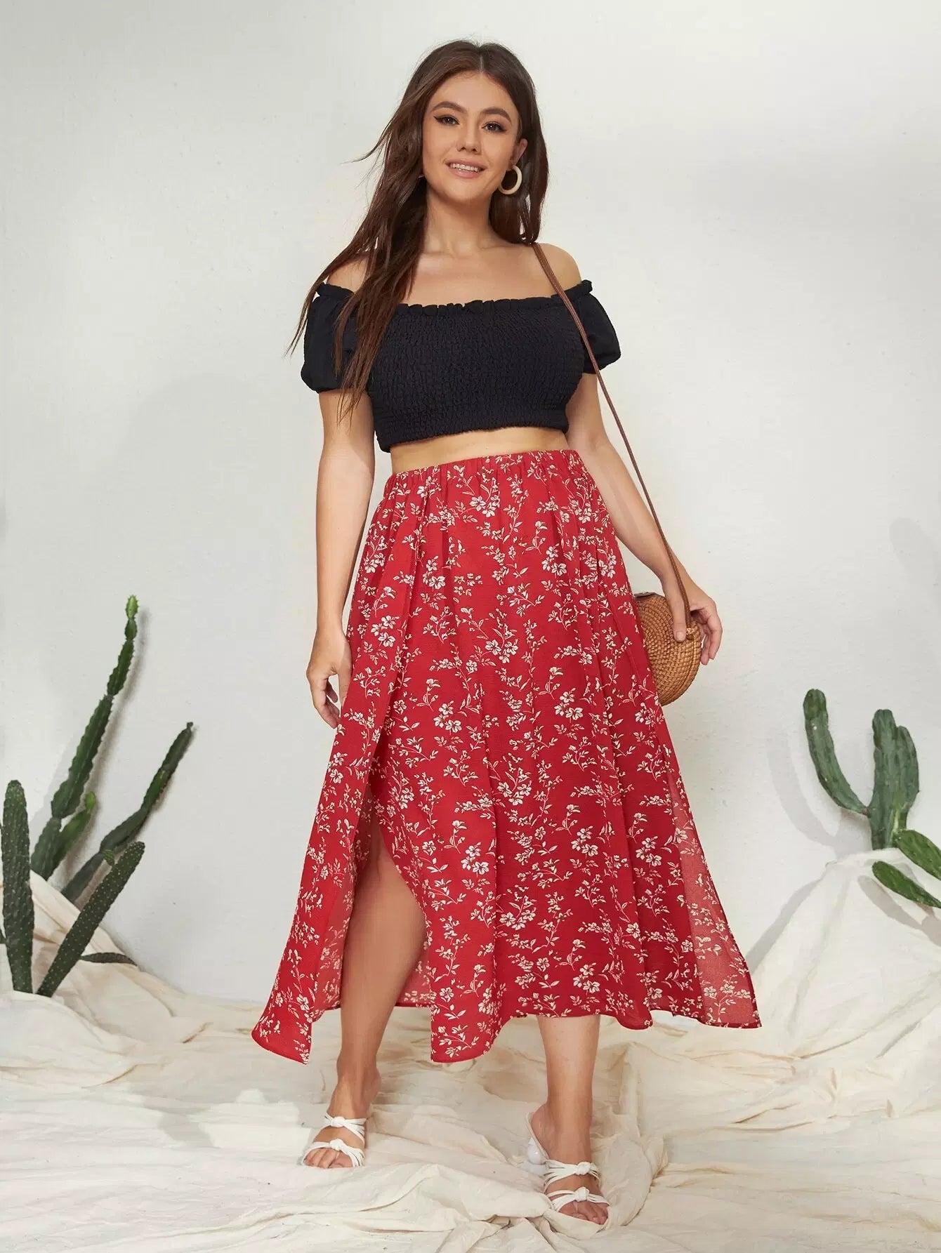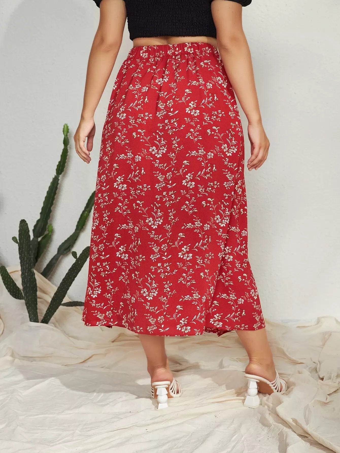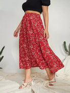 Plus Allover Floral Slit Skirt