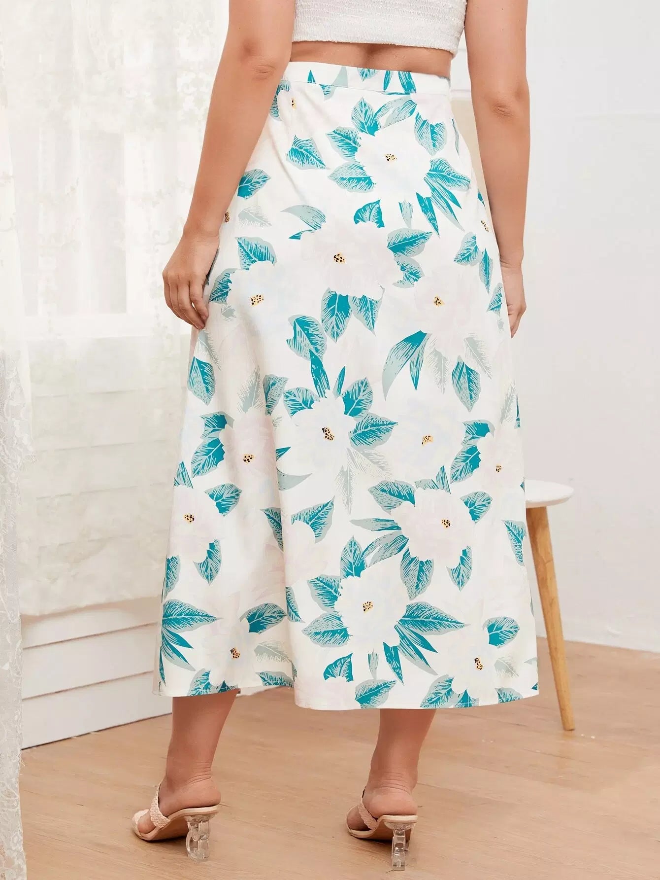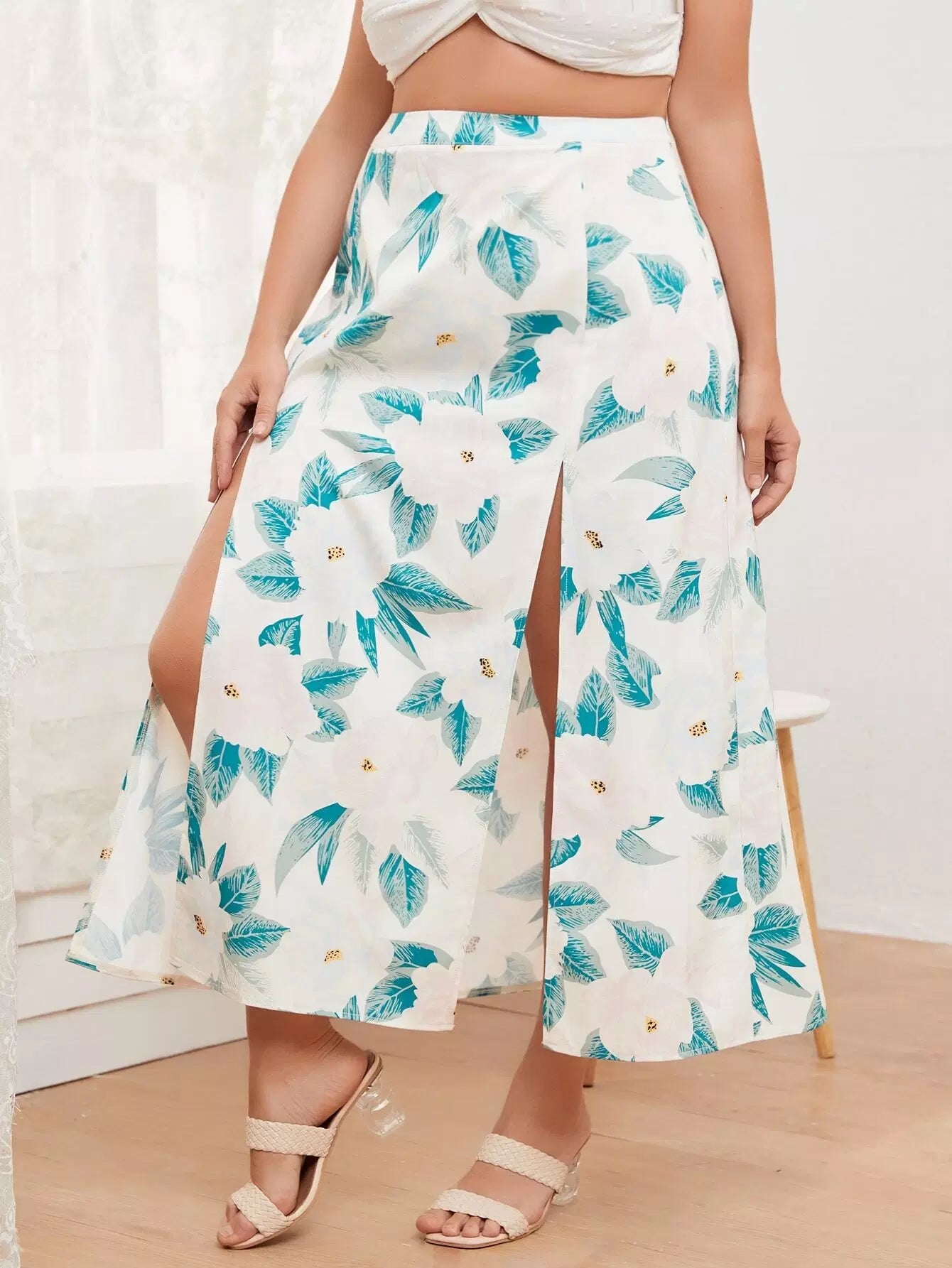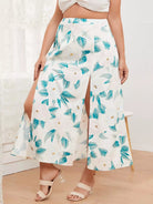 Plus Allover Floral Split Thigh Skirt