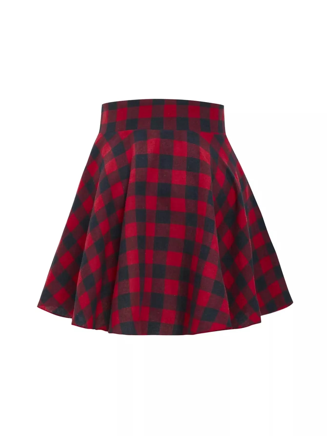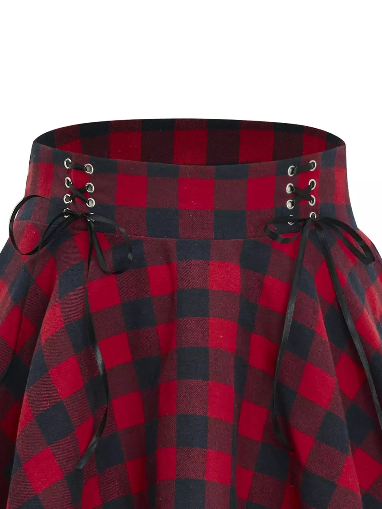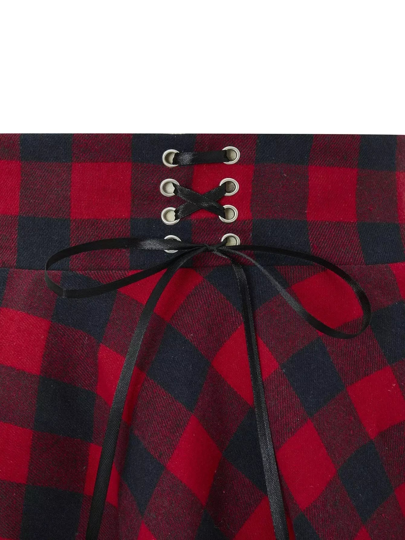 Plus Buffalo Plaid Print Lace Up Front Flare Skirt