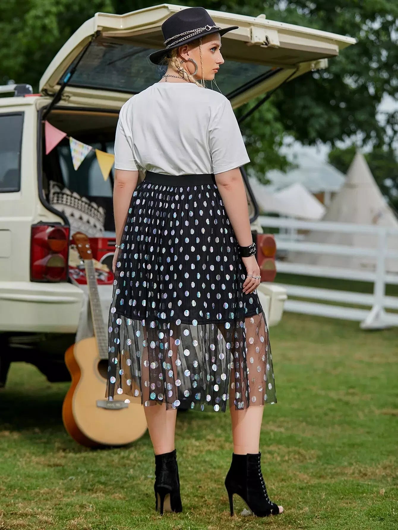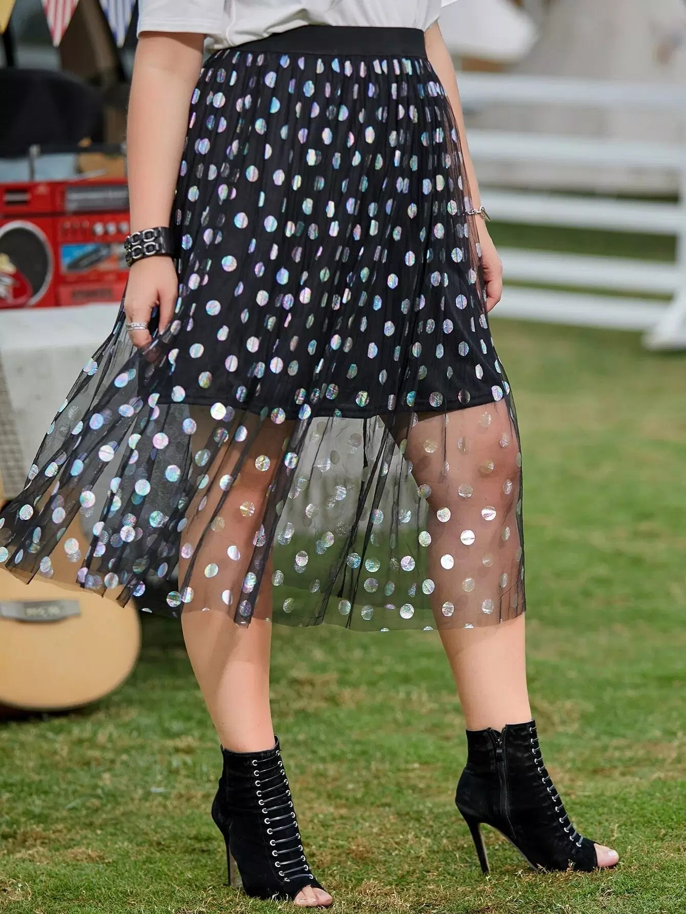 Plus Contrast Sequin Mesh Overlay Pleated Skirt