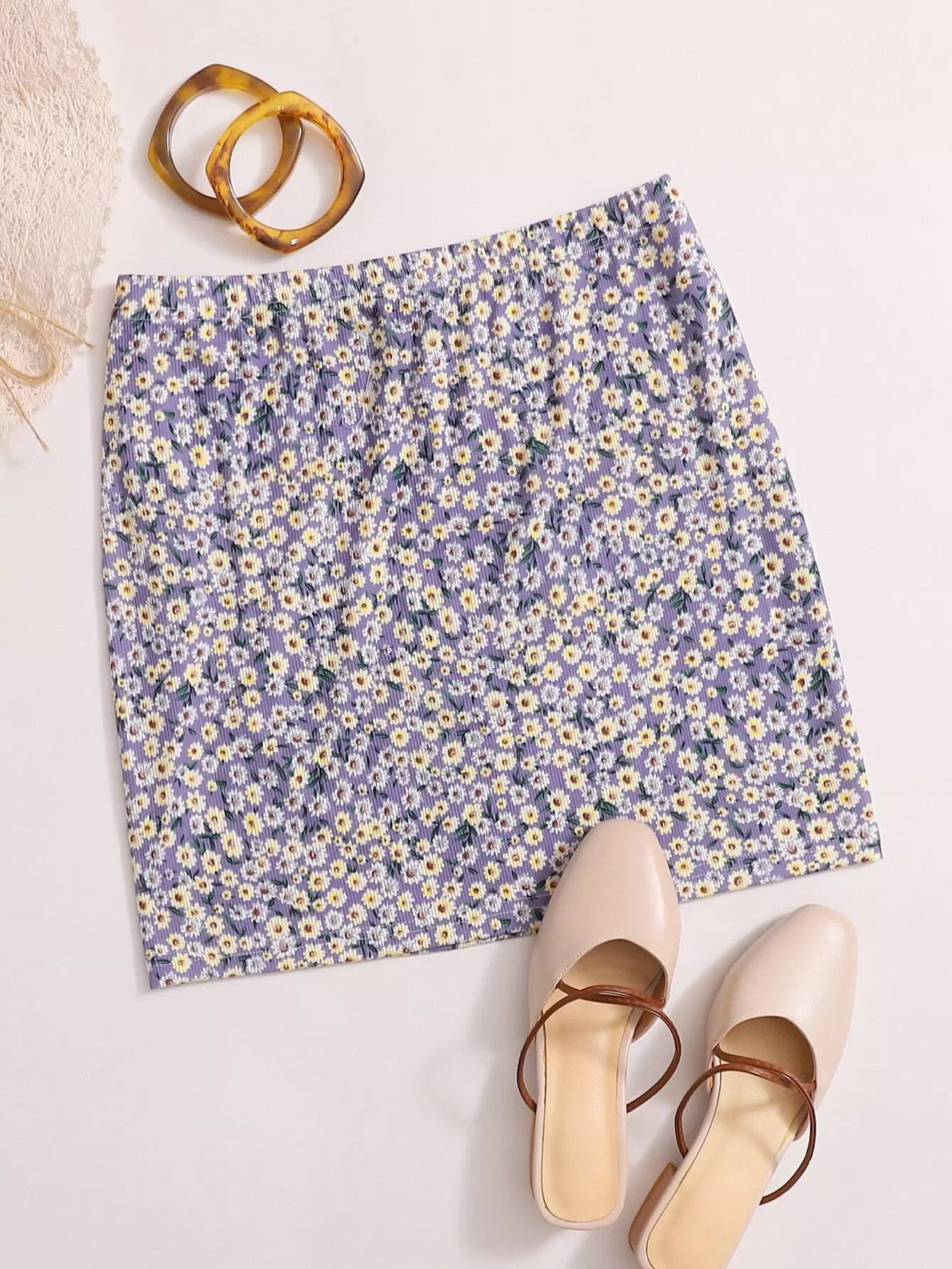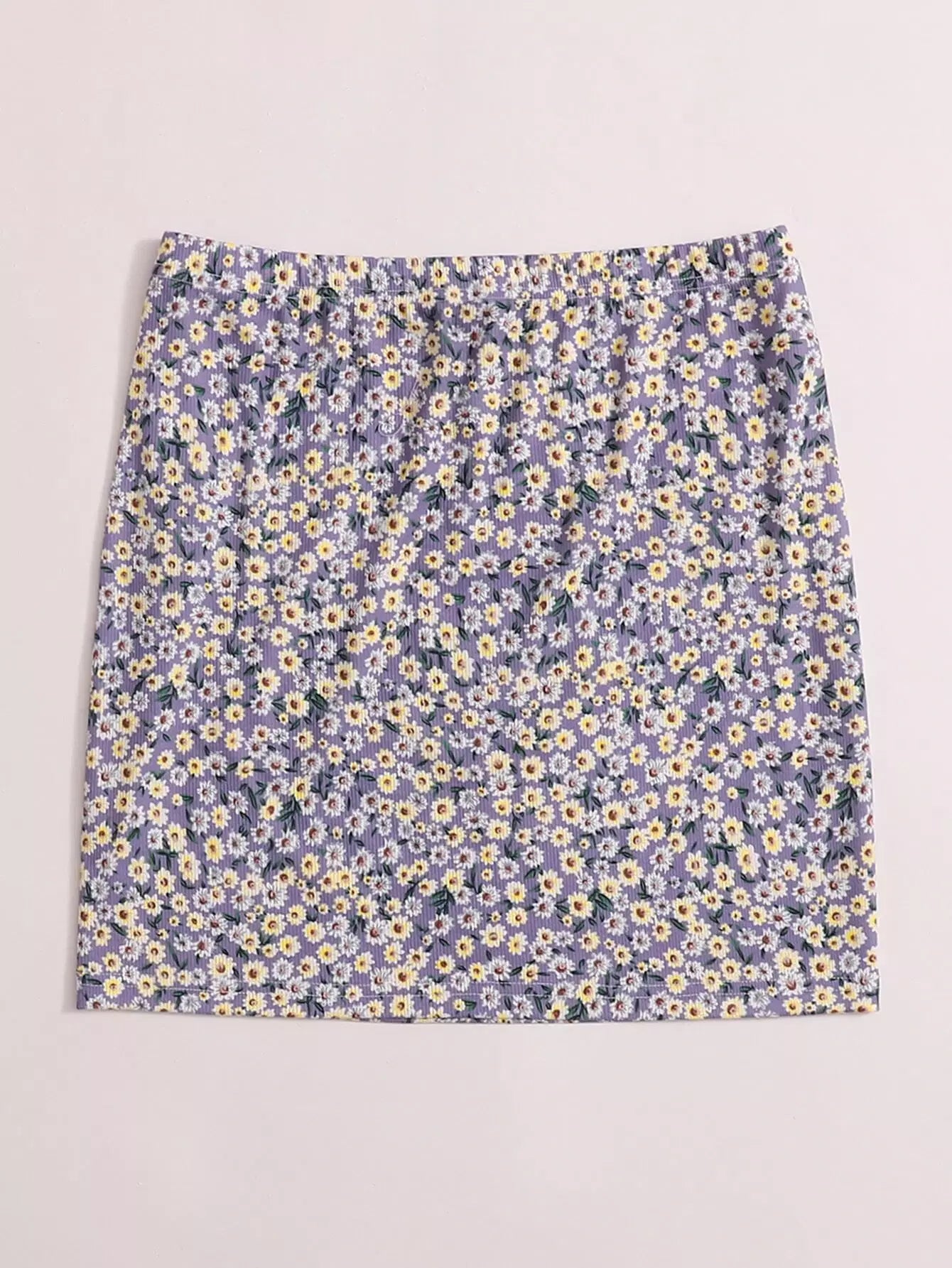 Women - Plus Daisy Floral Print Bodycon Skirt