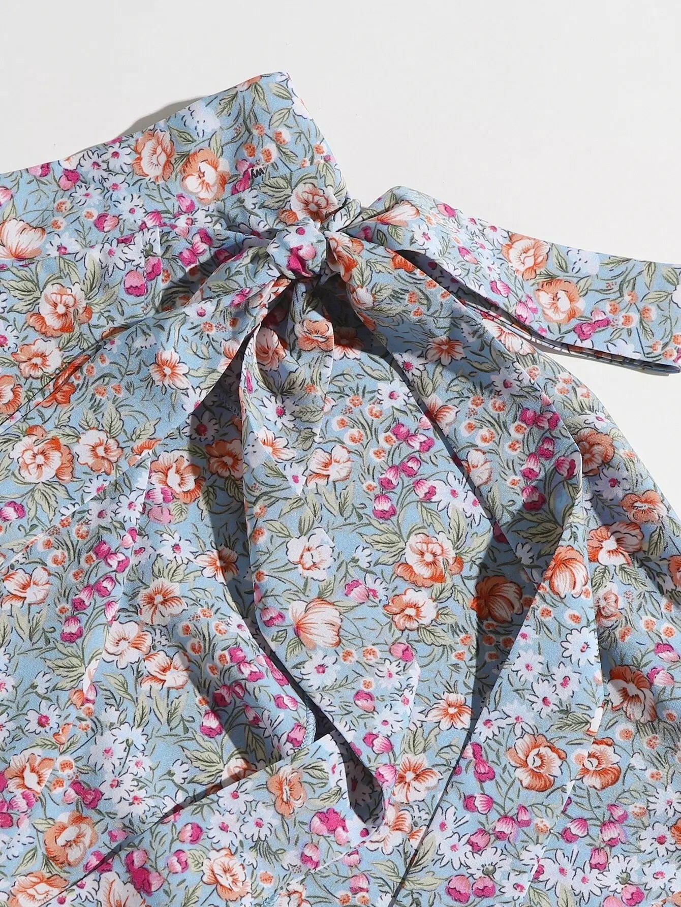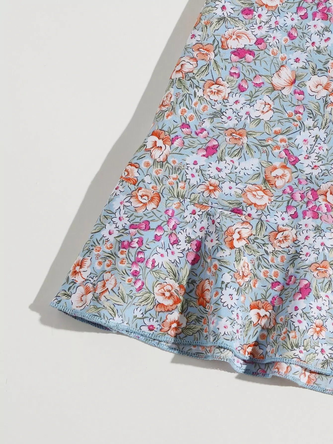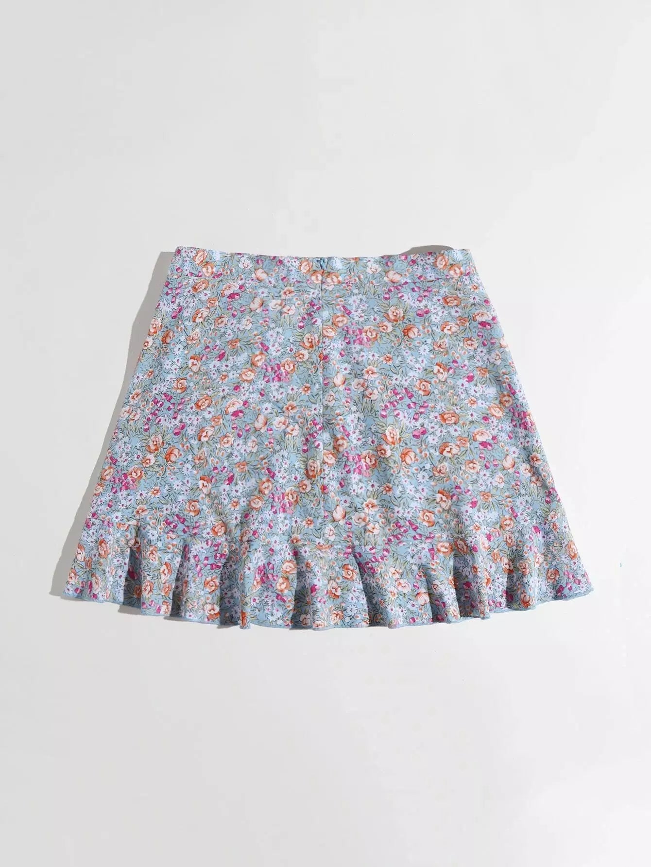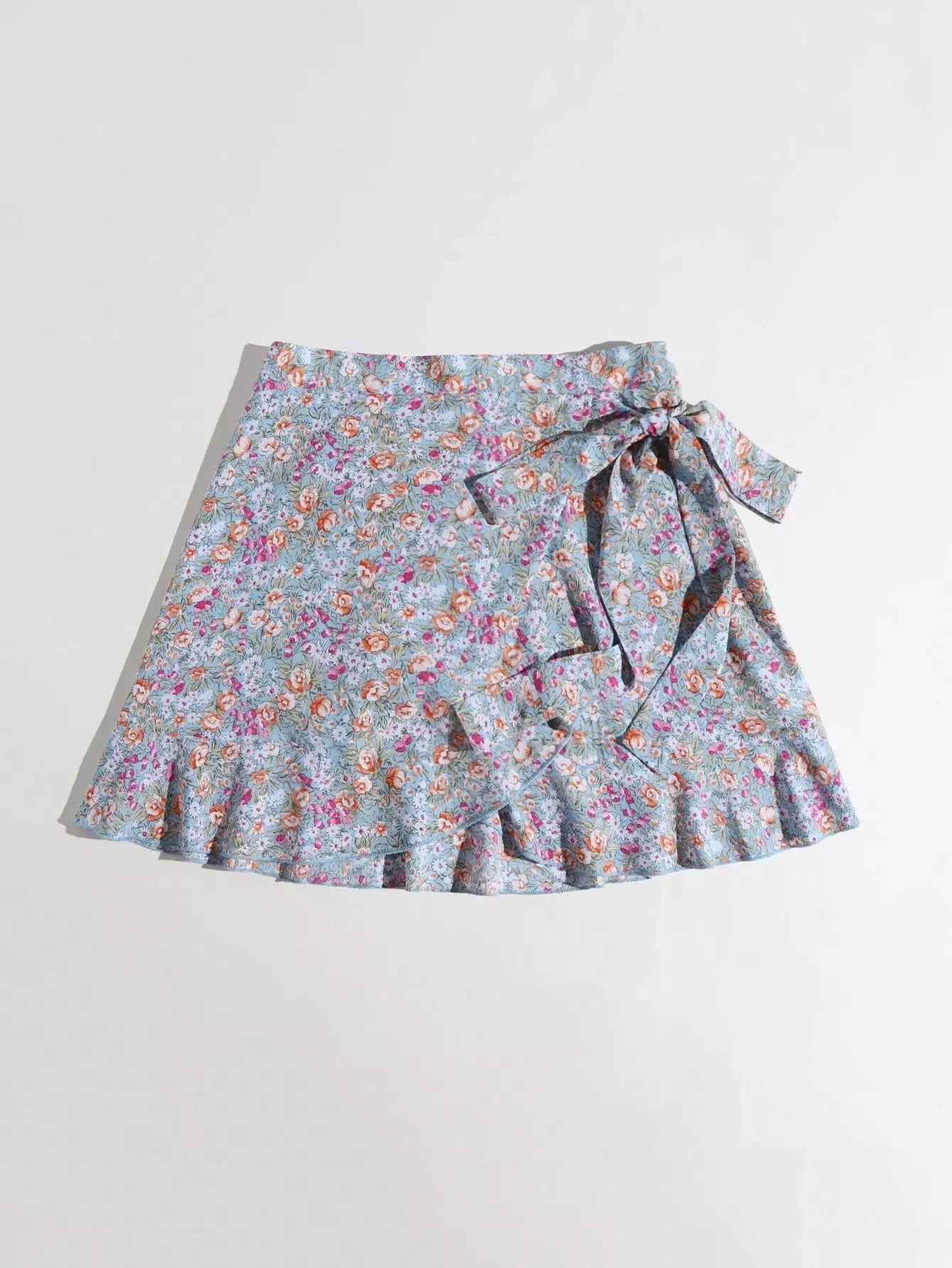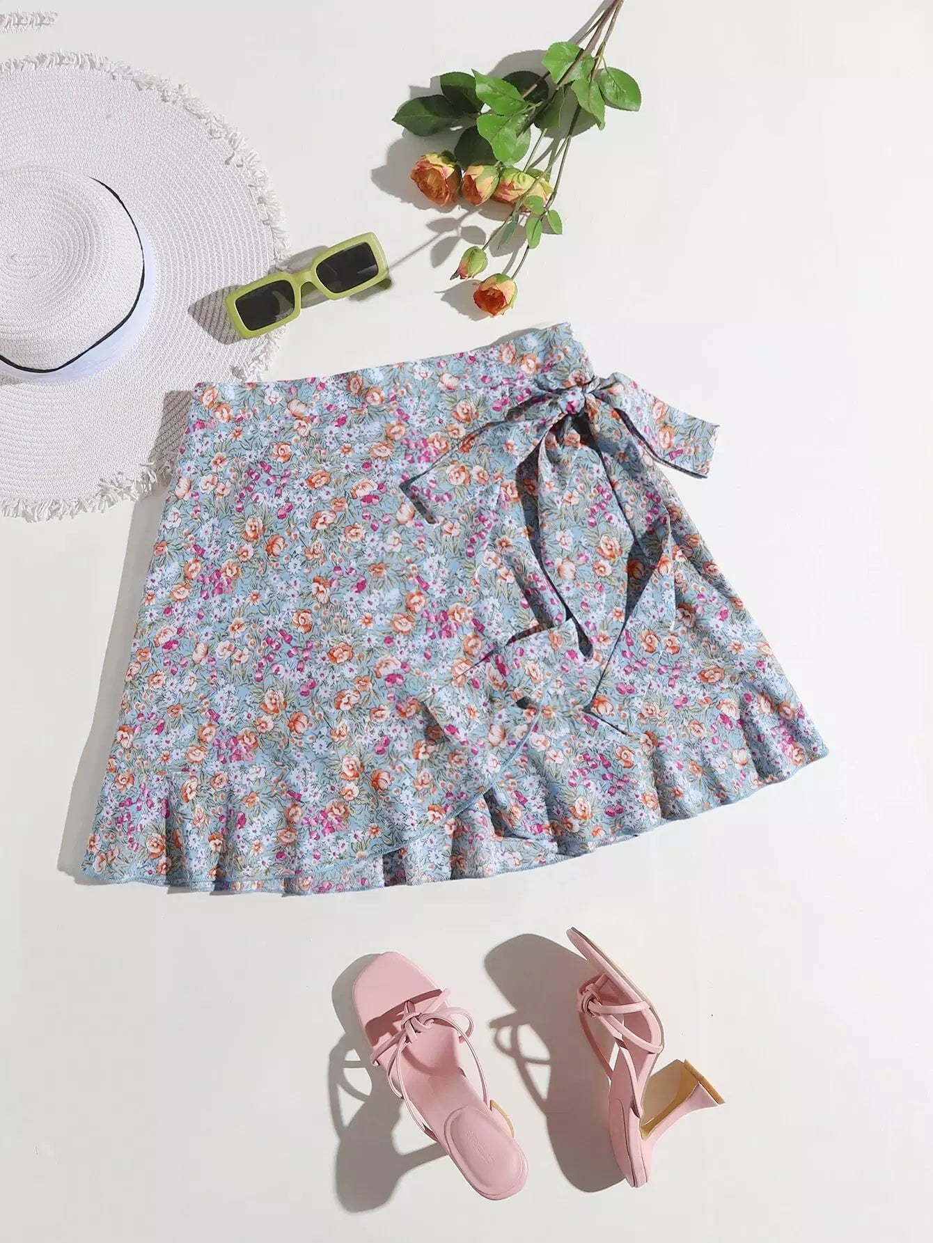 Plus Ditsy Floral Tie Side Ruffle Wrap Skirt