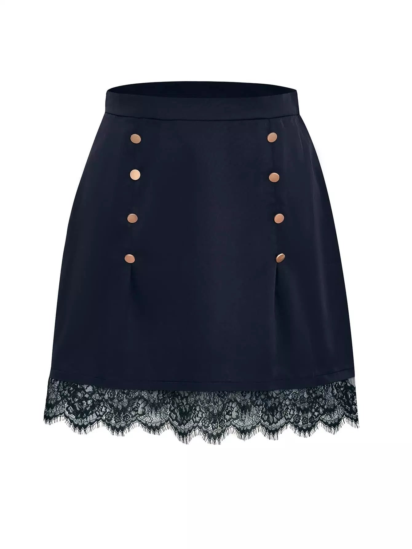 Women - Plus Eyelash Lace Hem Fake Button Skirt