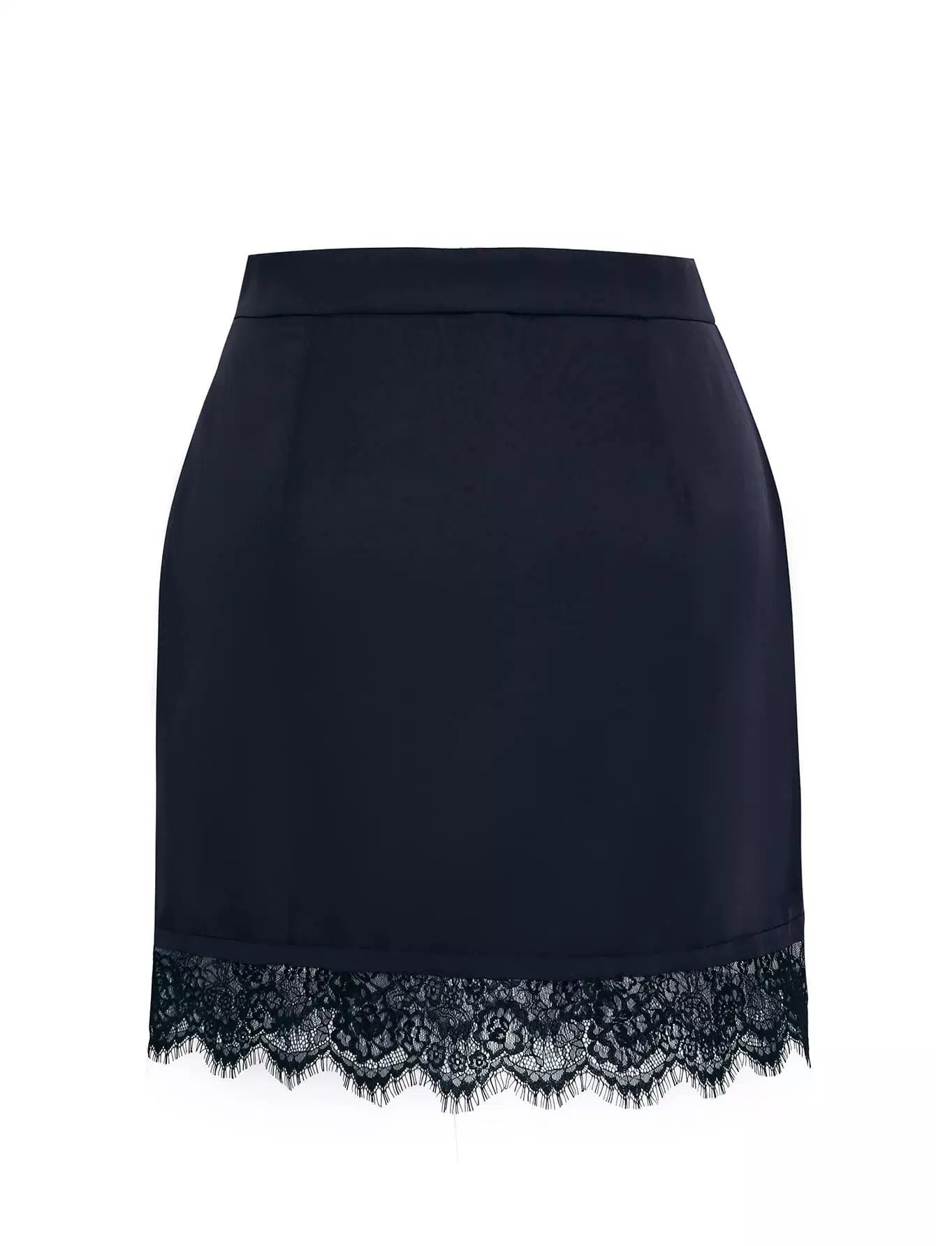 Plus Eyelash Lace Hem Fake Button Skirt