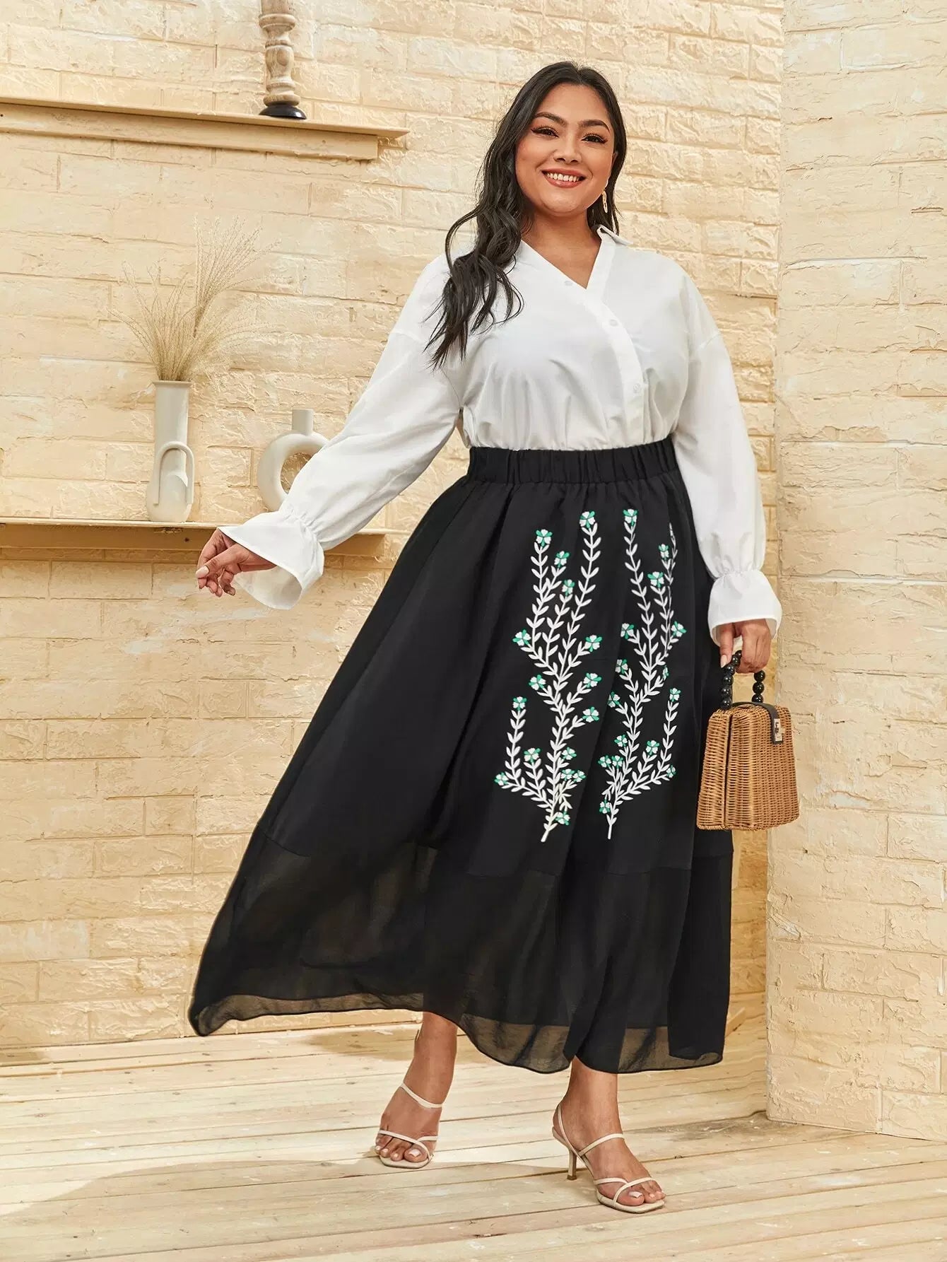 Plus Flounce Hem Floral Print Skirt