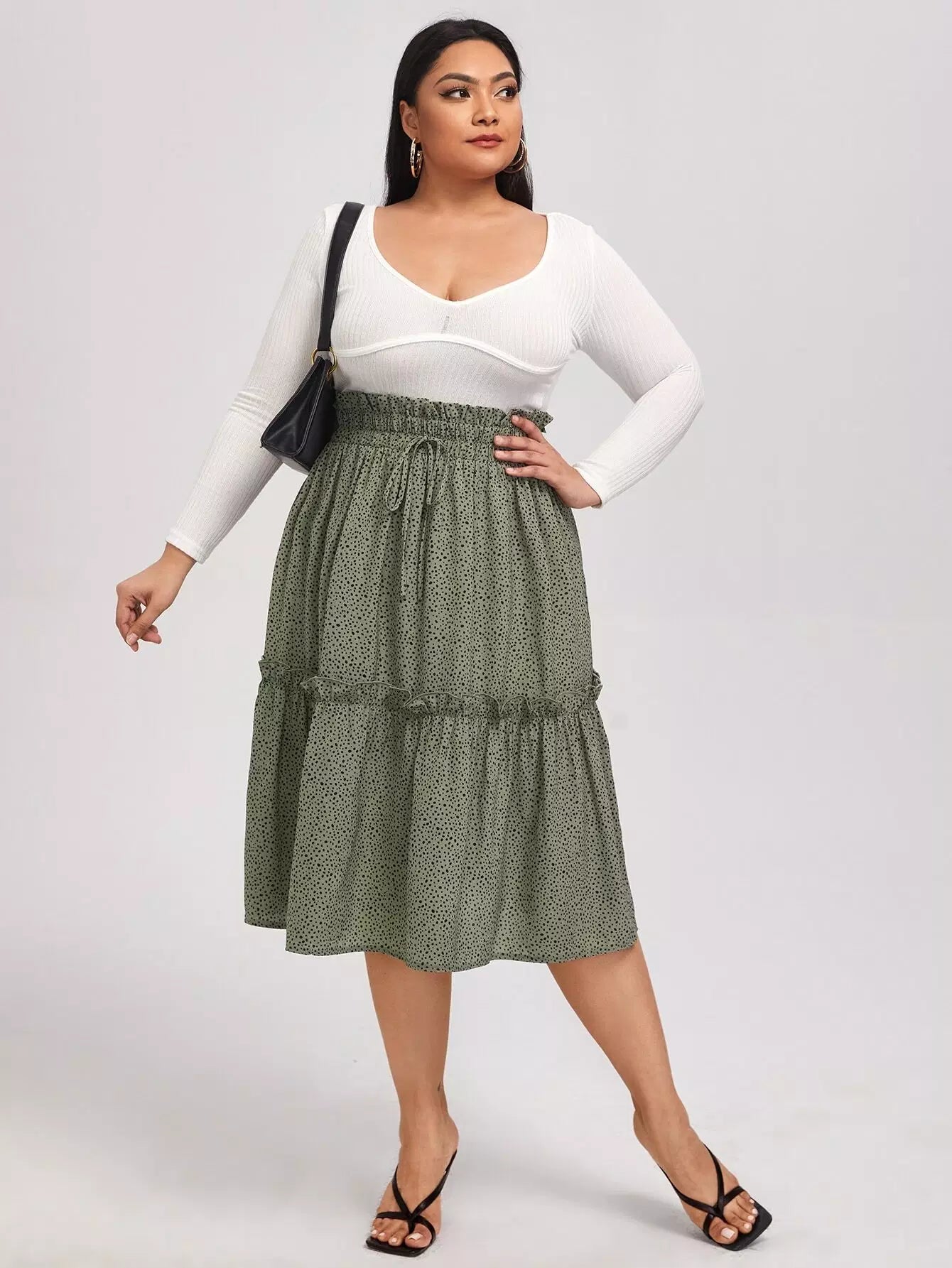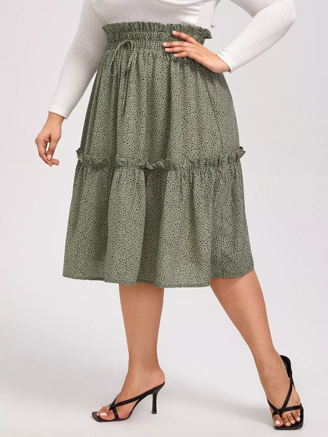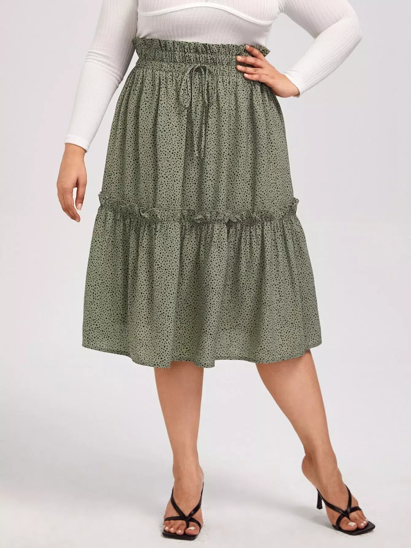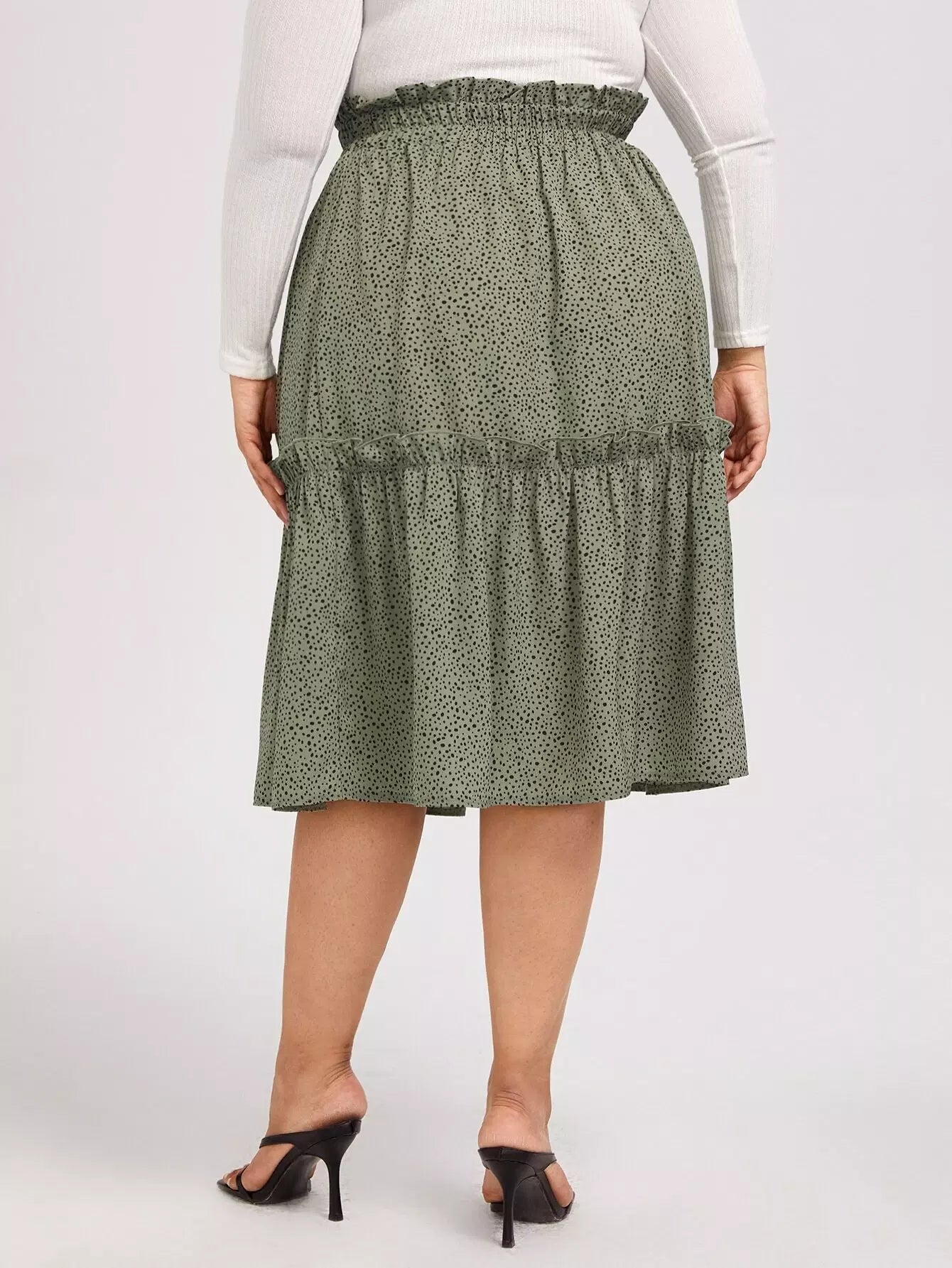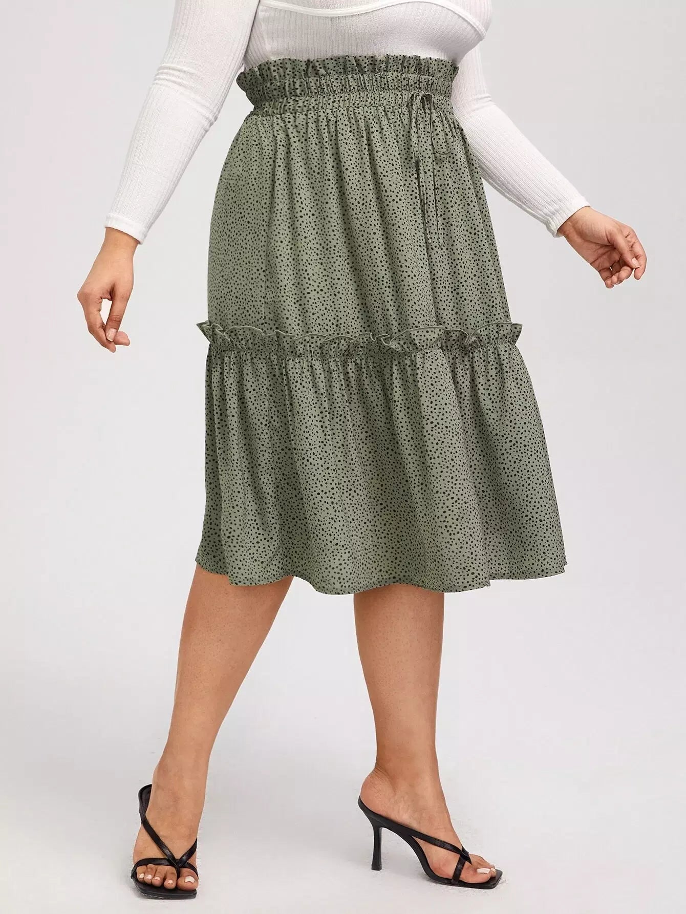 Plus Paper Bag Waist Ruffle Hem Skirt