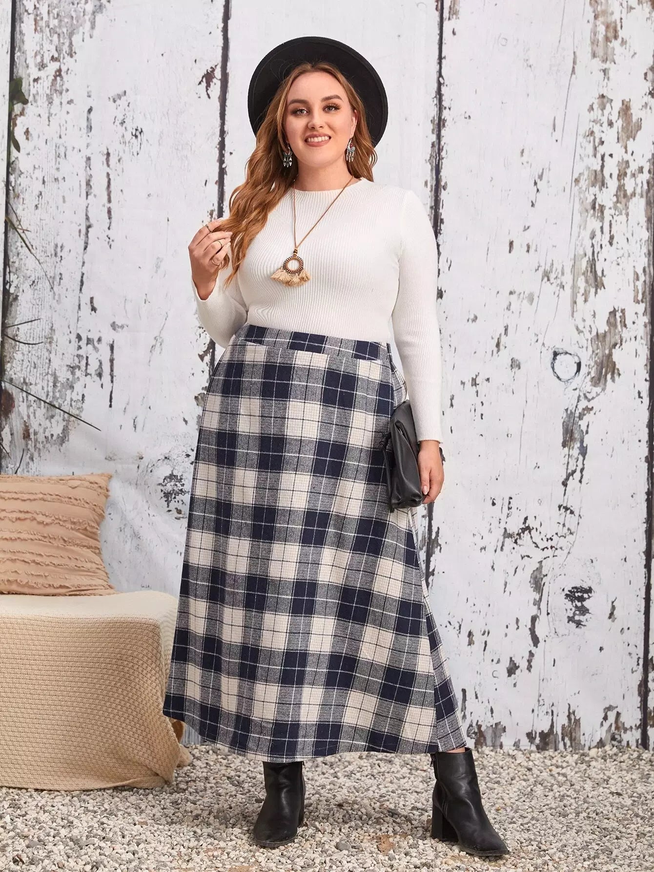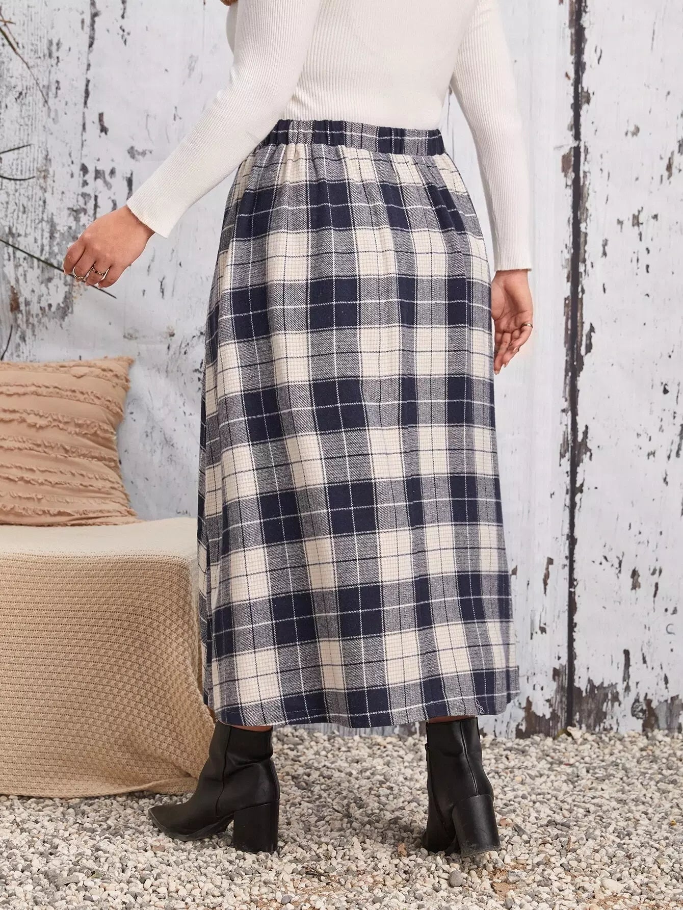 Plus Plaid A-line Skirt