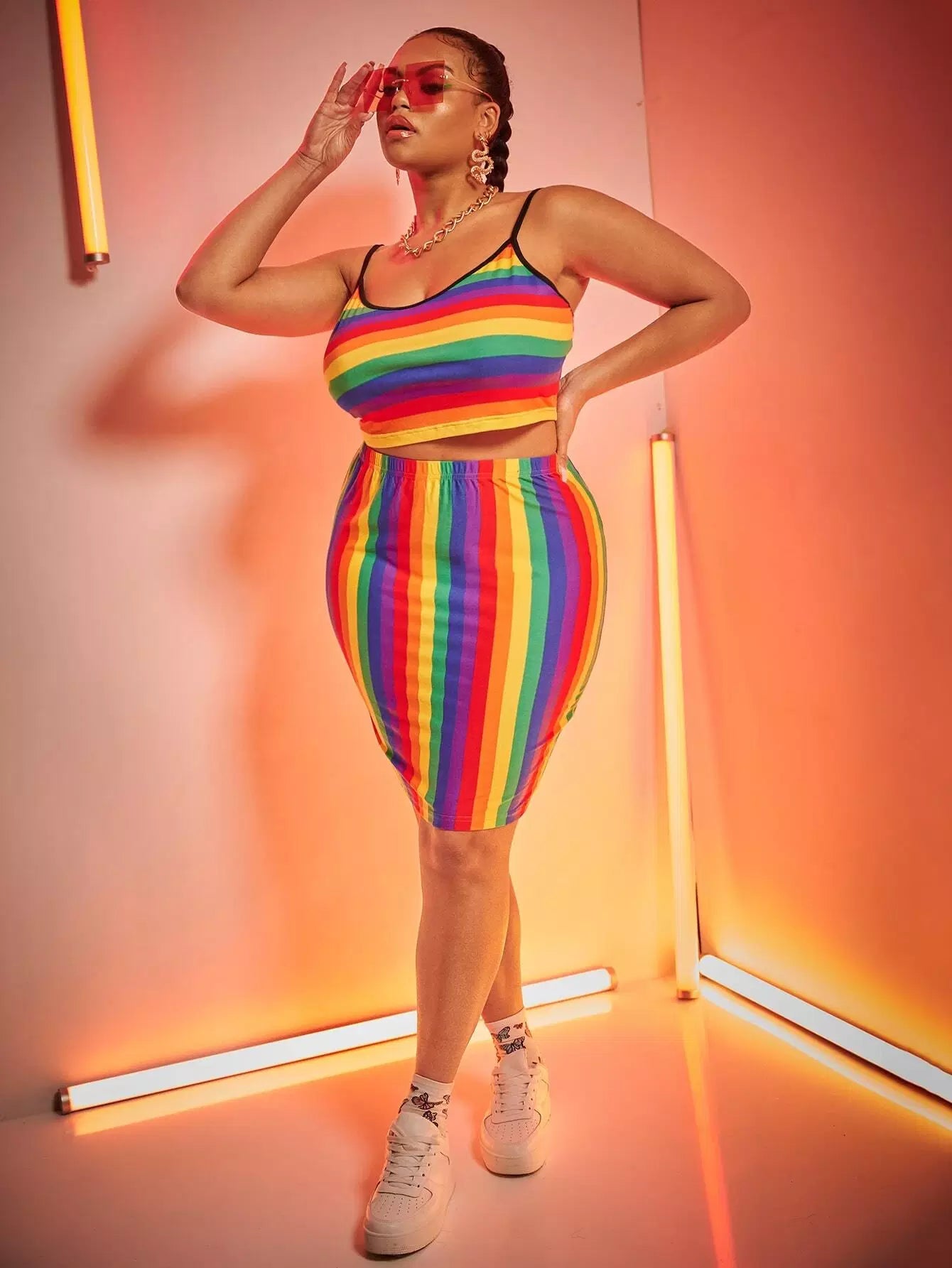 Women - Plus Rainbow Striped Print Bodycon Skirt