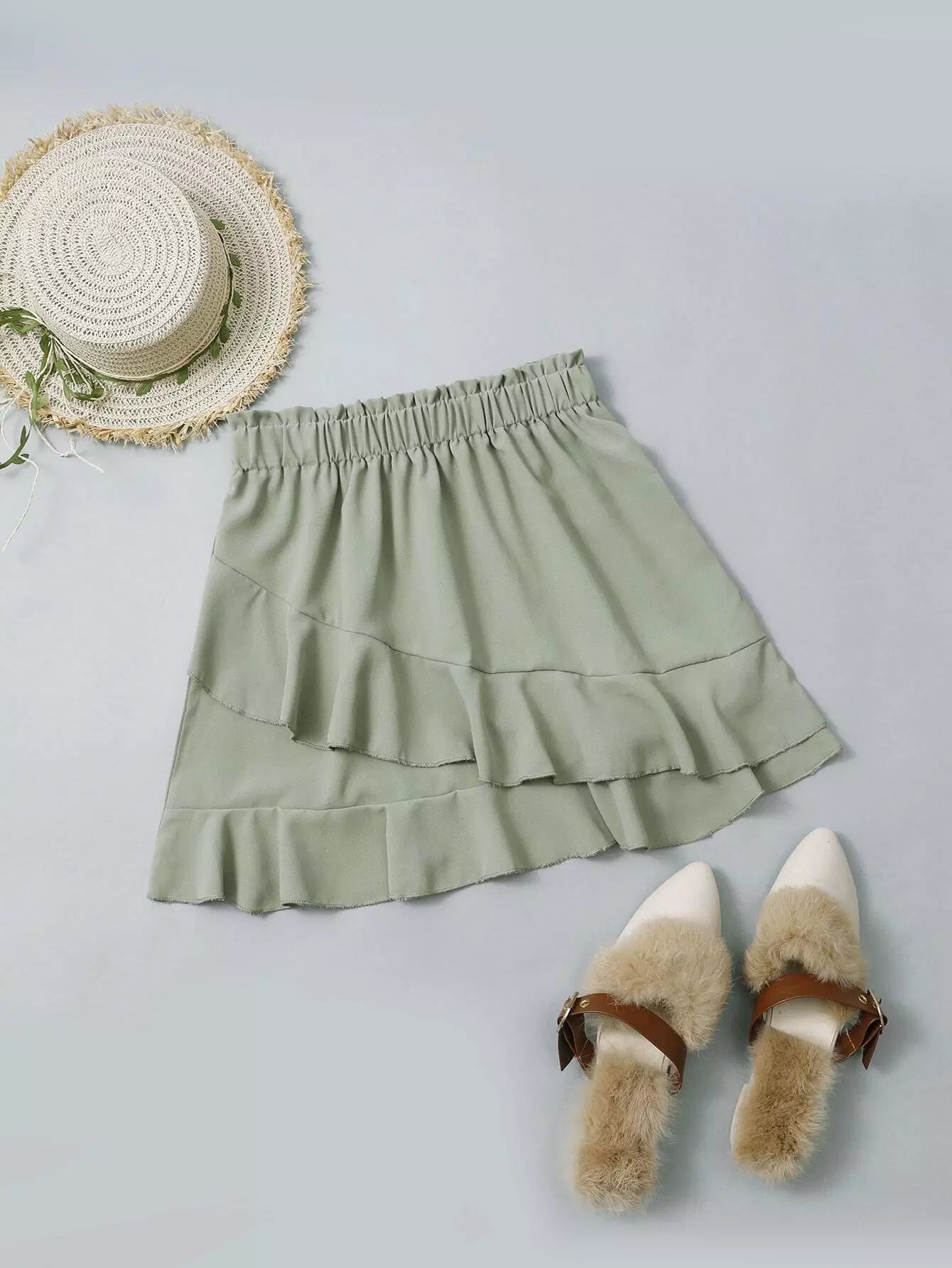 Plus Solid Ruffle Hem Paperbag Waist Skirt