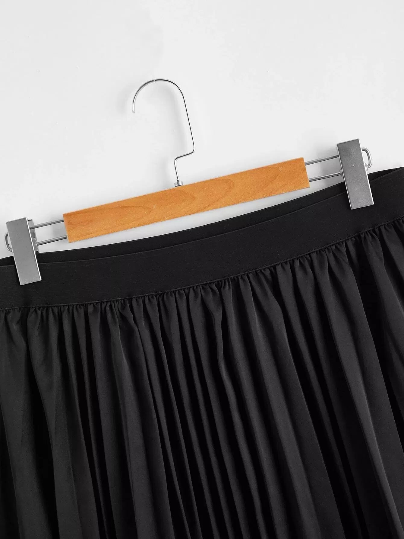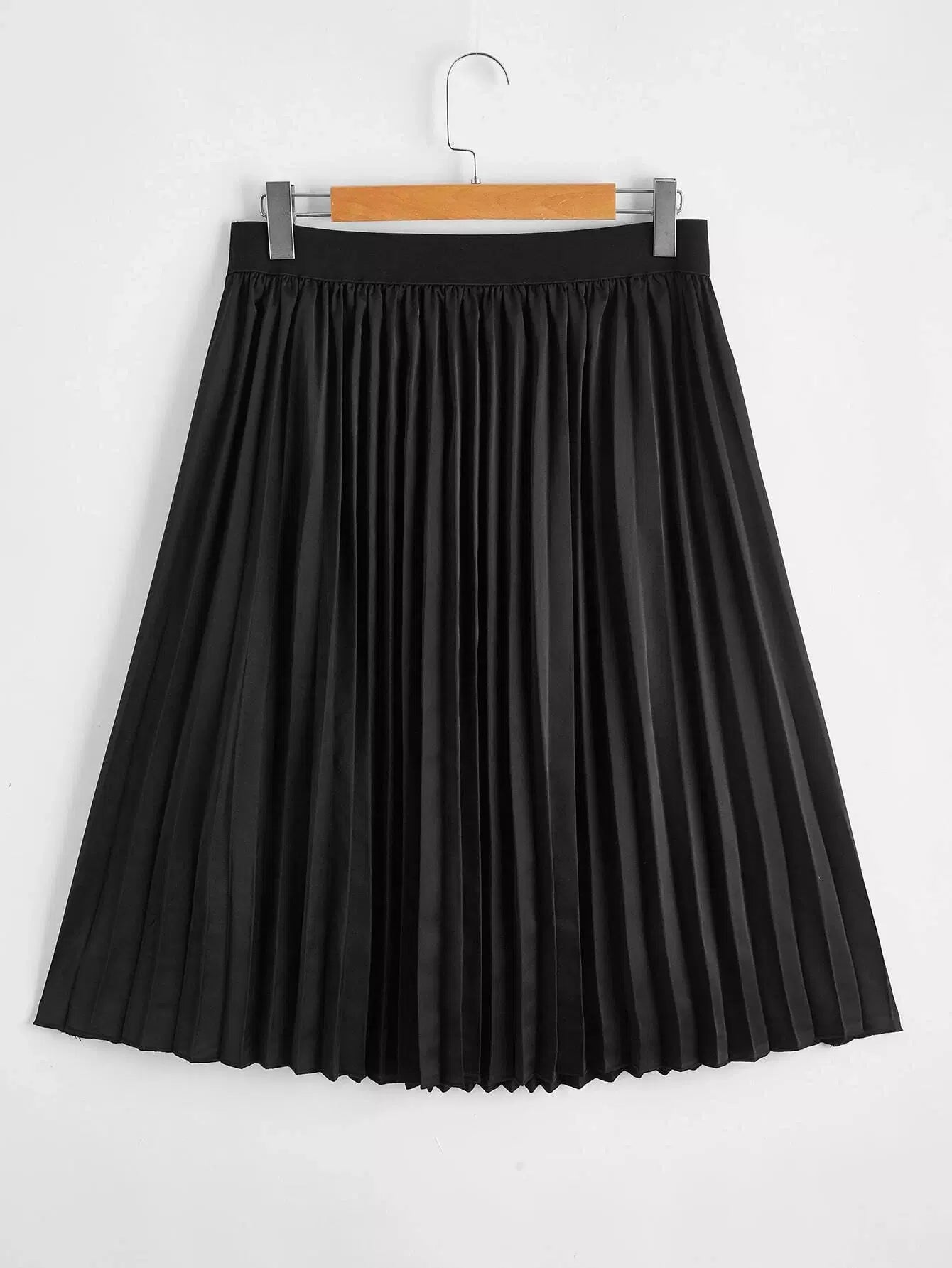 Plus Solid Satin Pleated Skirt