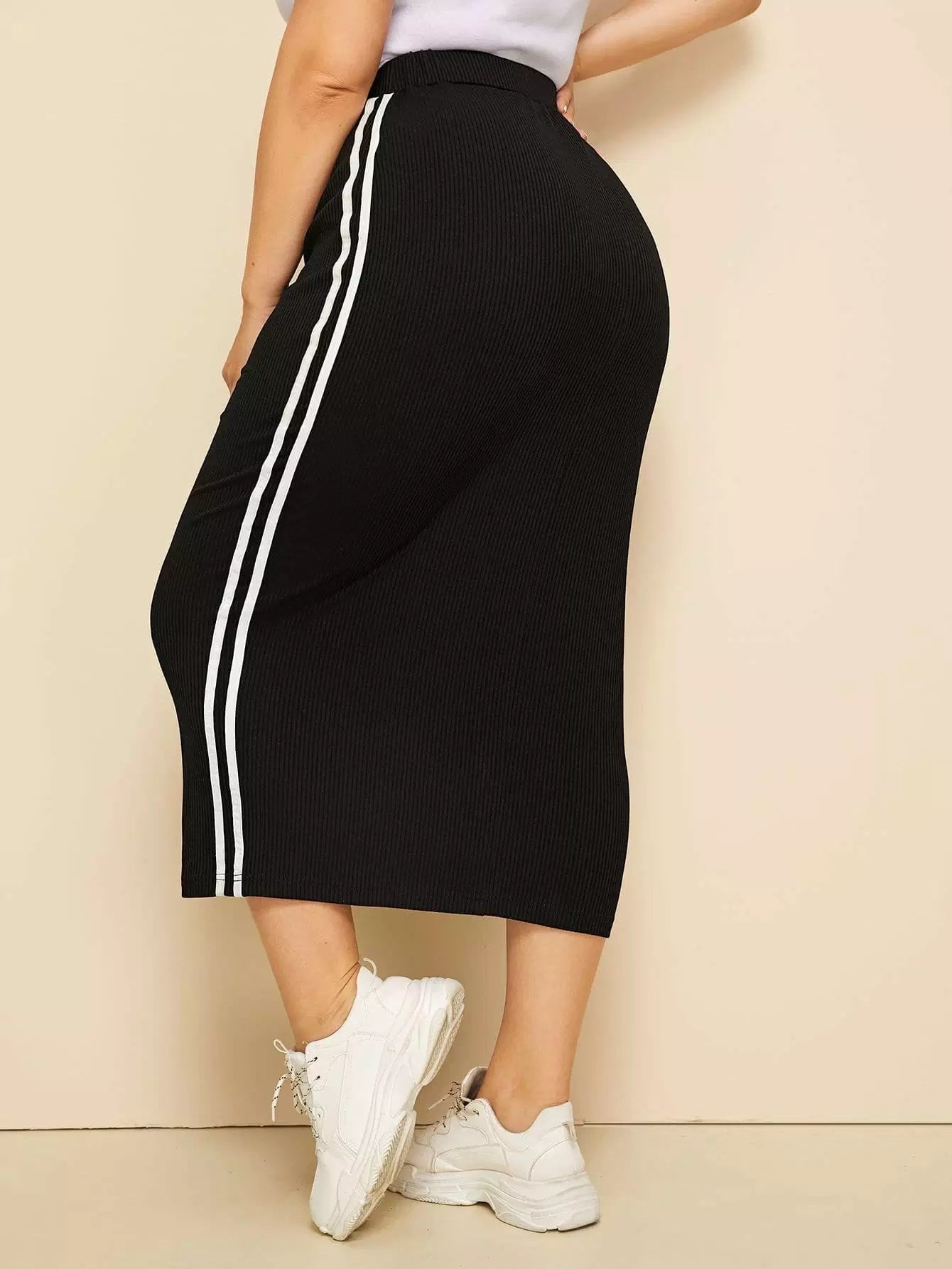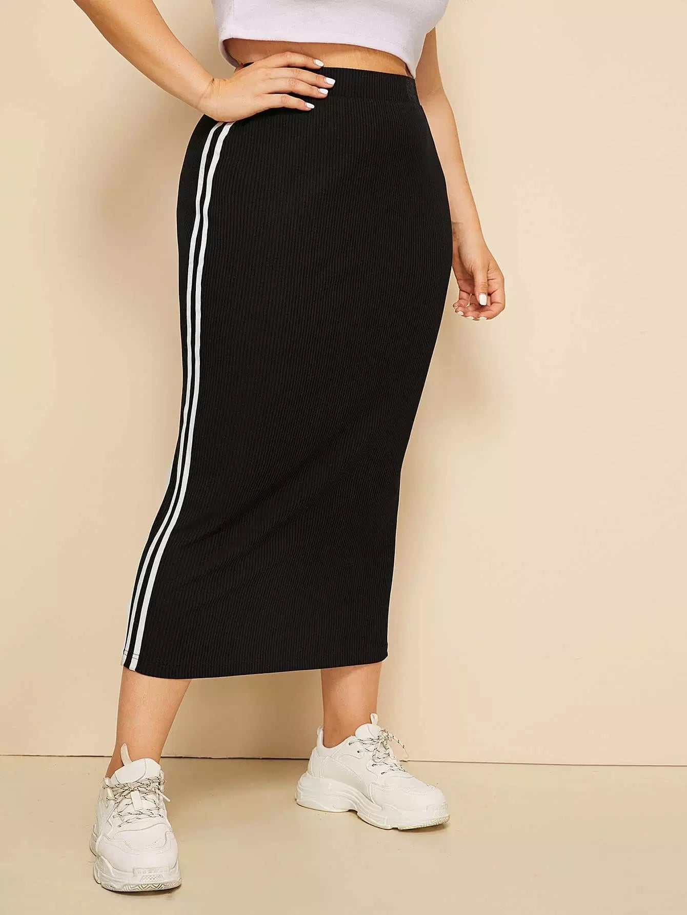 Plus Striped Tape Side Ribbed Pencil Skirt