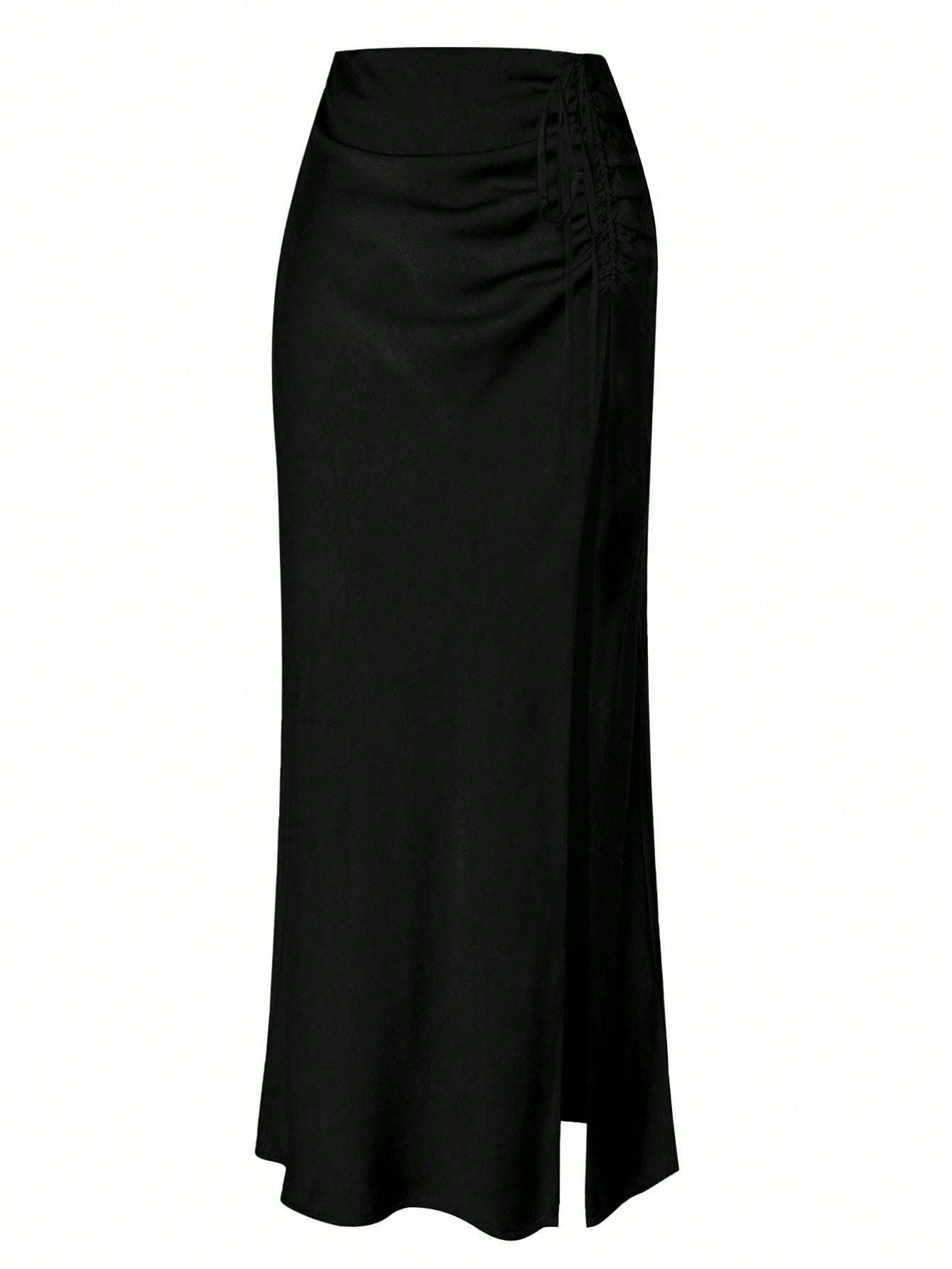 women SHEIN Clasi Plus Size Drawstring Waist Elegant Linen A-Line Skirt