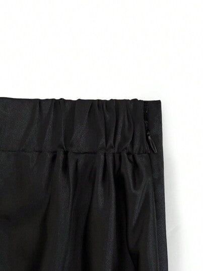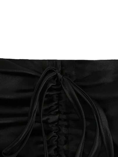 SHEIN Clasi Plus Size Drawstring Waist Elegant Linen A-Line Skirt