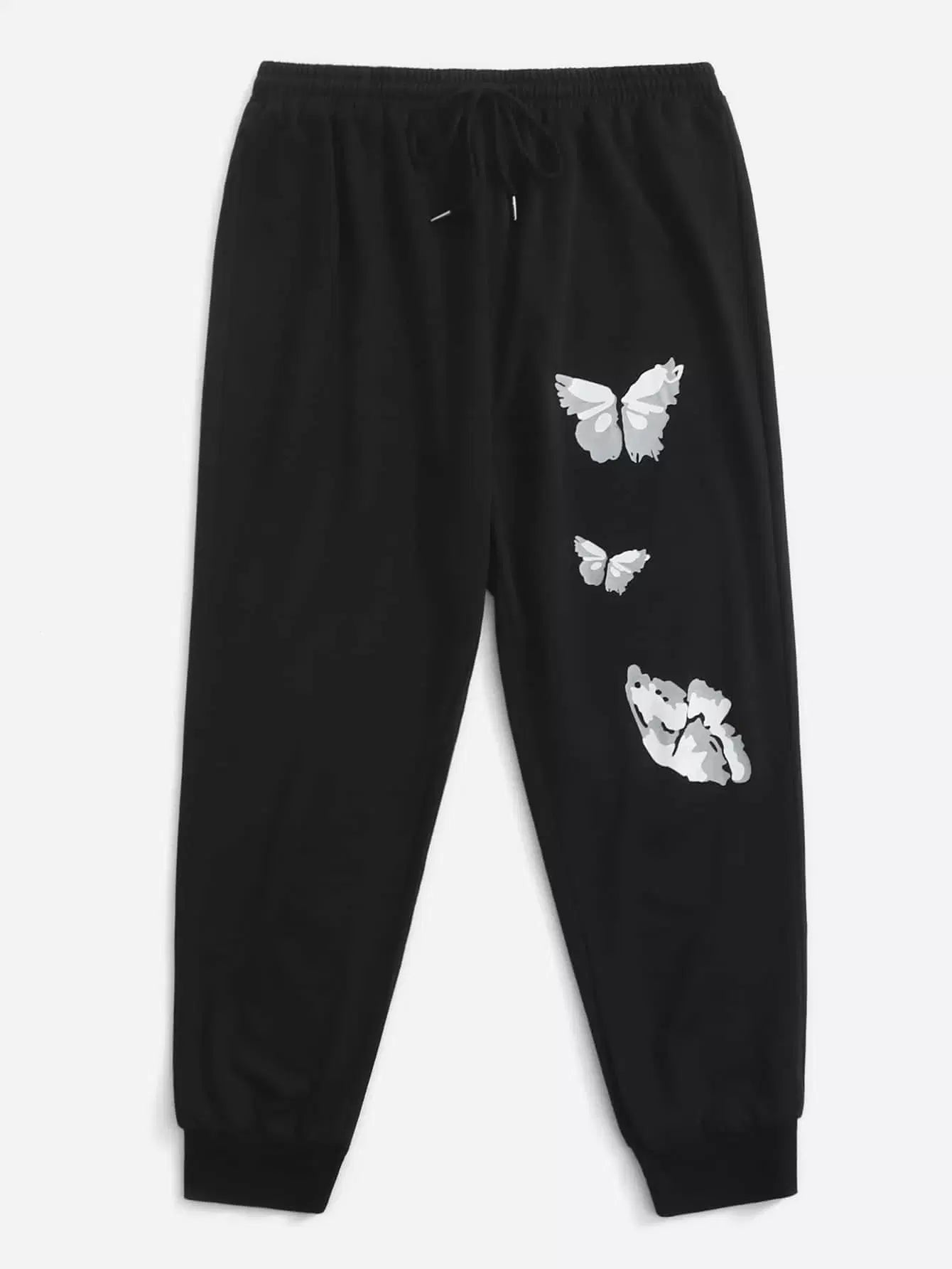 Plus Butterfly Print Drawstring Waist Sweatpants